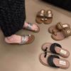 Sandalias coreanas de diseño nicho sin cordones para verano para mujer, estilo nuevo para uso exterior con falda, flats para la playa, sandalias romanas