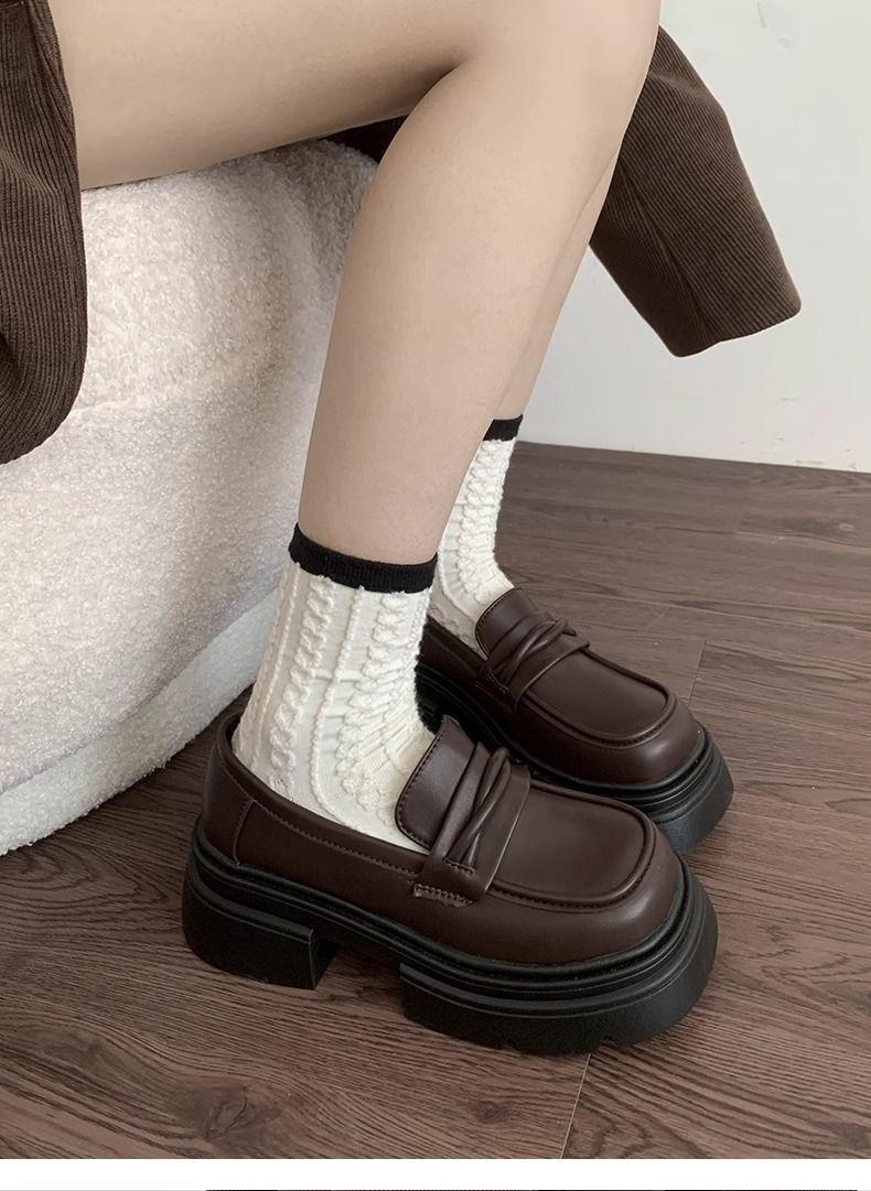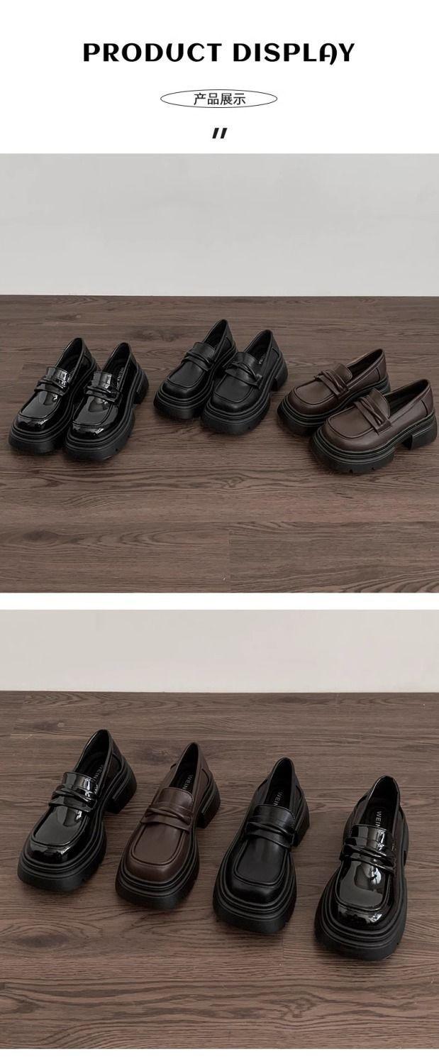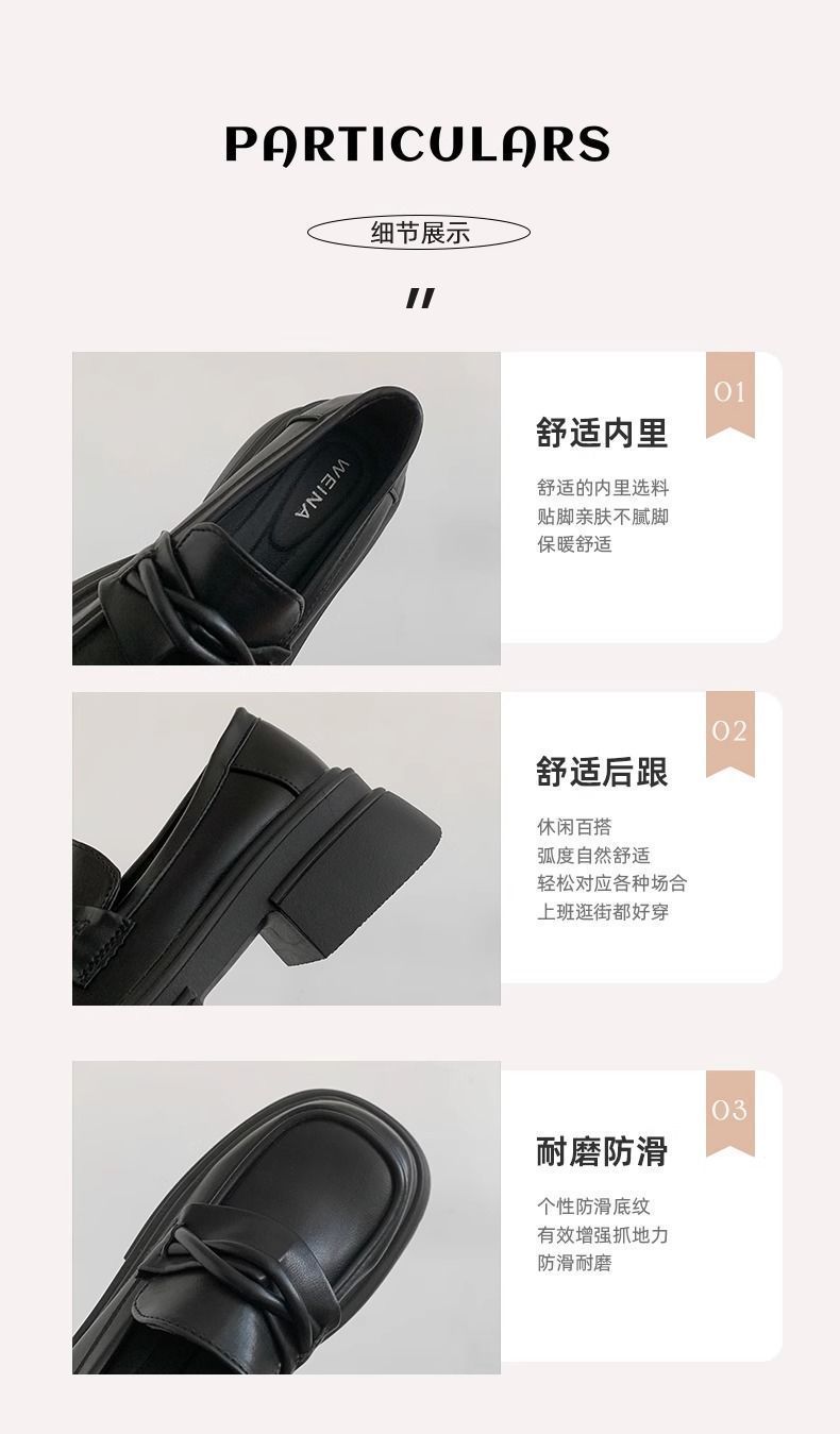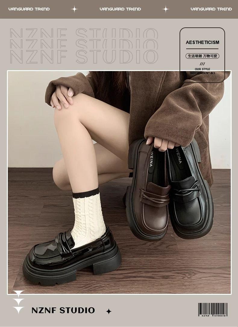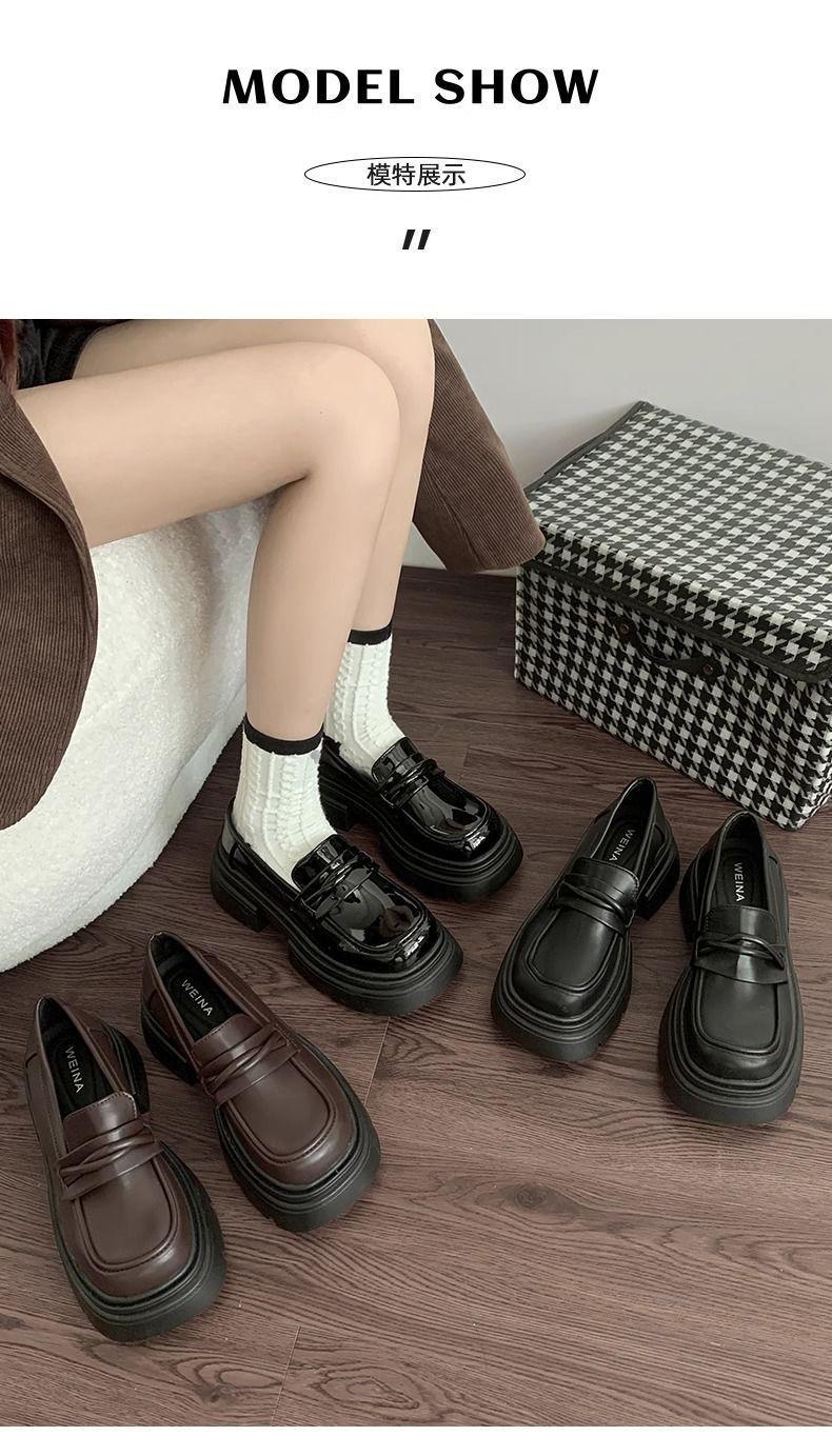 Zapatos nuevos individuales de suela gruesa estilo universitario zapatos de cuero pequeños zapatos de mujer tacón grueso 2023 mocasines de otoño e invierno zapatos de mujer sin cordones negros