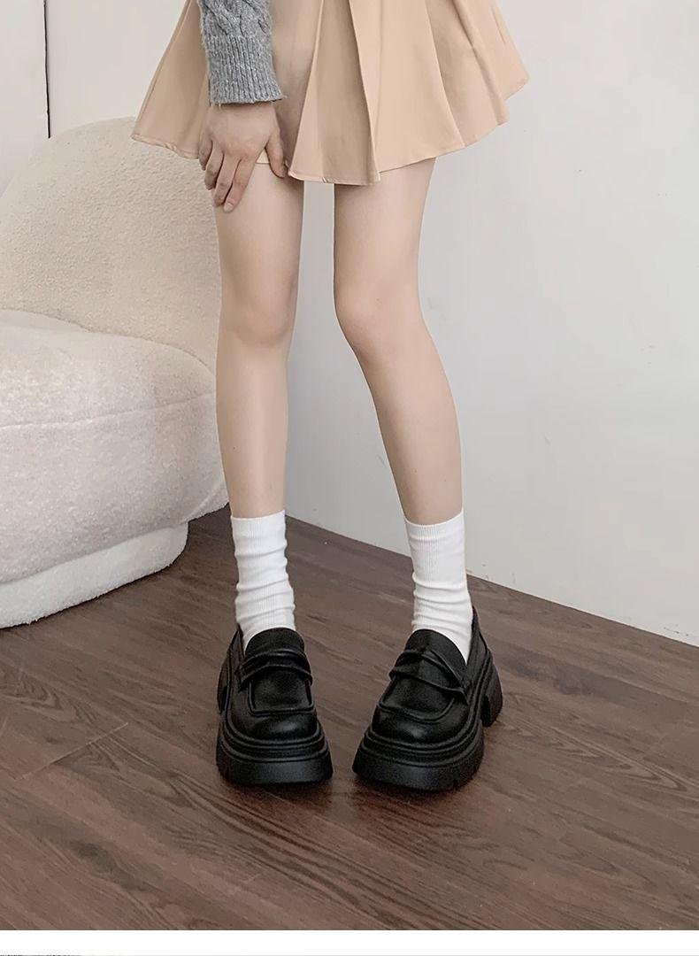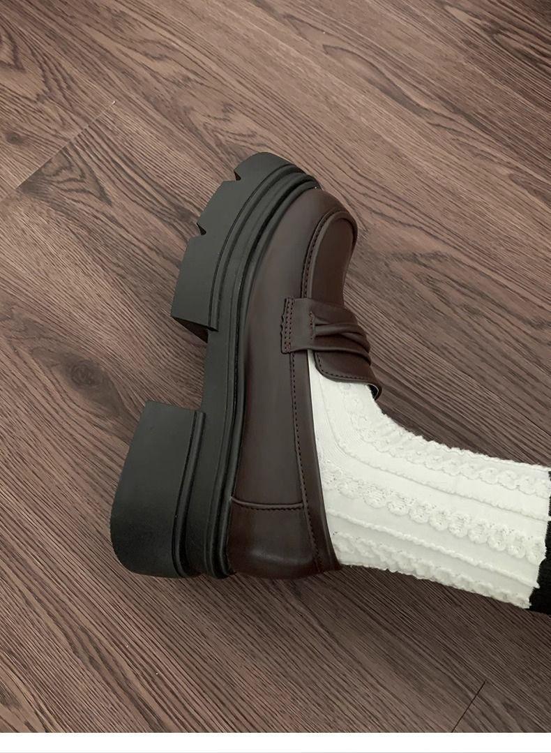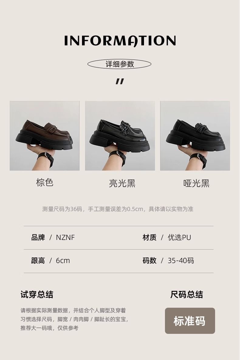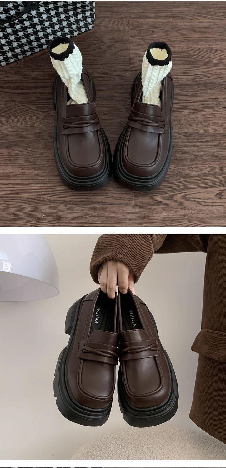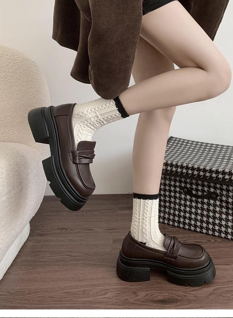 Zapatos nuevos individuales de suela gruesa estilo universitario zapatos de cuero pequeños zapatos de mujer tacón grueso 2023 mocasines de otoño e invierno zapatos de mujer sin cordones negros