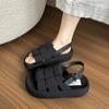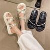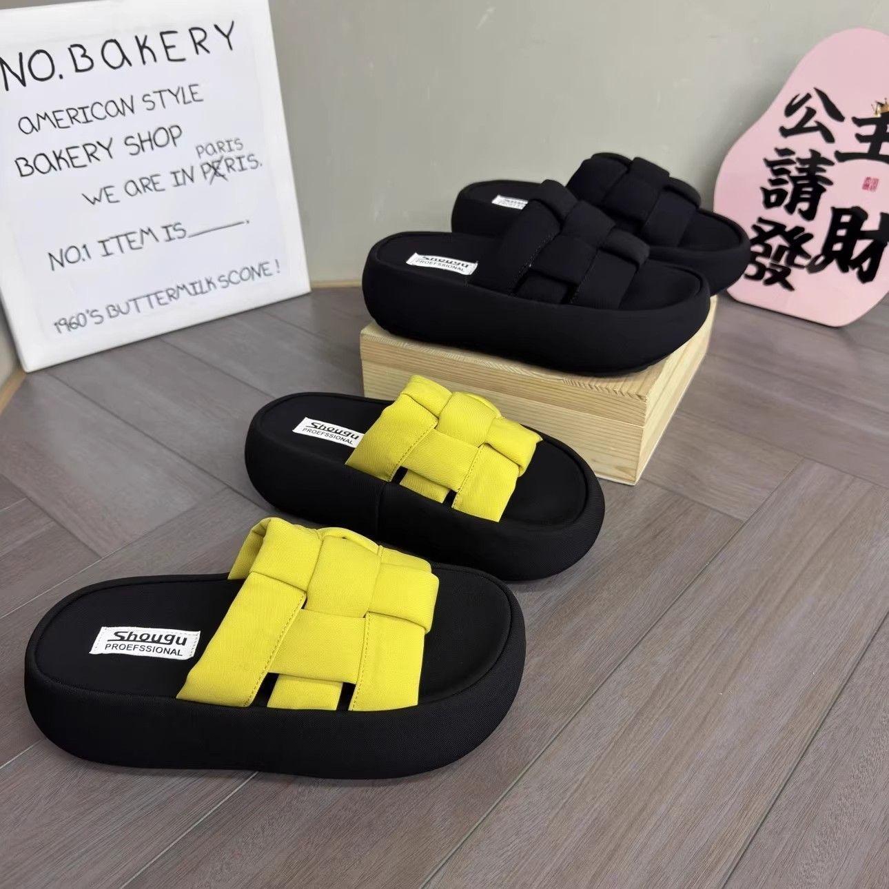 Sandalias Versátiles de Punta Descubierta de Alta Gama Slip-On para Mujer 2025 Verano Nueva Moda Pantuflas Tejidas de Suela Gruesa para Mujer