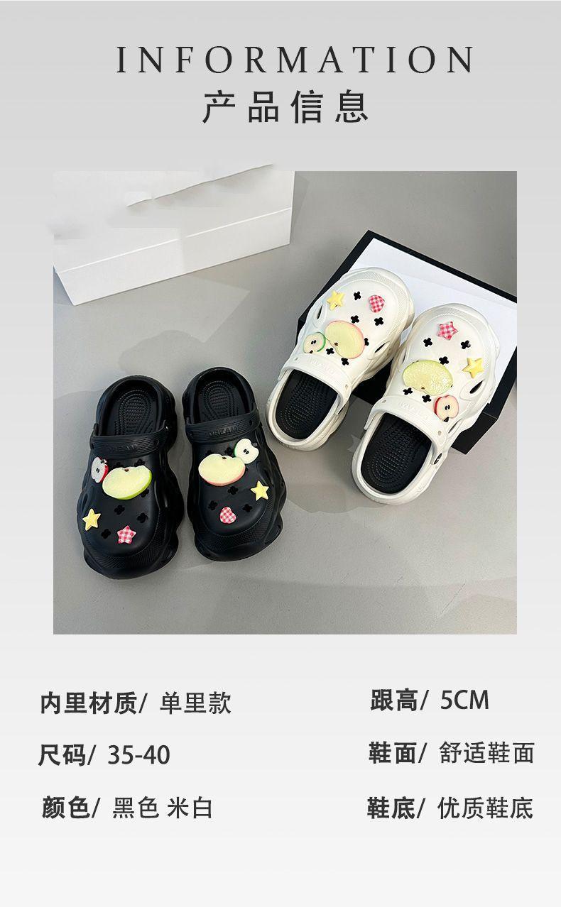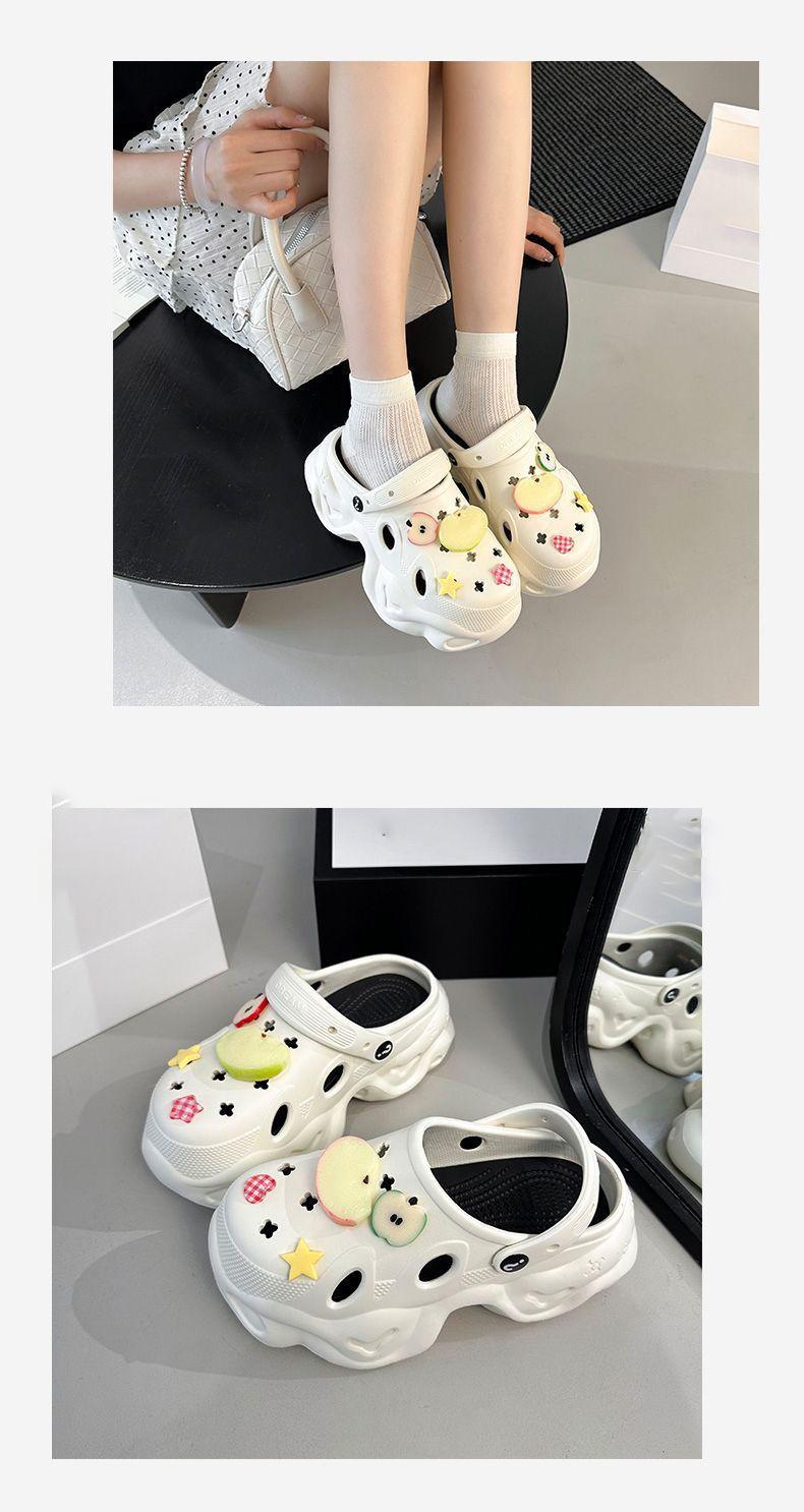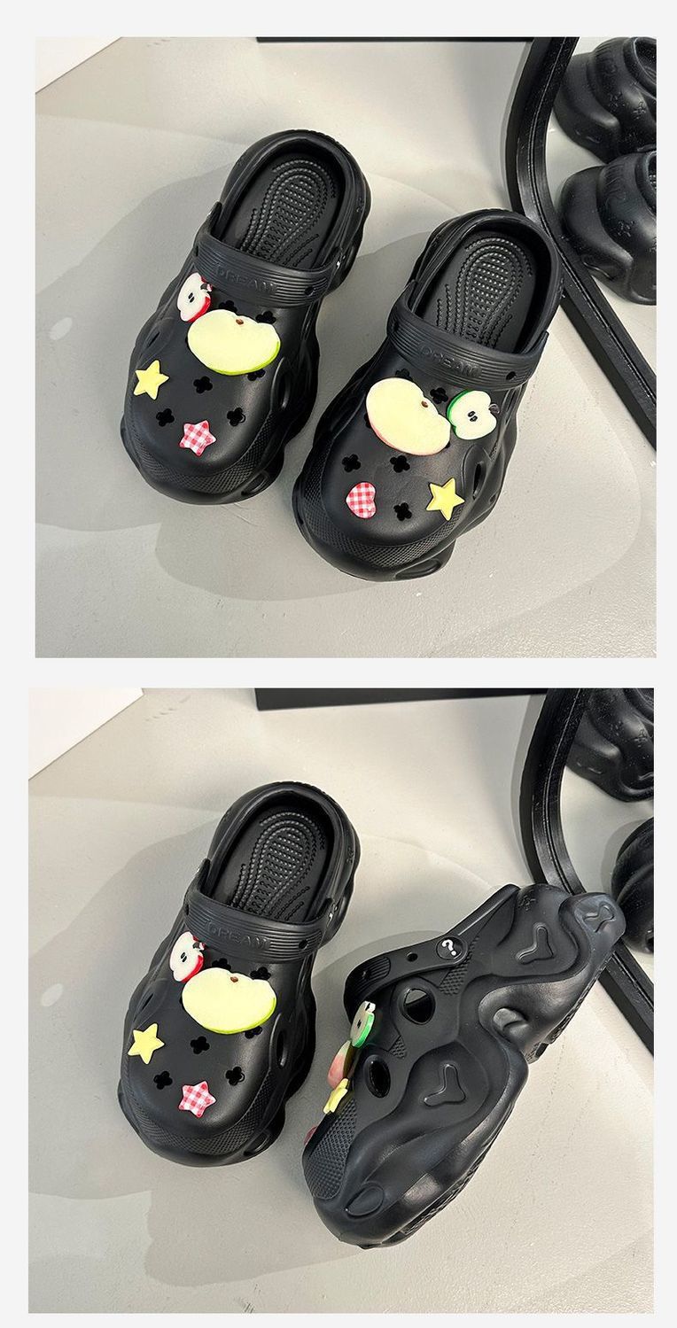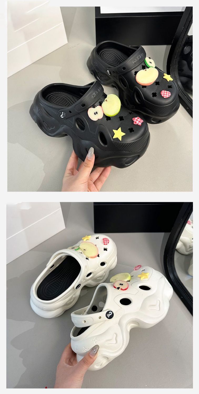 Sandalias de punta cerrada de doble uso antideslizantes de suela gruesa 2025 verano y otoño nuevo lindo zapato de agujeros de estrella de manzana de dibujos animados para mujer