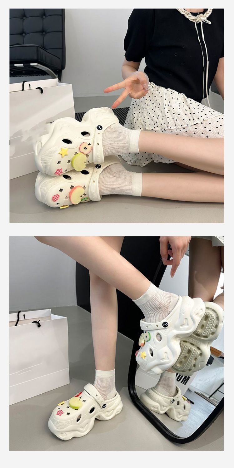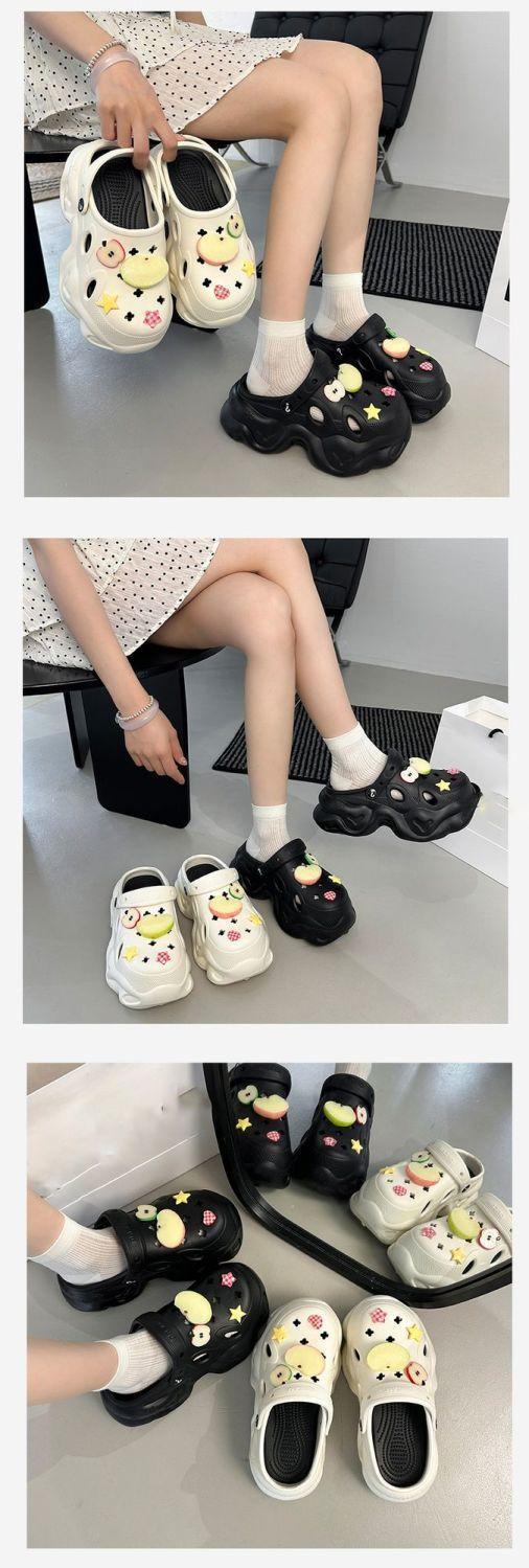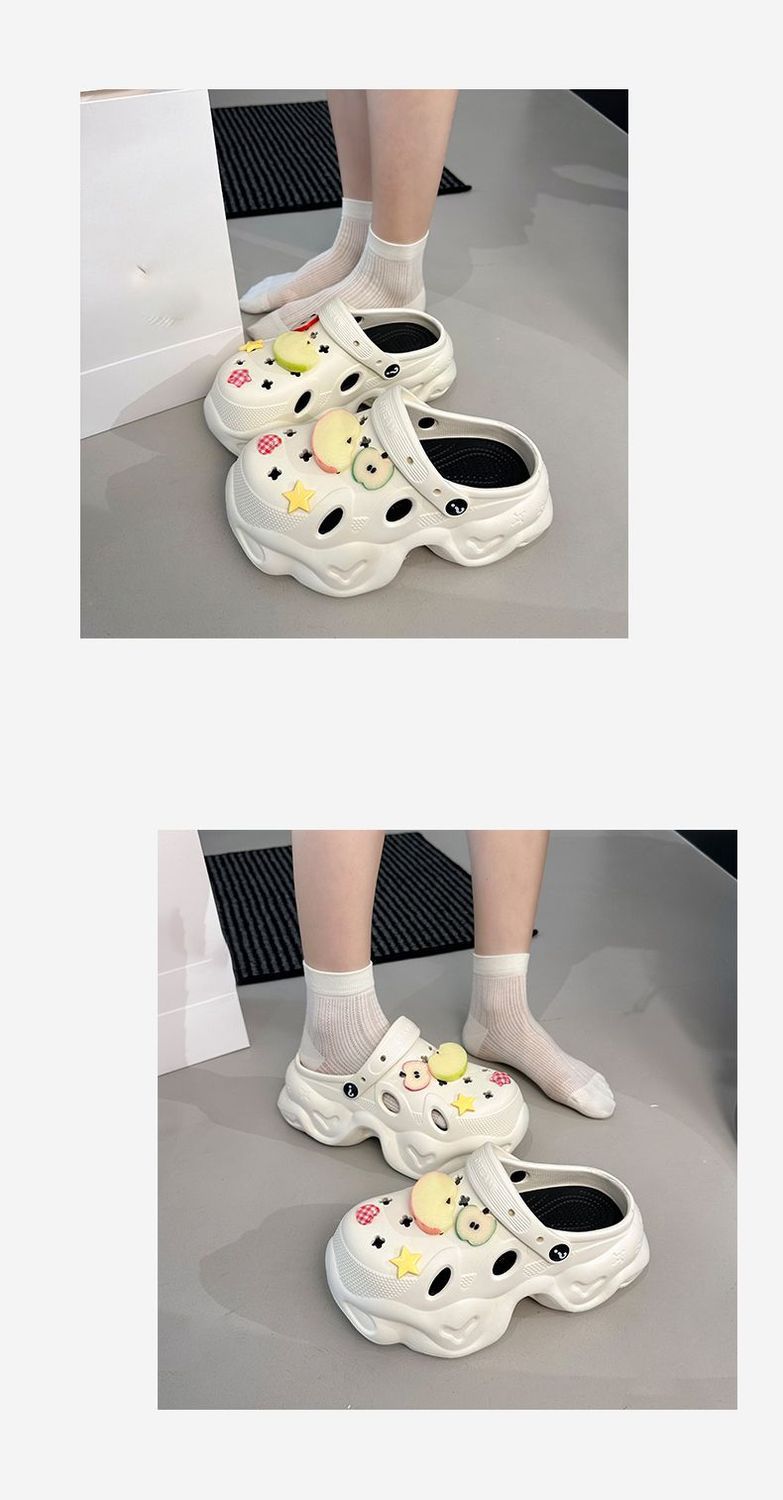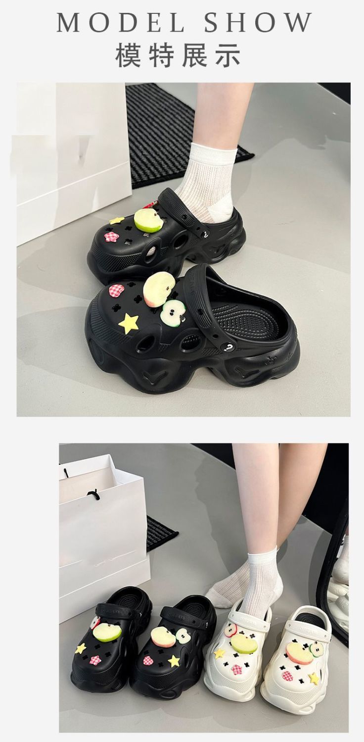 Sandalias de punta cerrada de doble uso antideslizantes de suela gruesa 2025 verano y otoño nuevo lindo zapato de agujeros de estrella de manzana de dibujos animados para mujer