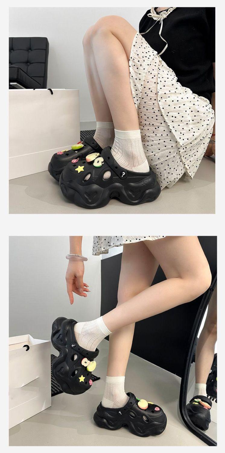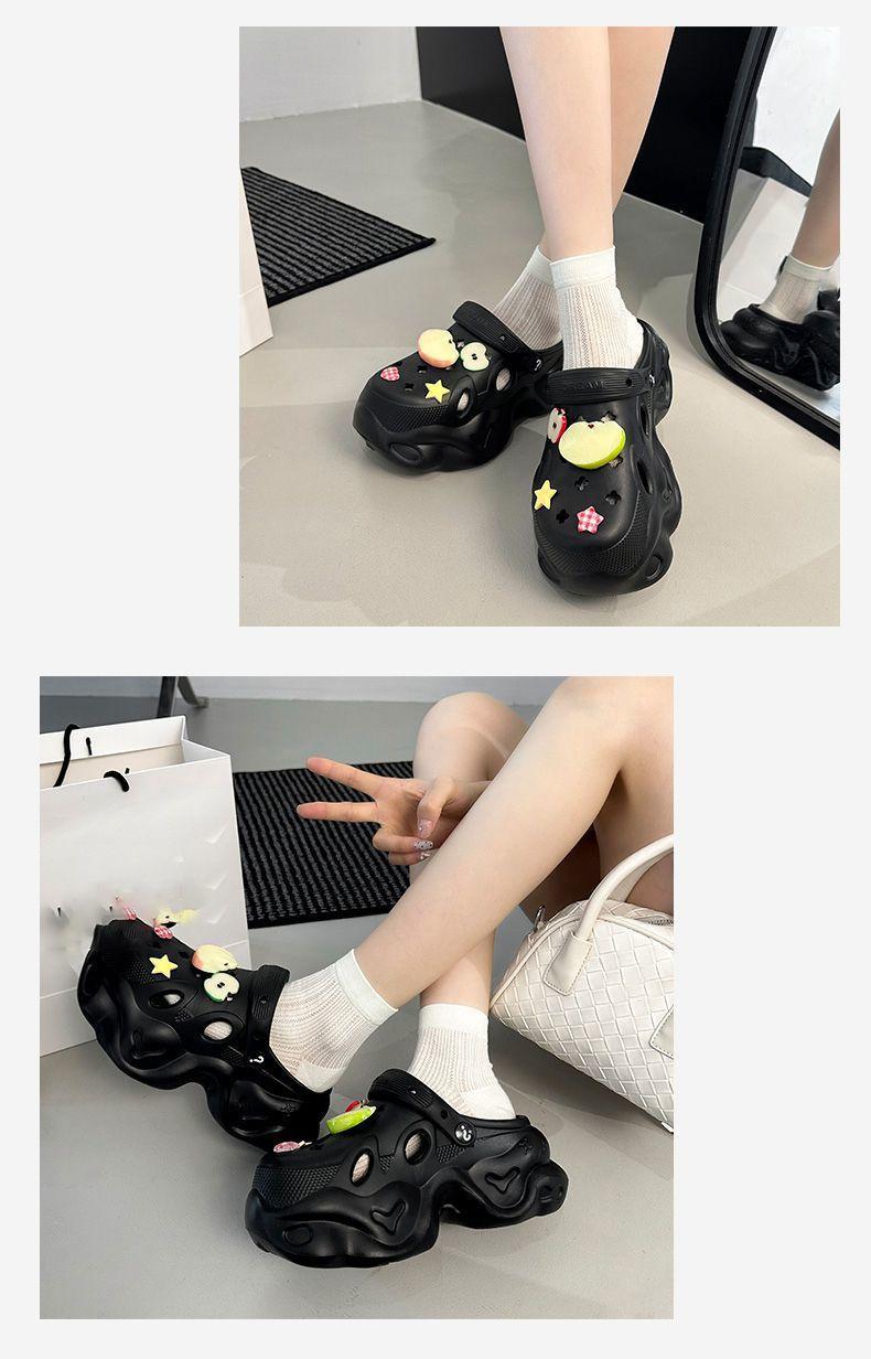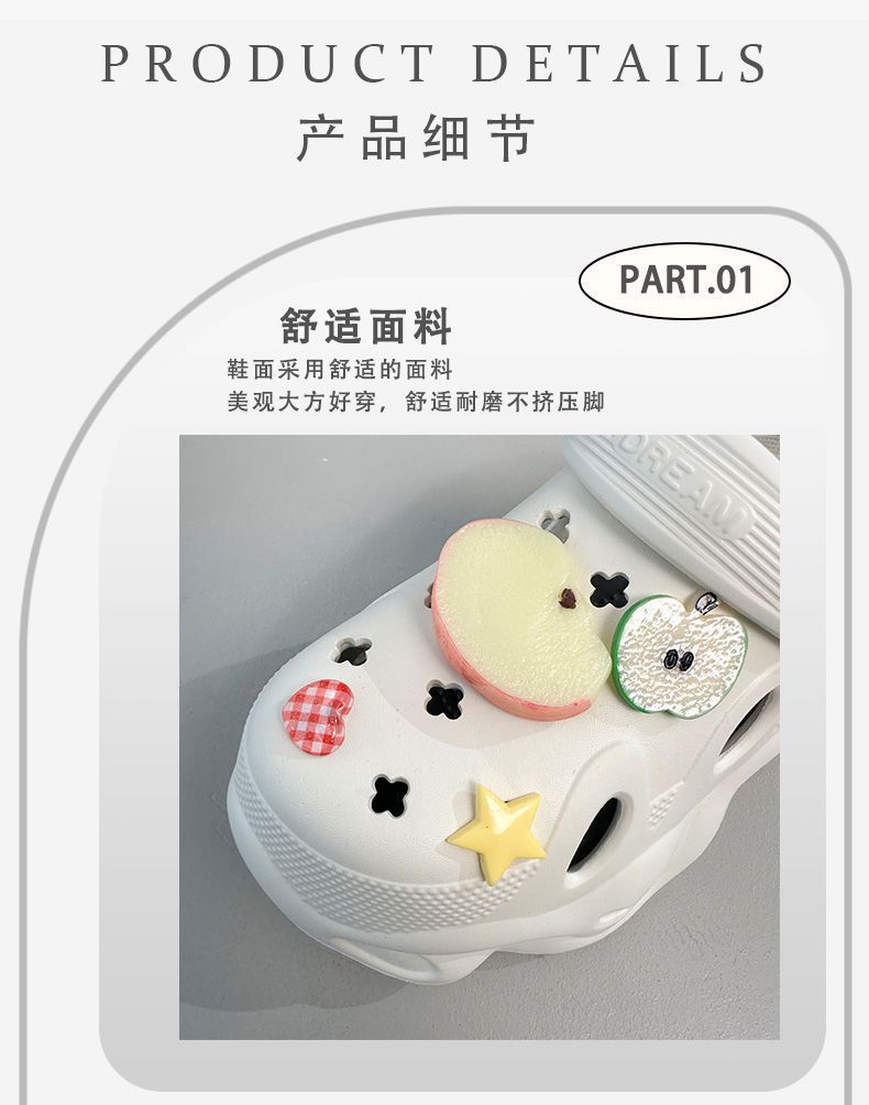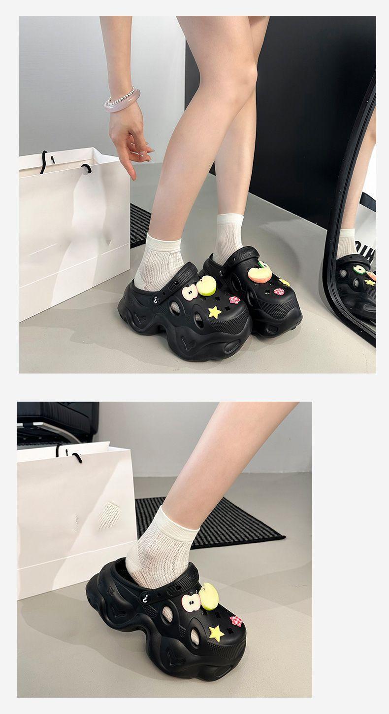 Sandalias de punta cerrada de doble uso antideslizantes de suela gruesa 2025 verano y otoño nuevo lindo zapato de agujeros de estrella de manzana de dibujos animados para mujer