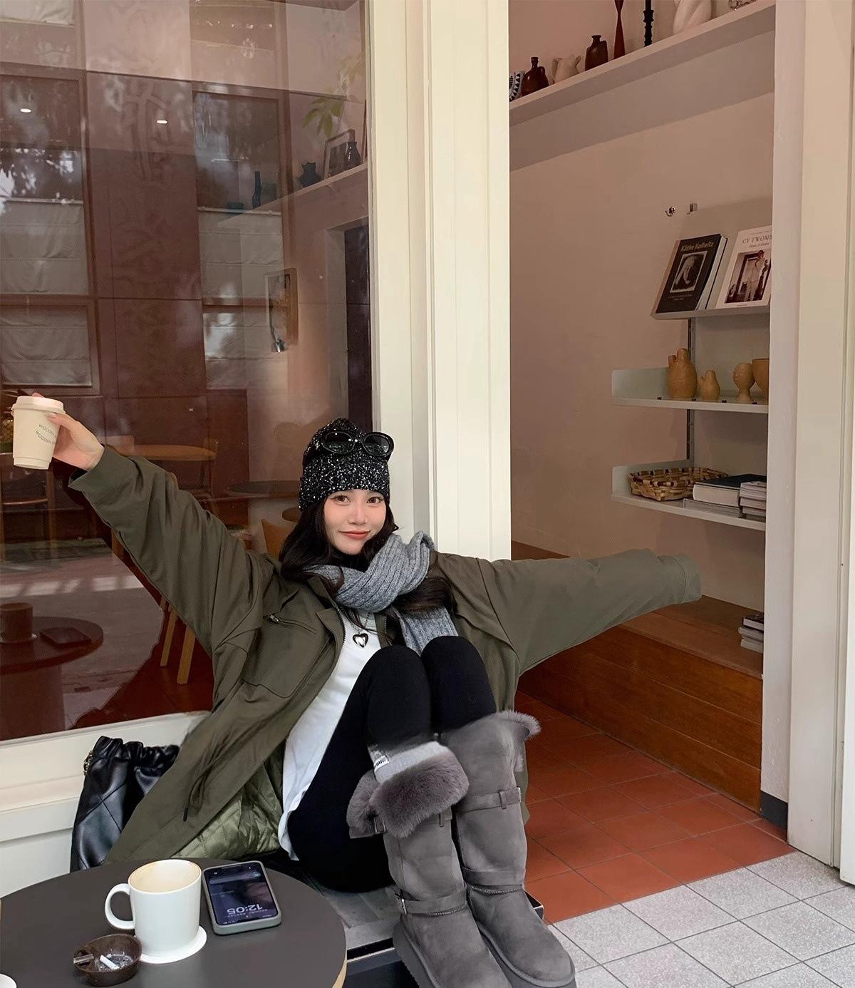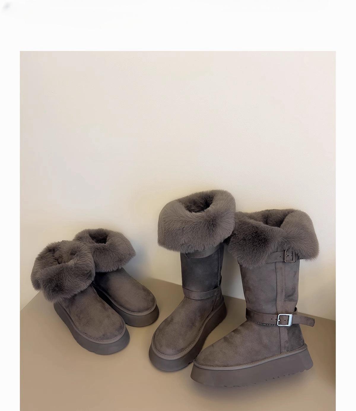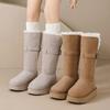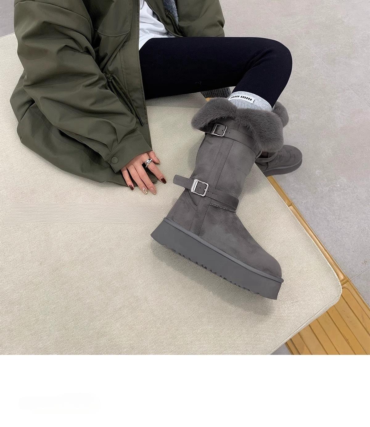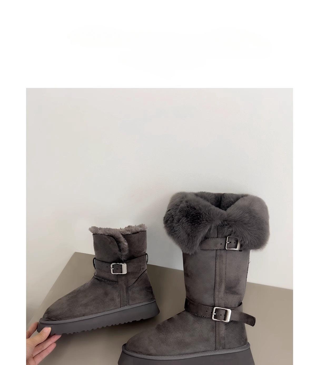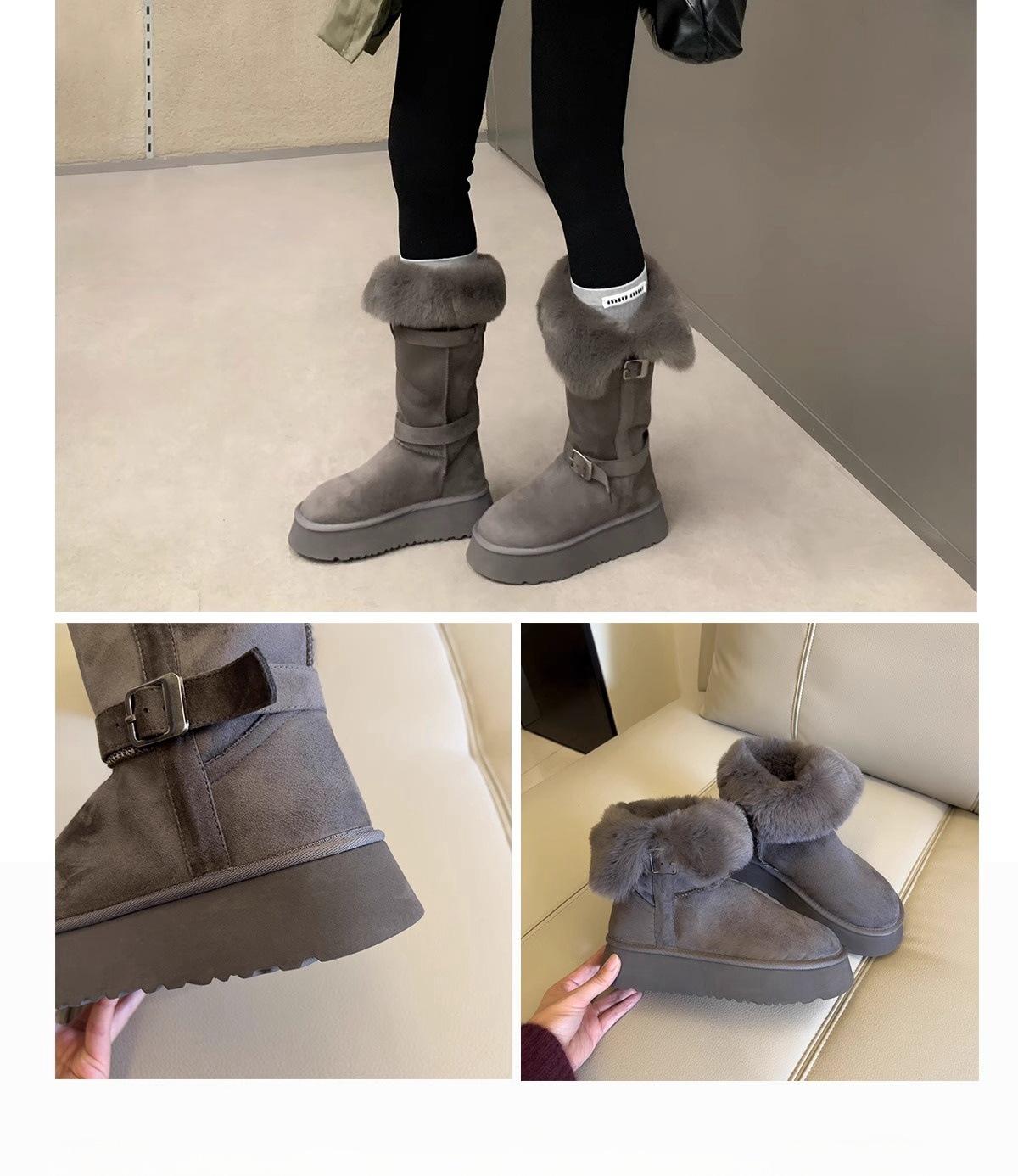 Botas de nieve grises de suela gruesa para mujer 2025 invierno nuevo doble uso tubo largo engrosado cálido versátil botas altas zapatos de algodón