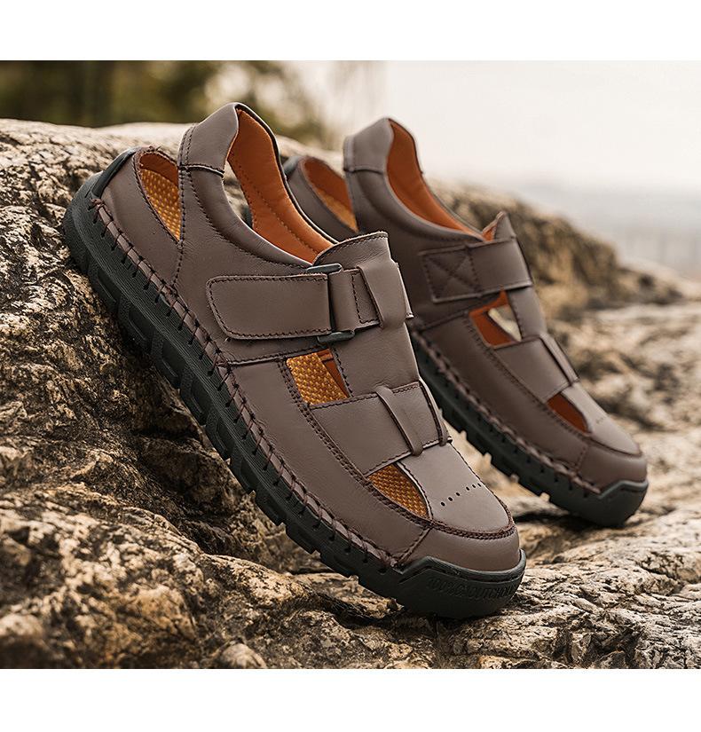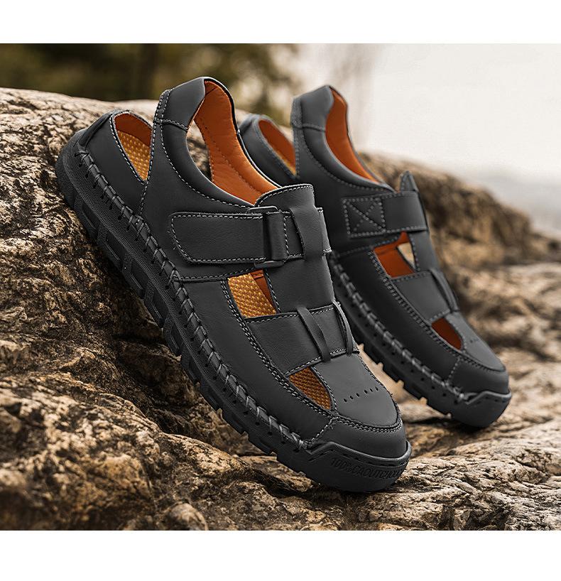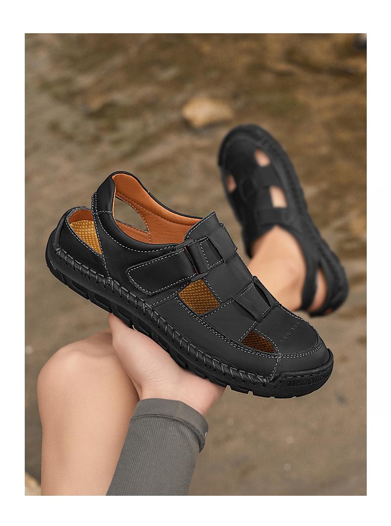 Sandalias de hombre transfronterizas 2025 verano capa superior sandalias de piel de vaca comercio exterior europeo y americano talla grande sandalias de hombre nuevo
