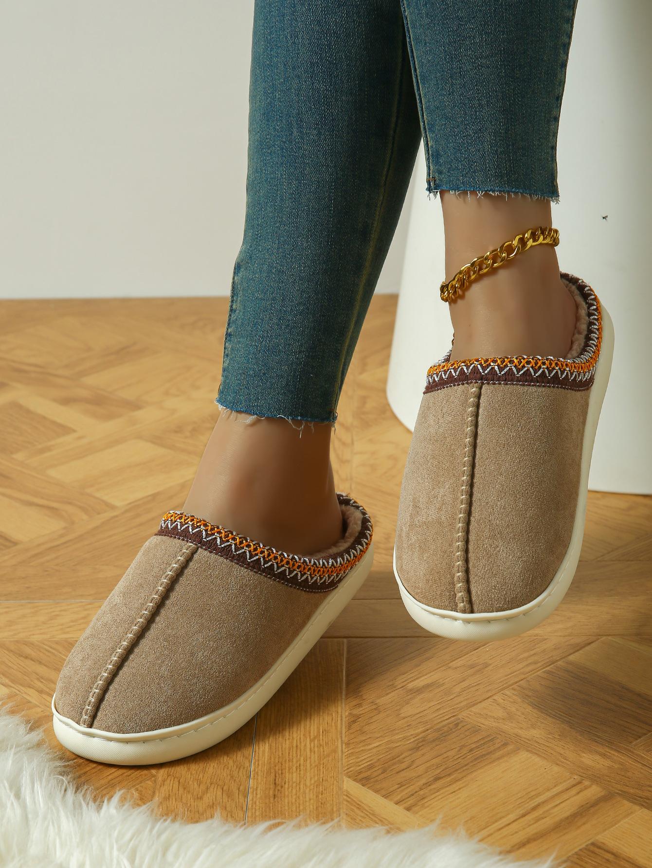 Fotos reales, empaquetadas individualmente en bolsas OPP transparentes. Parte superior de gamuza, forro afelpado, suela de EVA, saludables y cómodas, adecuadas para ambientes interiores como habitaciones, dormitorios, salas de estar, balcones, oficinas, etc., la elección para la vida moderna en el hogar.