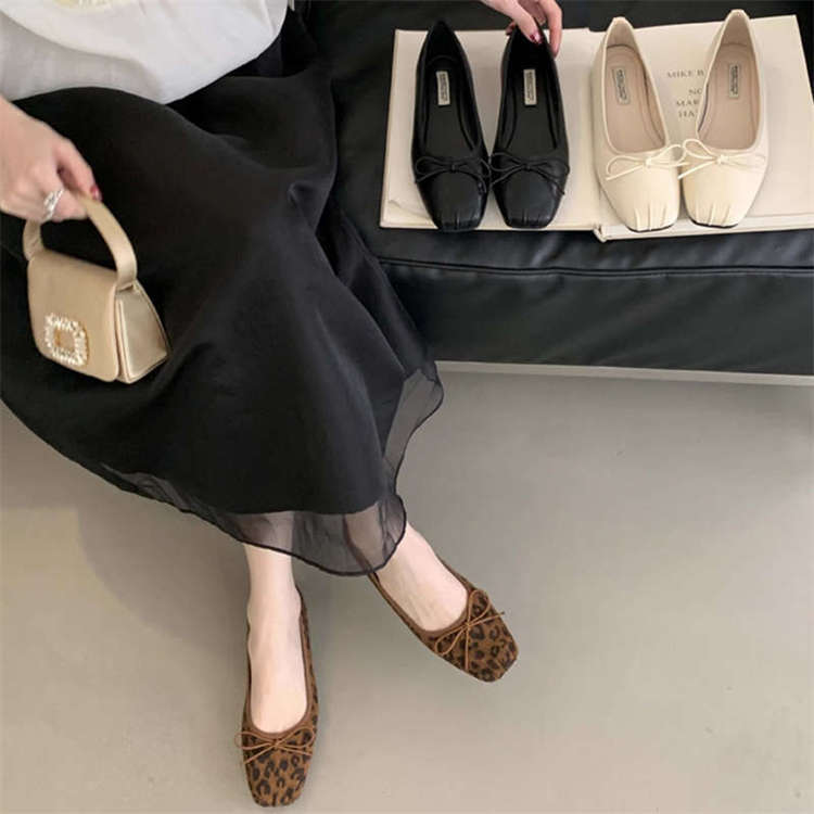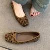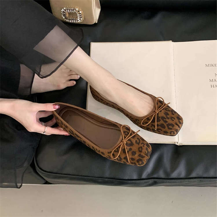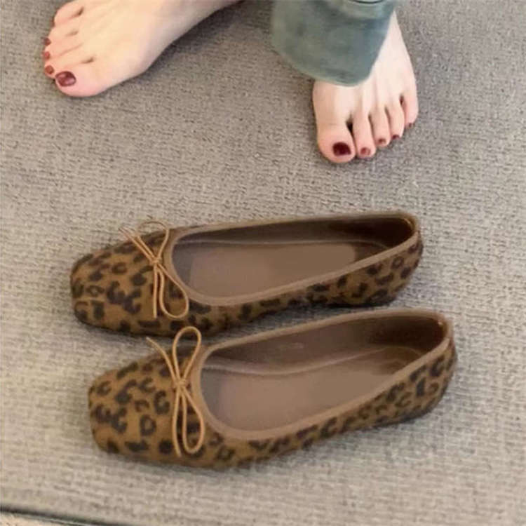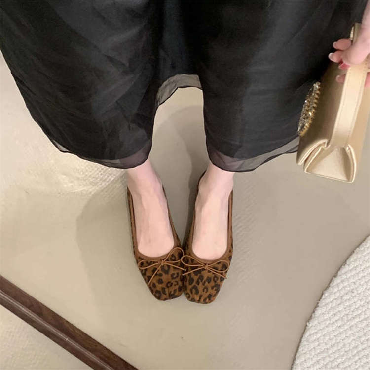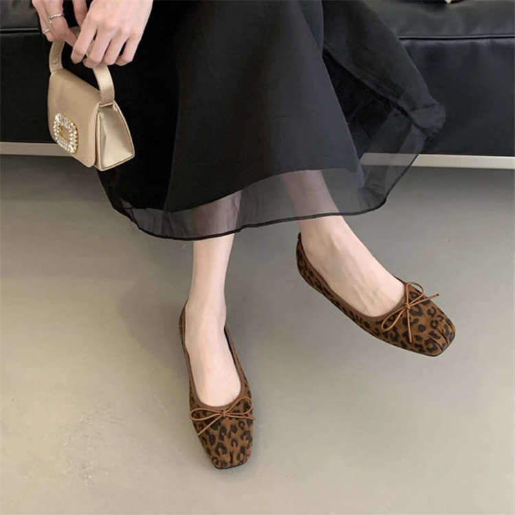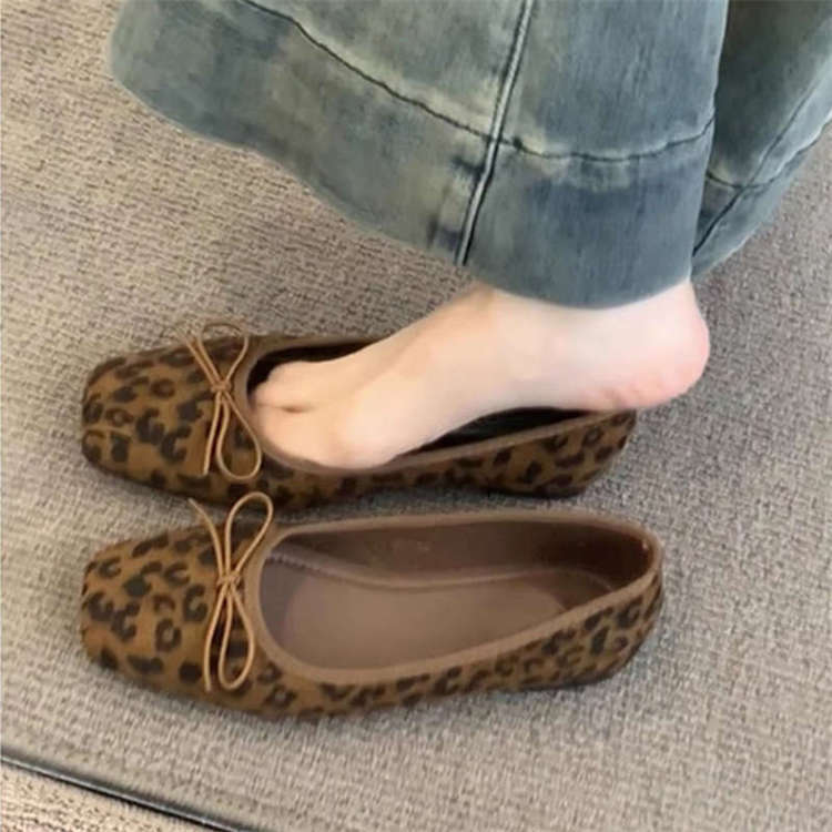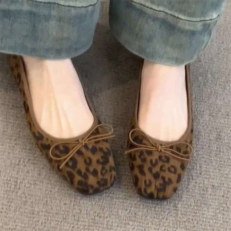 Versión de Cuero Suave~Mocasines de Abuelita Slip-on de Cuero Suave Retro Francés Lazo Estampado Leopardo Corte Bajo Bailarinas Mujer