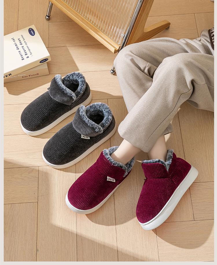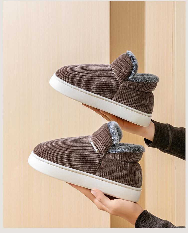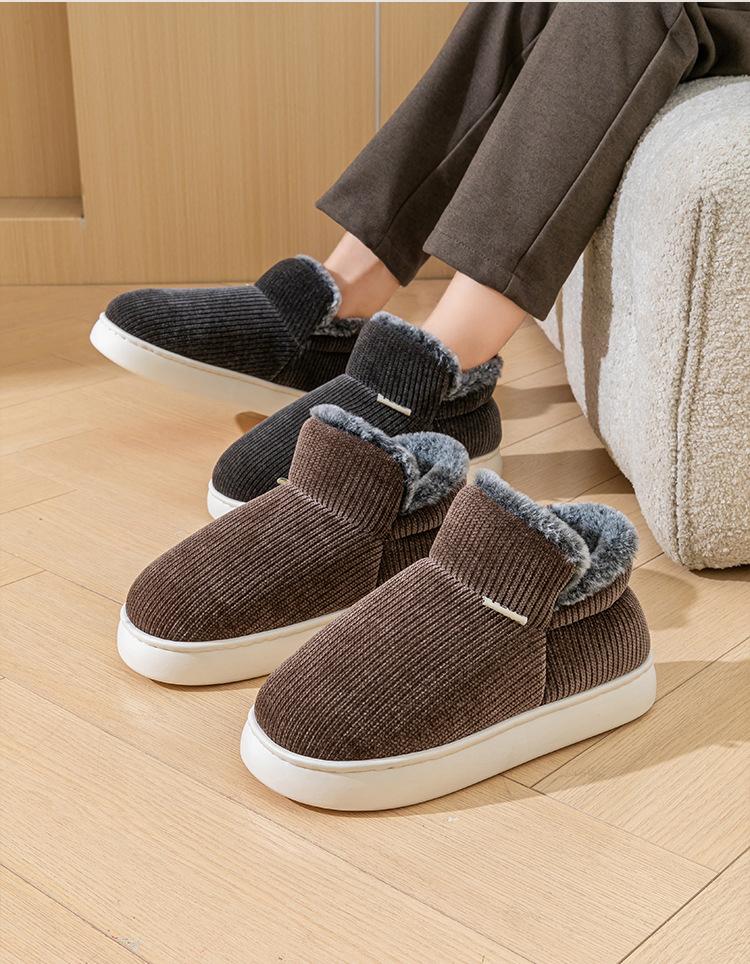 Zapatos de algodón para personas mayores estilo nuevo 2025 hombres otoño e invierno para interior en casa antideslizantes suela gruesa más terciopelo cálido zapatillas de algodón para cubrir el talón mujeres
