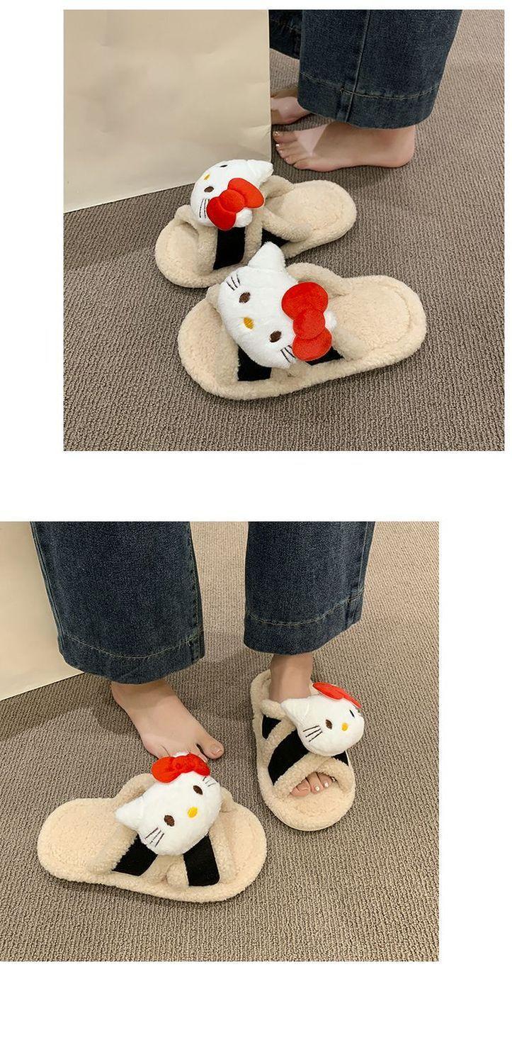 Hogar Suela Suave Antideslizante Cómodas Pantuflas de Dibujos Animados Mullidas Mujer 2025 Otoño/Invierno Nuevas Pantuflas Lindas de Gatito con Una Tira