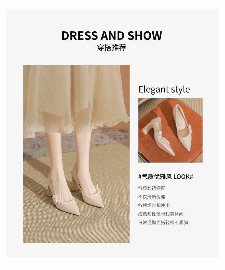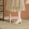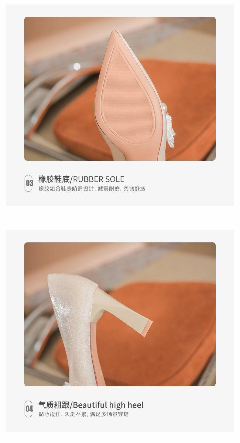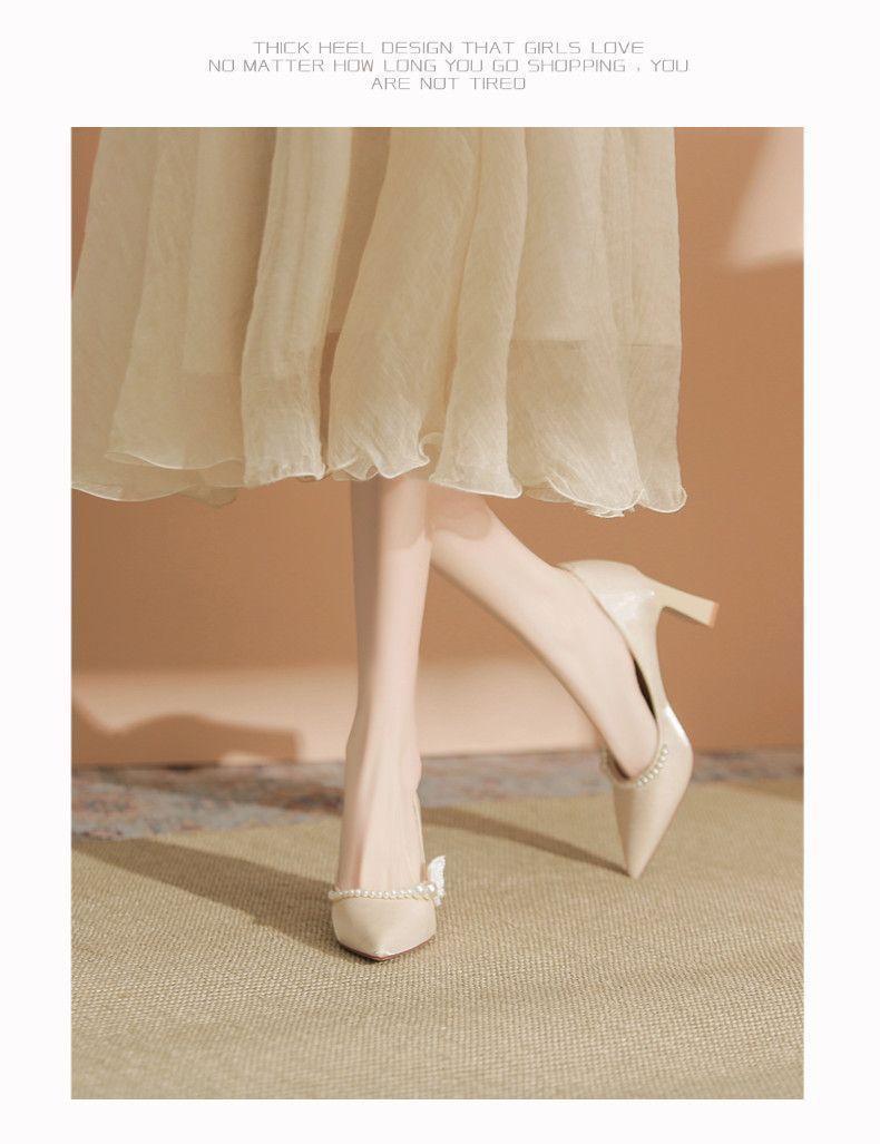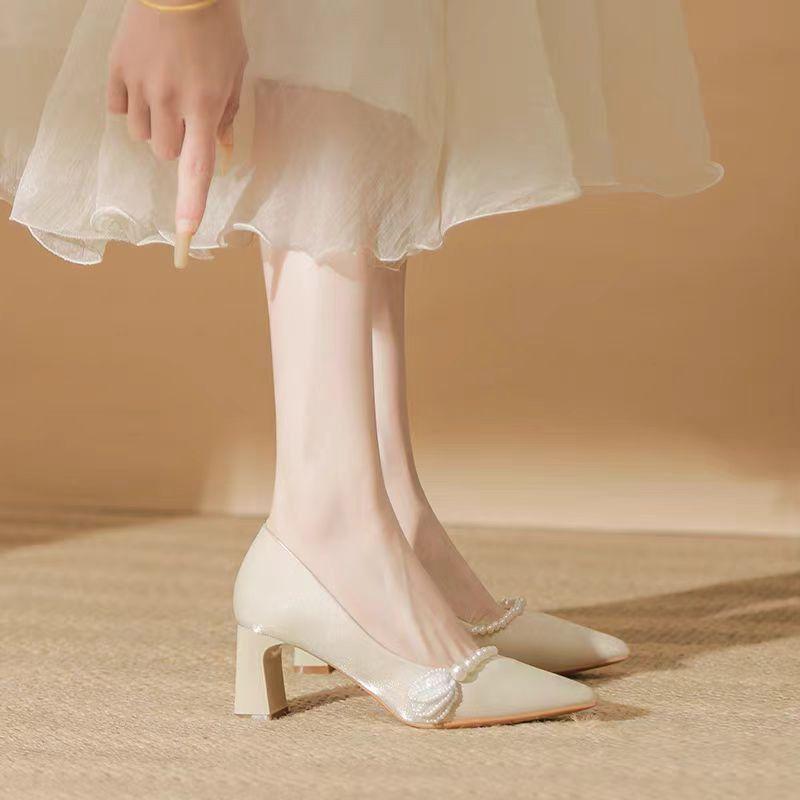 Moda Tacones Altos Mujer Tacón Grueso Zapatos de Boda Perla Pies No Cansados 2025 Verano Nuevo Champagne Puntera Puntiaguda Zapatos Individuales Zapatos de Dama de Honor