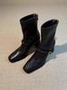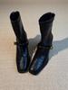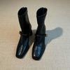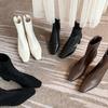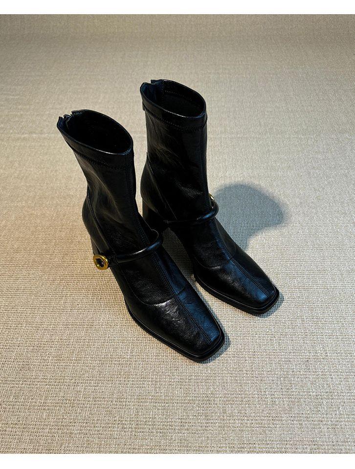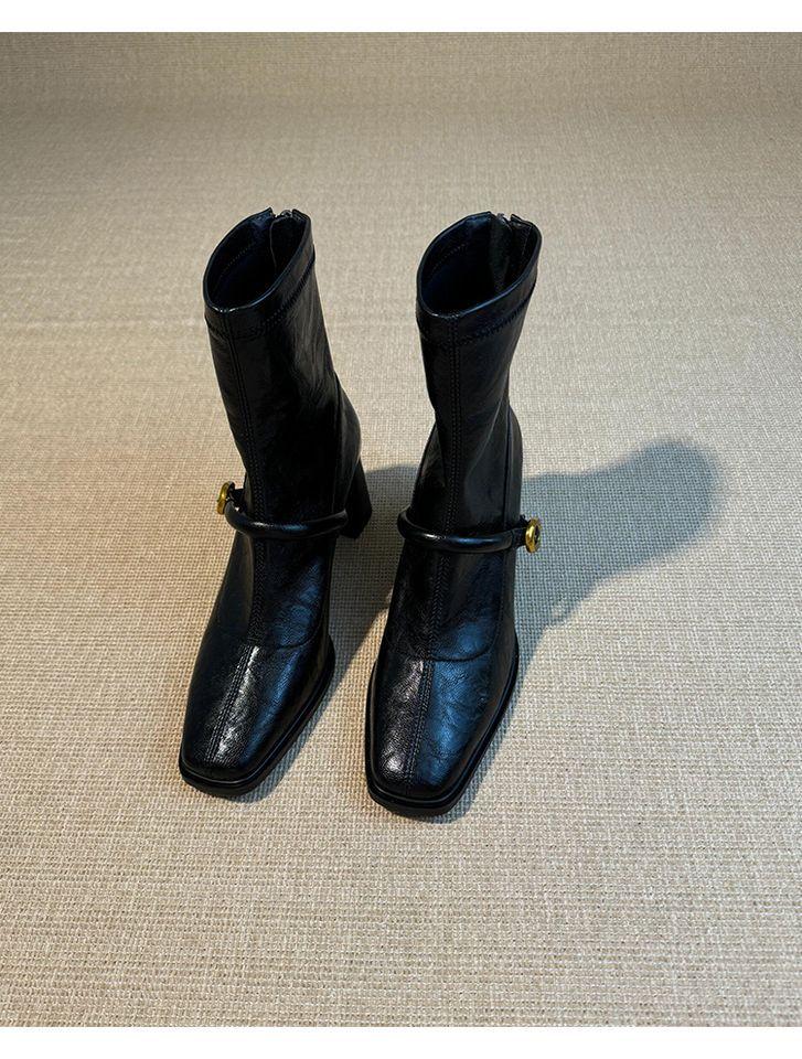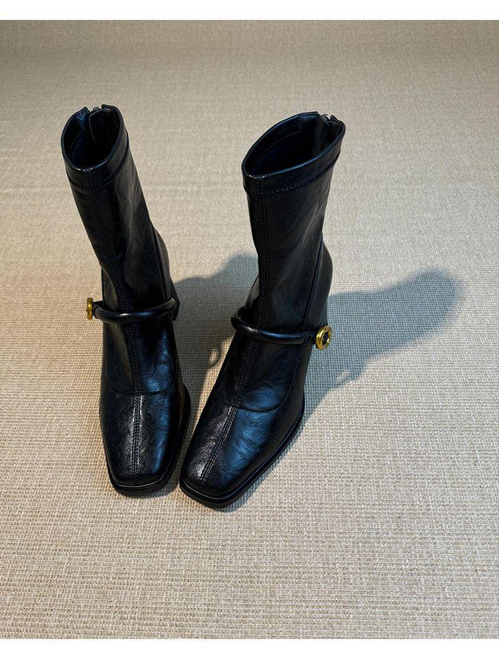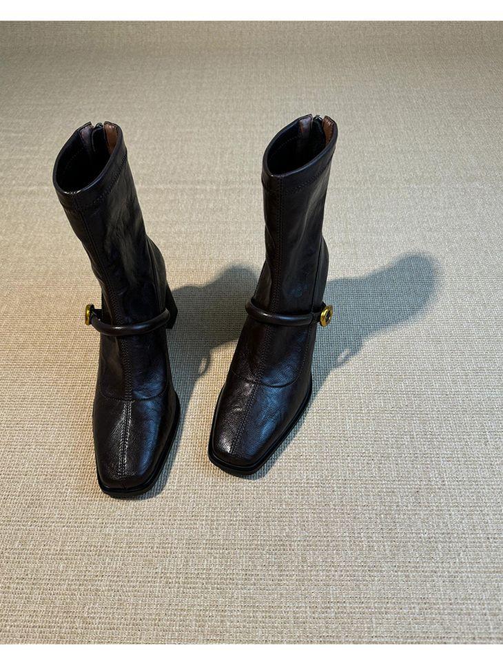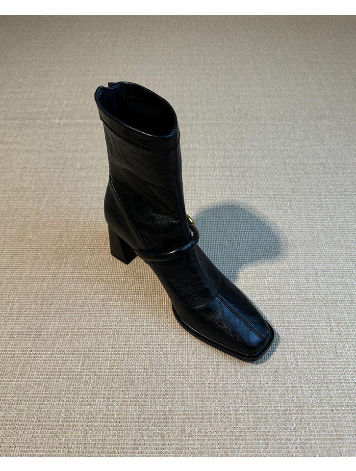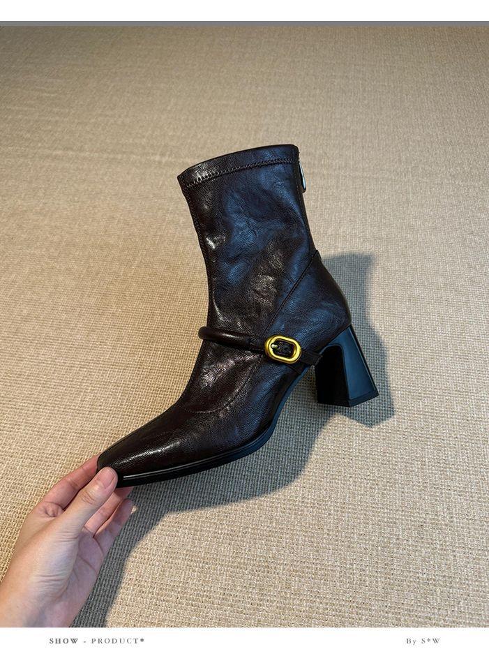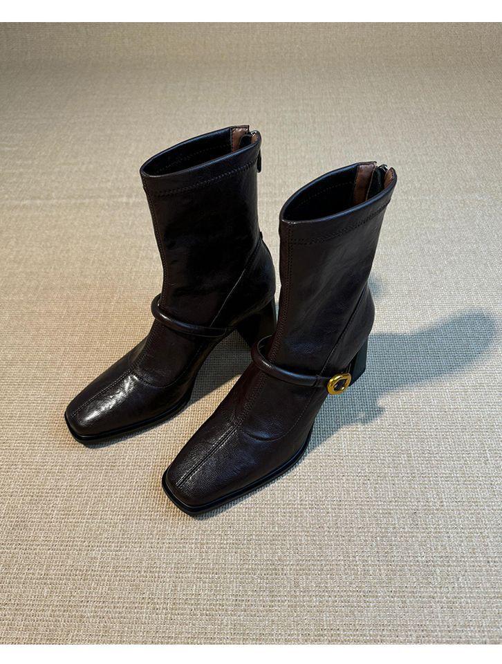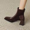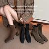 Otoño 2025 Nuevos Botines de Tobillo Ajustados de Tacón Alto con Punta Cuadrada para Mujer Tacón Grueso Francés Retro Cierre Trasero Botas Cortas Elásticas de Moda