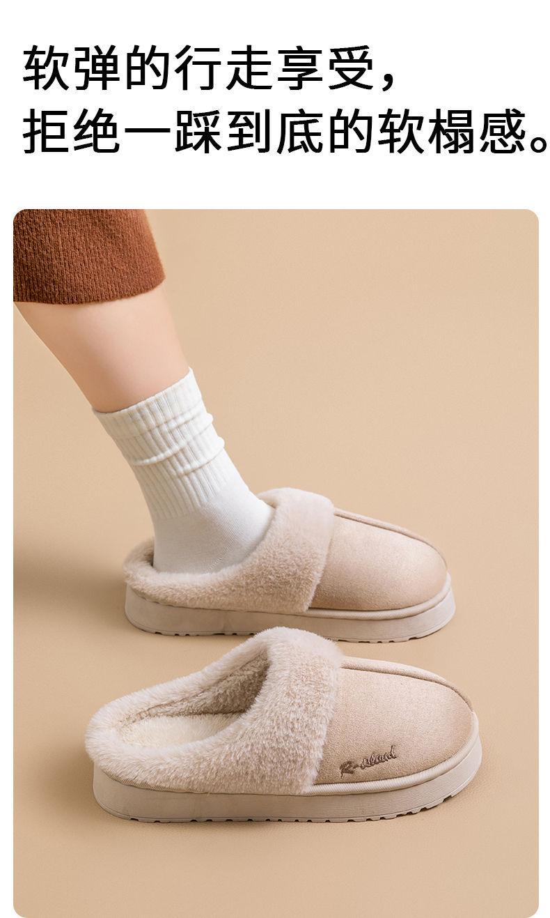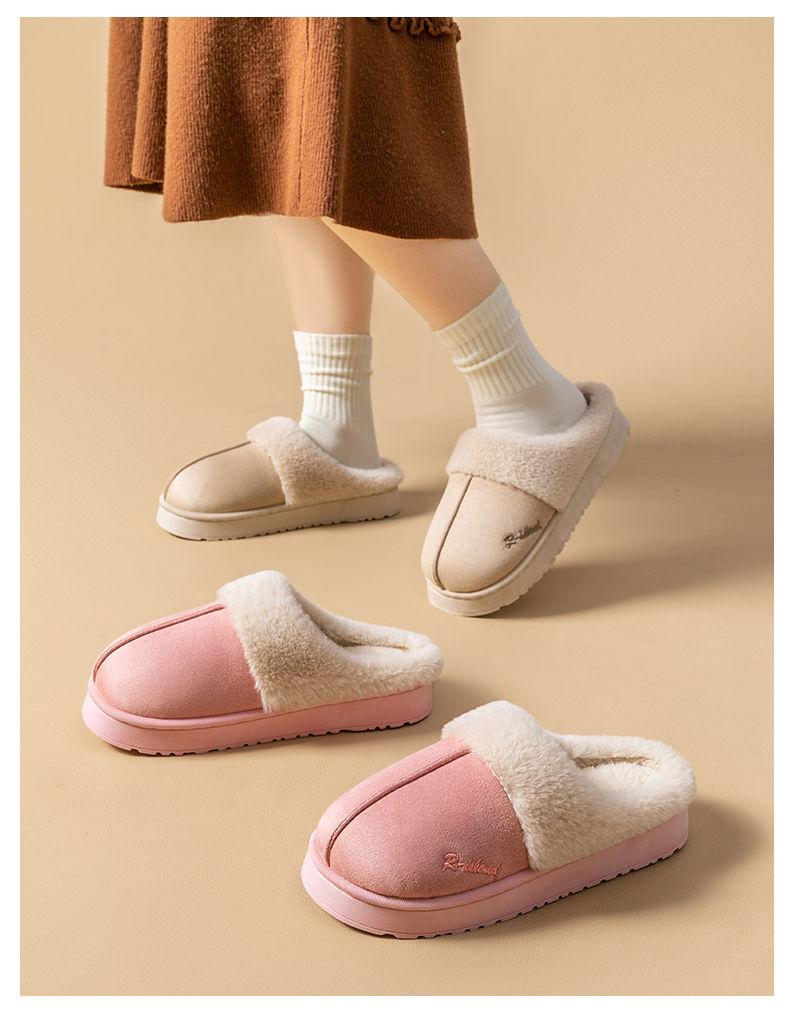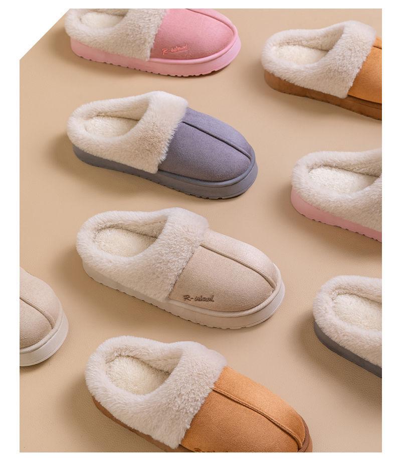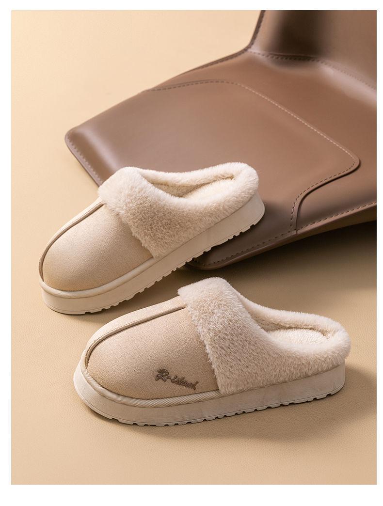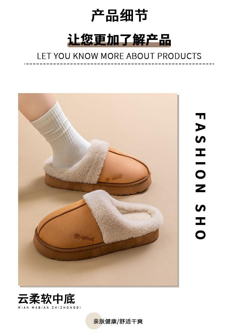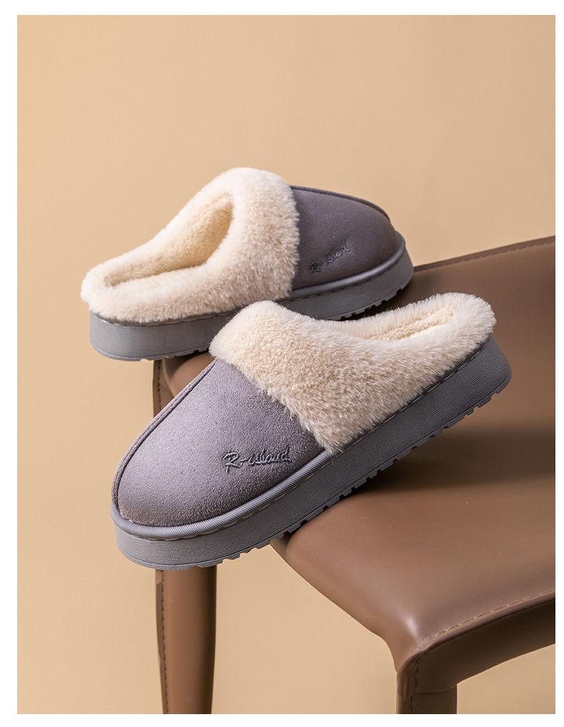 Pantuflas de Algodón para Mujer Otoño Invierno Cálidas Felpa Suela Gruesa Interior Exterior Hogar Punta Cerrada Pareja Pantuflas Peludas Zapatos Postparto Hombres