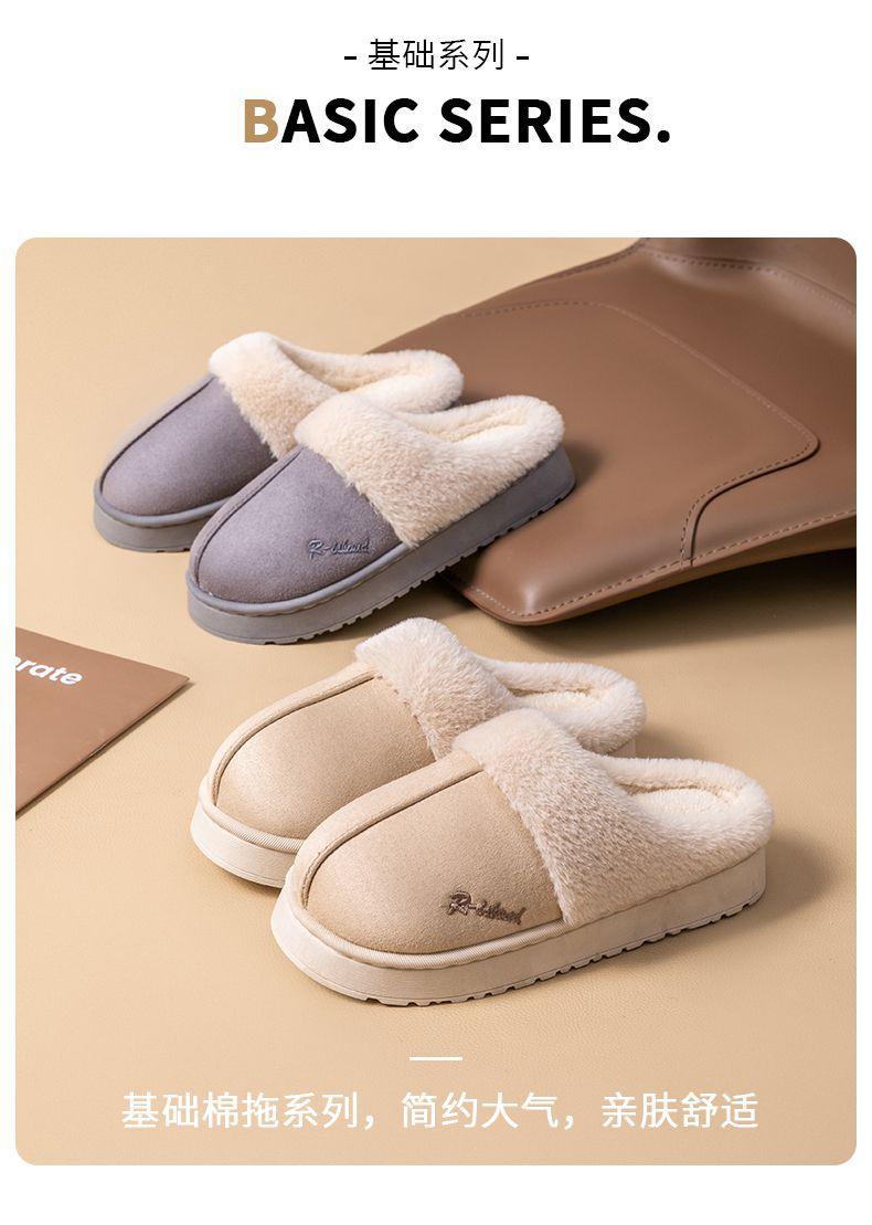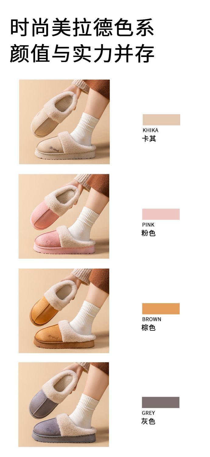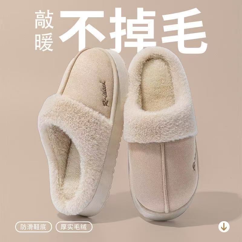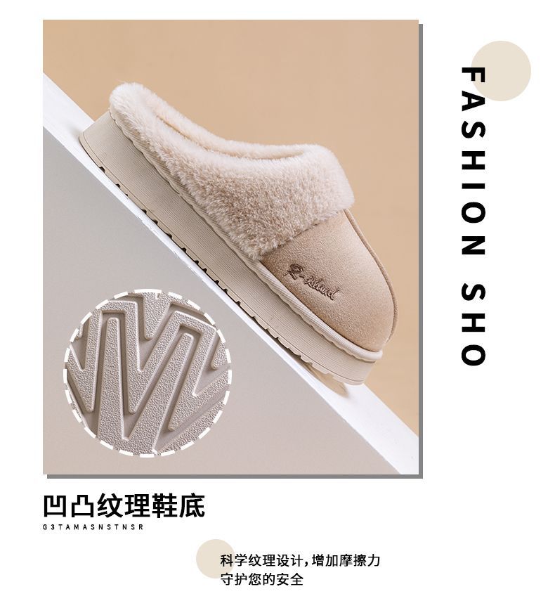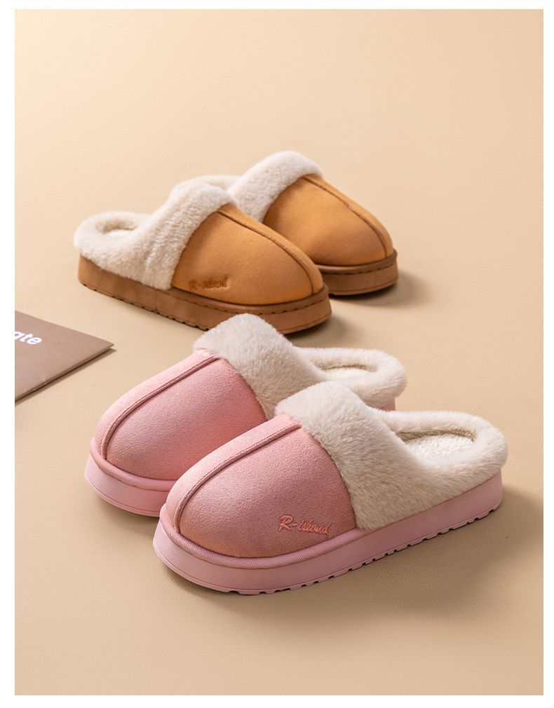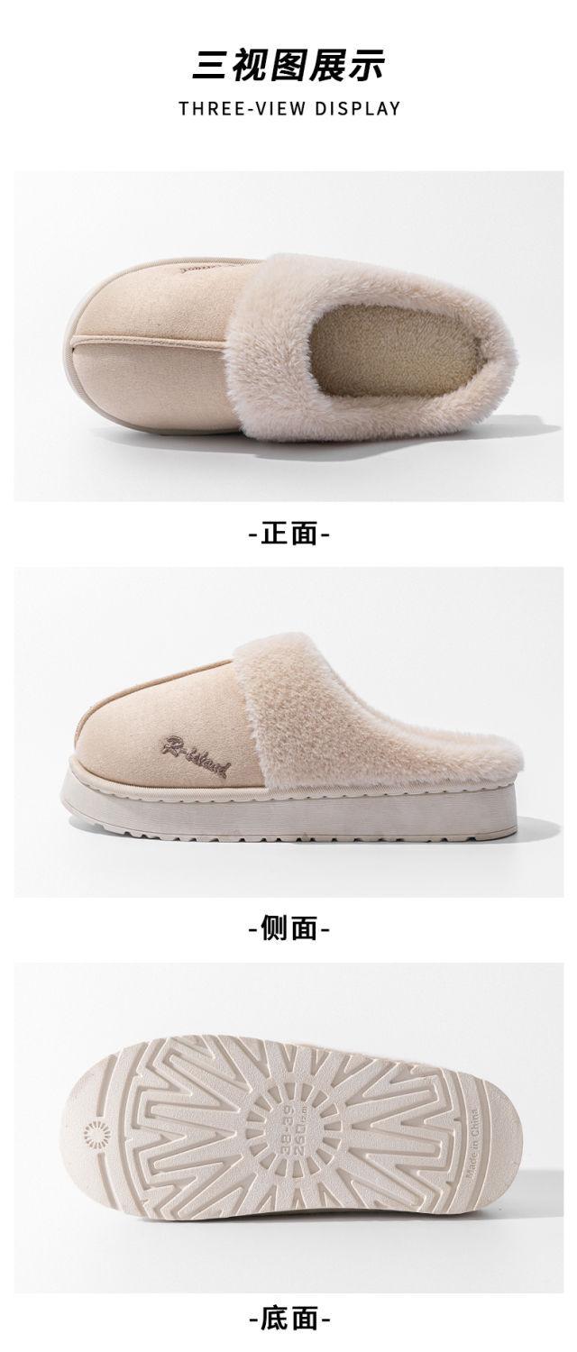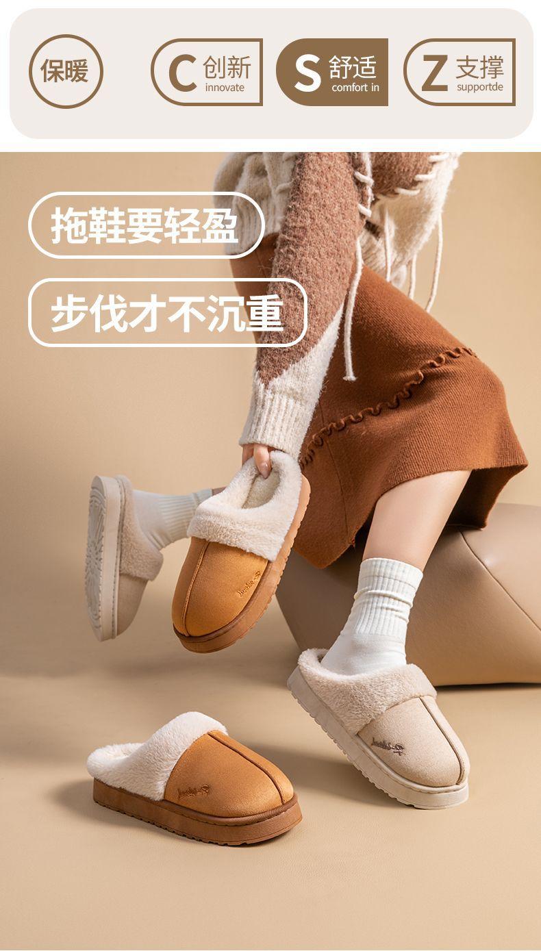 Pantuflas de Algodón para Mujer Otoño Invierno Cálidas Felpa Suela Gruesa Interior Exterior Hogar Punta Cerrada Pareja Pantuflas Peludas Zapatos Postparto Hombres