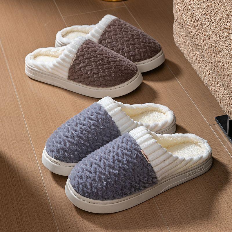 Zapatillas de Algodón Nuevo Estilo 2025 para Mujer Otoño e Invierno Interior Cálidas de Felpa Estilo Pareja Resistentes al Frío Antideslizantes Zapatos de Algodón Gruesos