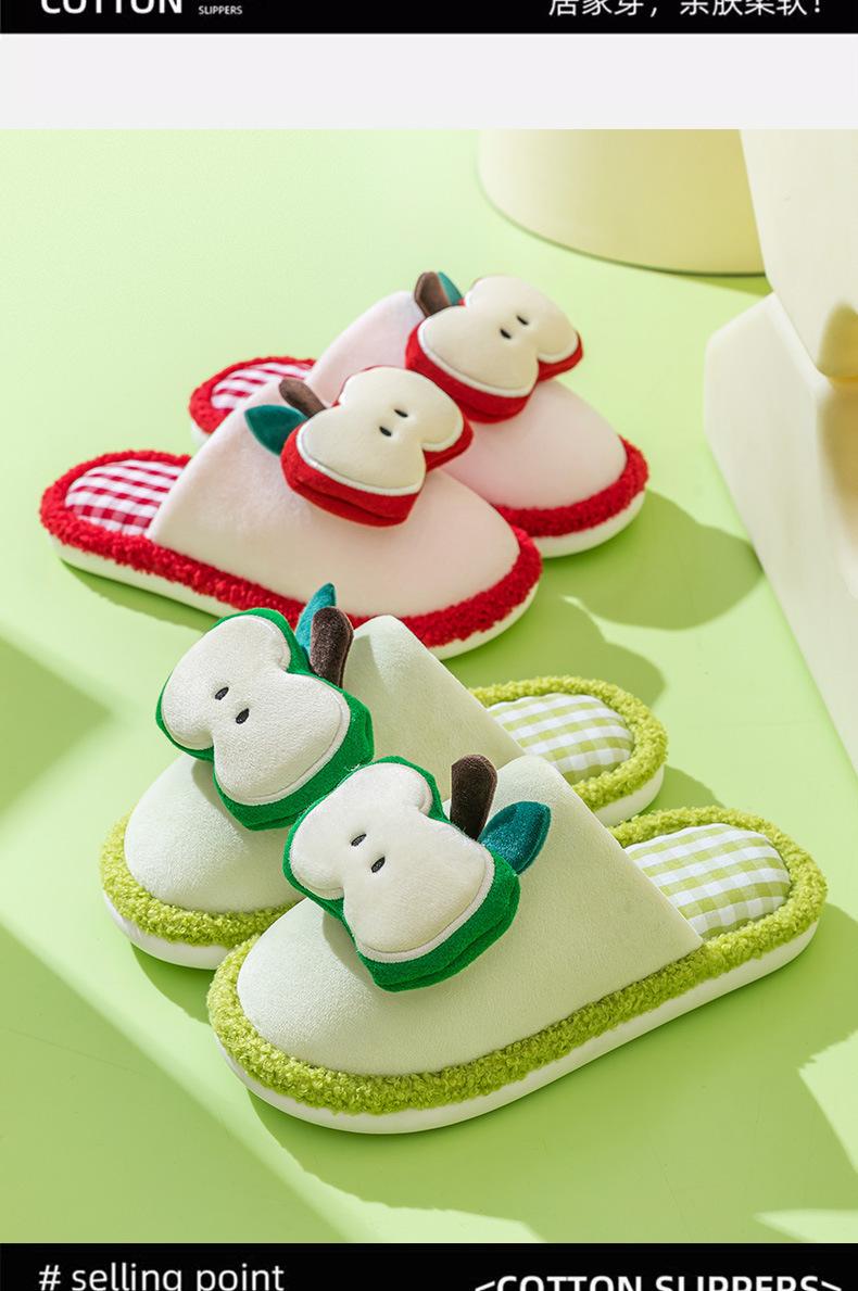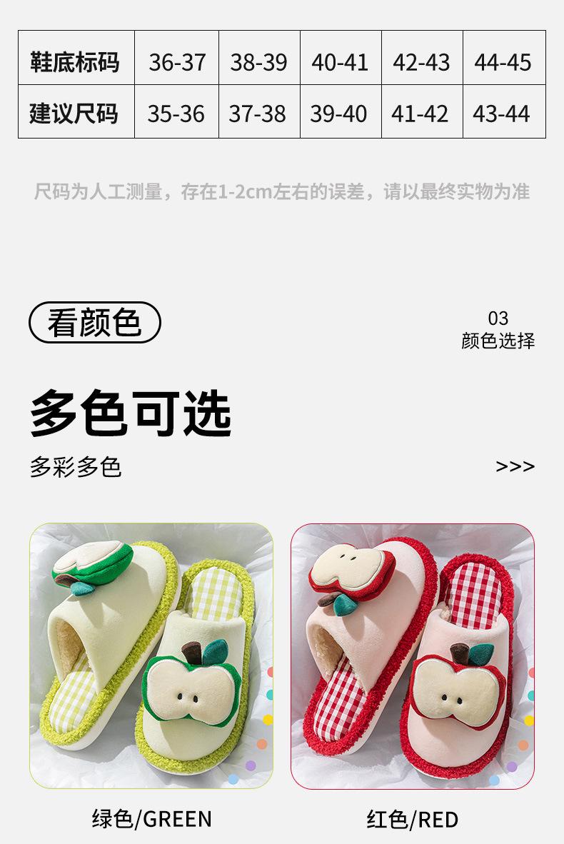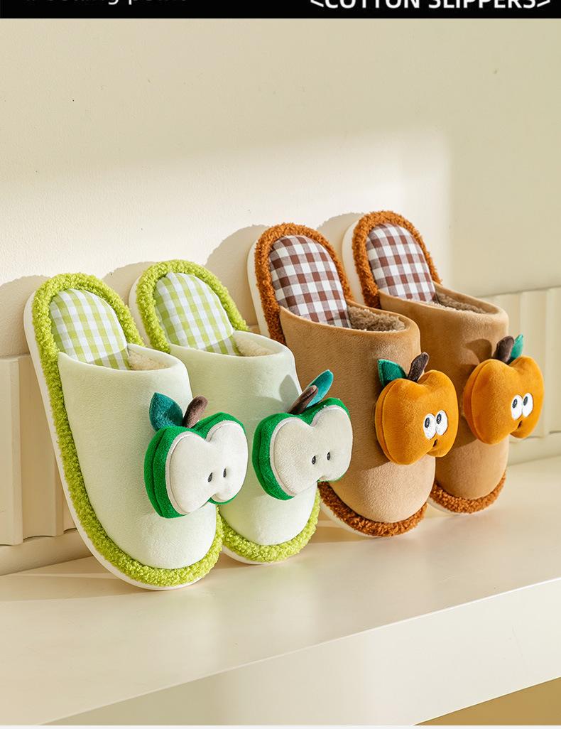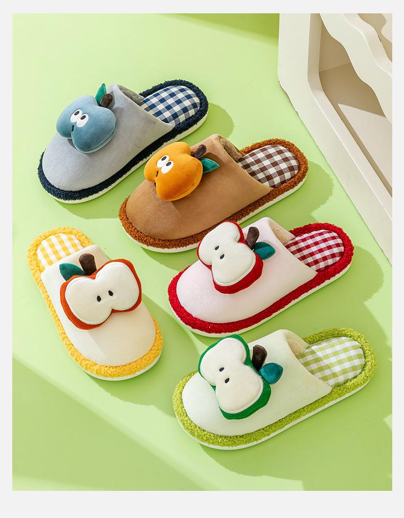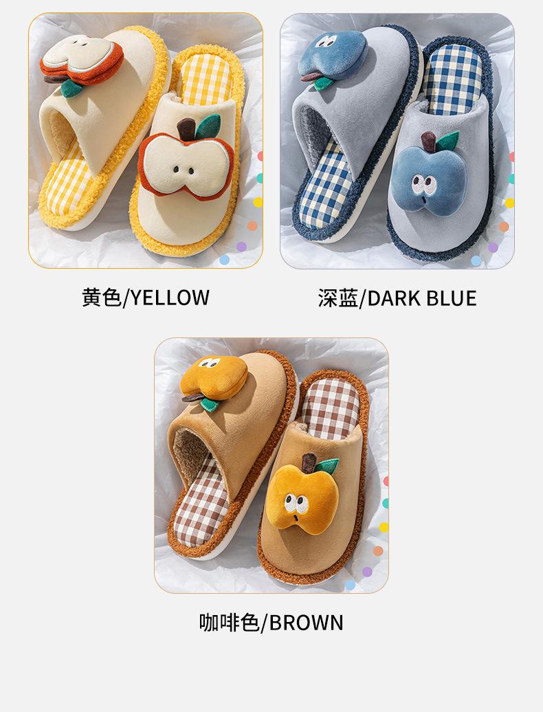 2025 Nuevas Pantuflas Peludas a Cuadros Estilo Apple para Mujer Otoño Invierno Lindas de Dibujos Animados para Casa Interior Punta Cerrada Algodón