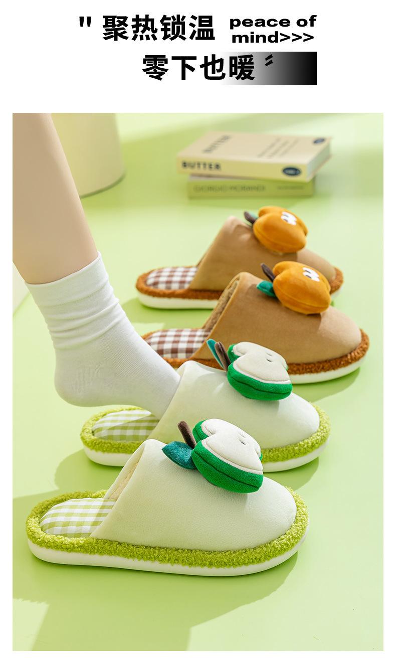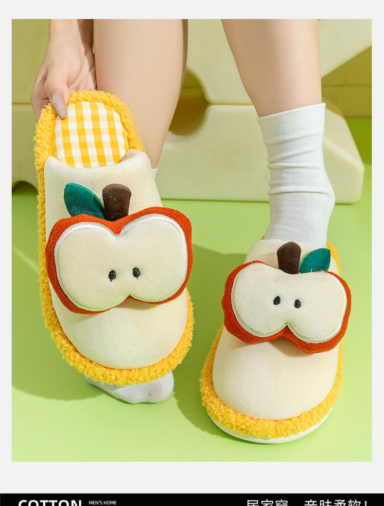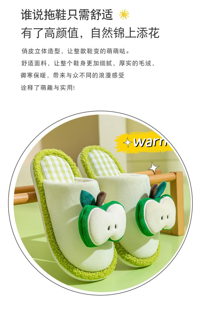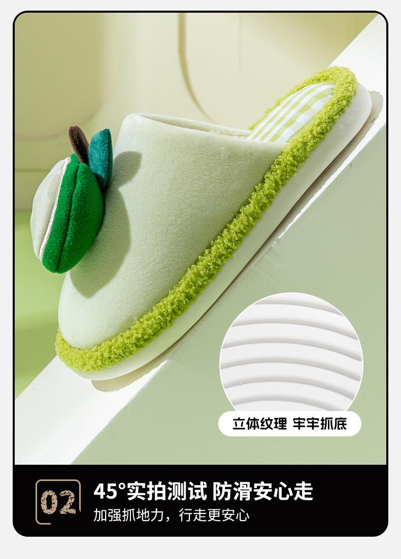 2025 Nuevas Pantuflas Peludas a Cuadros Estilo Apple para Mujer Otoño Invierno Lindas de Dibujos Animados para Casa Interior Punta Cerrada Algodón