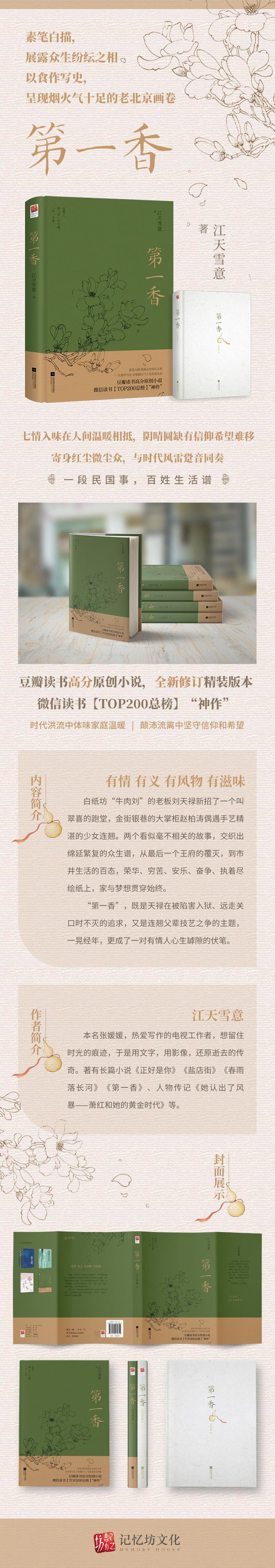 Liu Tianlu, el dueño de "Beef Liu" de Baizhifang, contrató a una nueva camarera llamada Cuixi. Zhao Baitao, el mayordomo jefe de Jinjie Yinxiang, conoció a la hábil joven Lianqiao. Dos historias aparentemente no relacionadas se entrelazan para crear un panorama vasto y complejo de la vida, desde la caída de la última mansión principesca hasta las cien facetas de la vida citadina. Gloria, pobreza, satisfacción, lucha y persistencia se representan en papel, con la familia y los sueños como hilo conductor. """La Primera Fragancia" no es solo la búsqueda eterna de Tianlu cuando fue incriminado y encarcelado y huyó a un lugar lejano, sino también el tema de la disputa sobre habilidades entre los padres de Lianqiao. Después de muchos años, se ha convertido en un presagio de la ruptura entre una pareja de amantes."