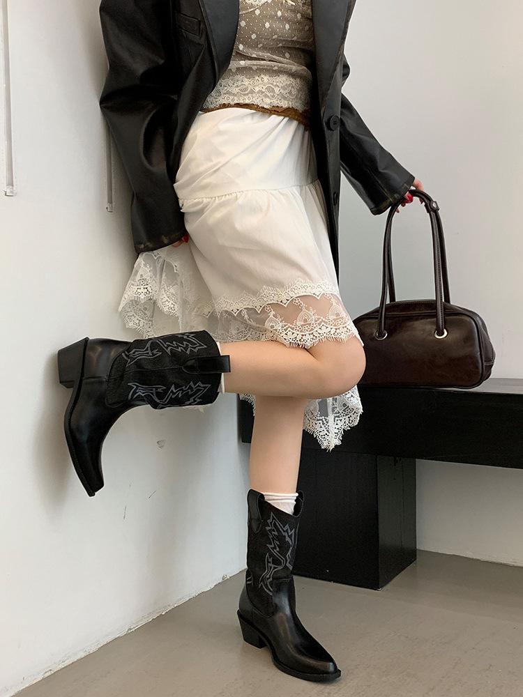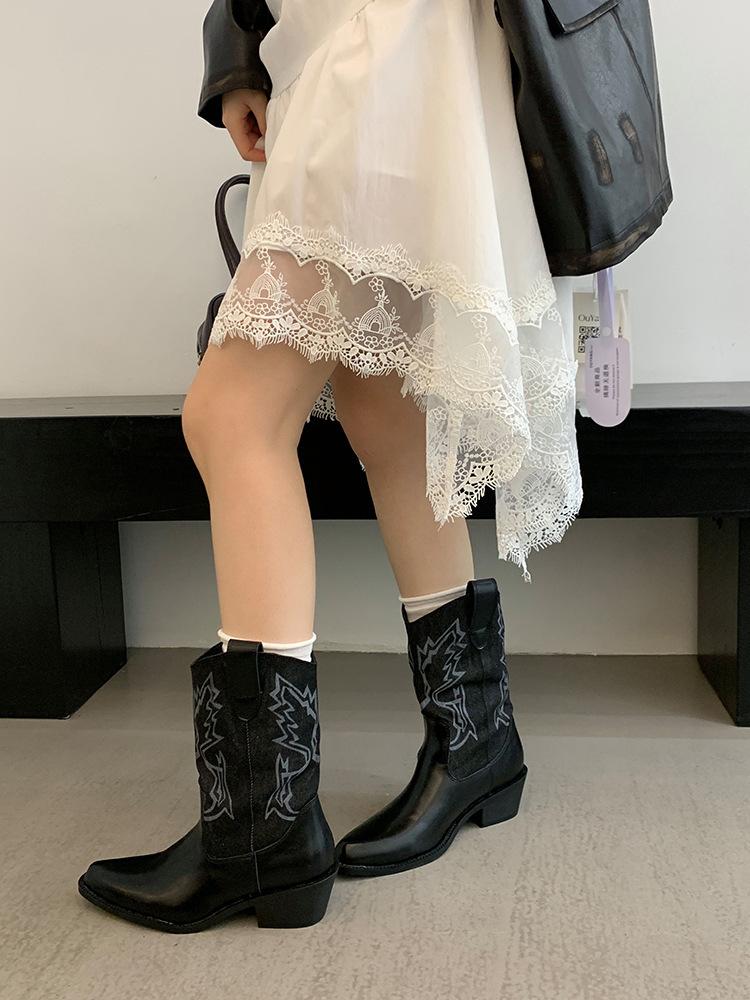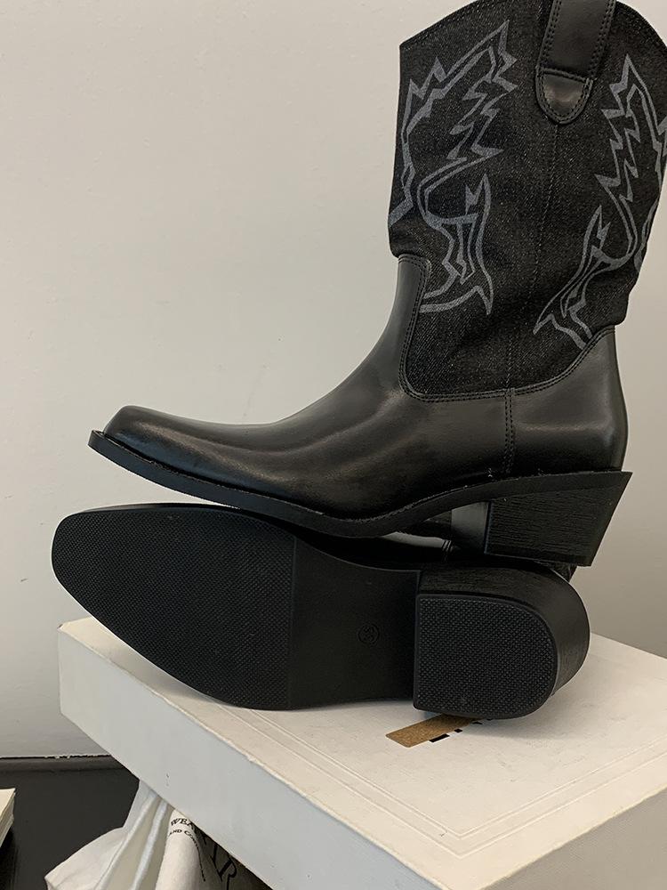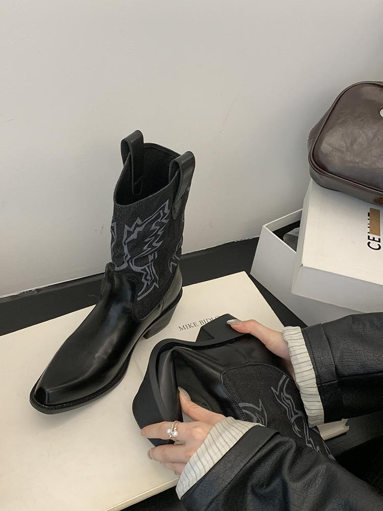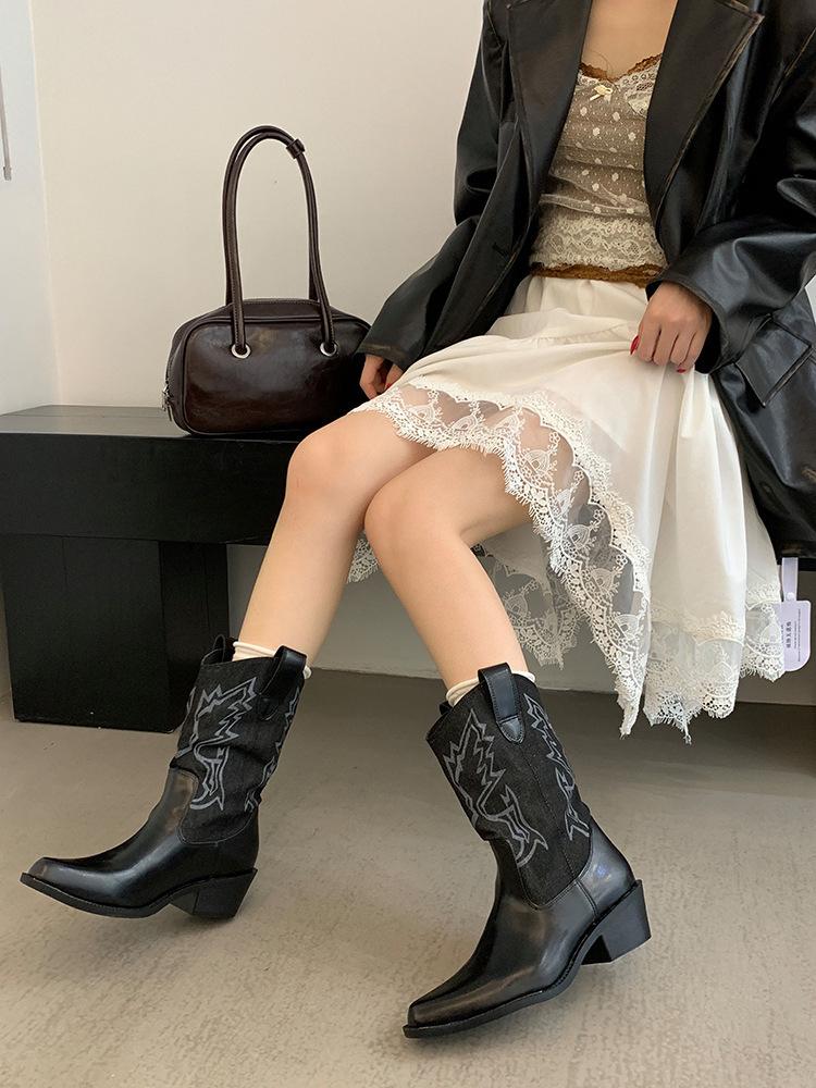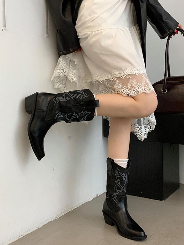 Botines de Mujer 2025 Otoño/Invierno Nuevas Botas de Mujer Tacón Alto Media Caña Botas de Tacón Grueso Vaqueras Occidentales Botas Marrones de Caballero