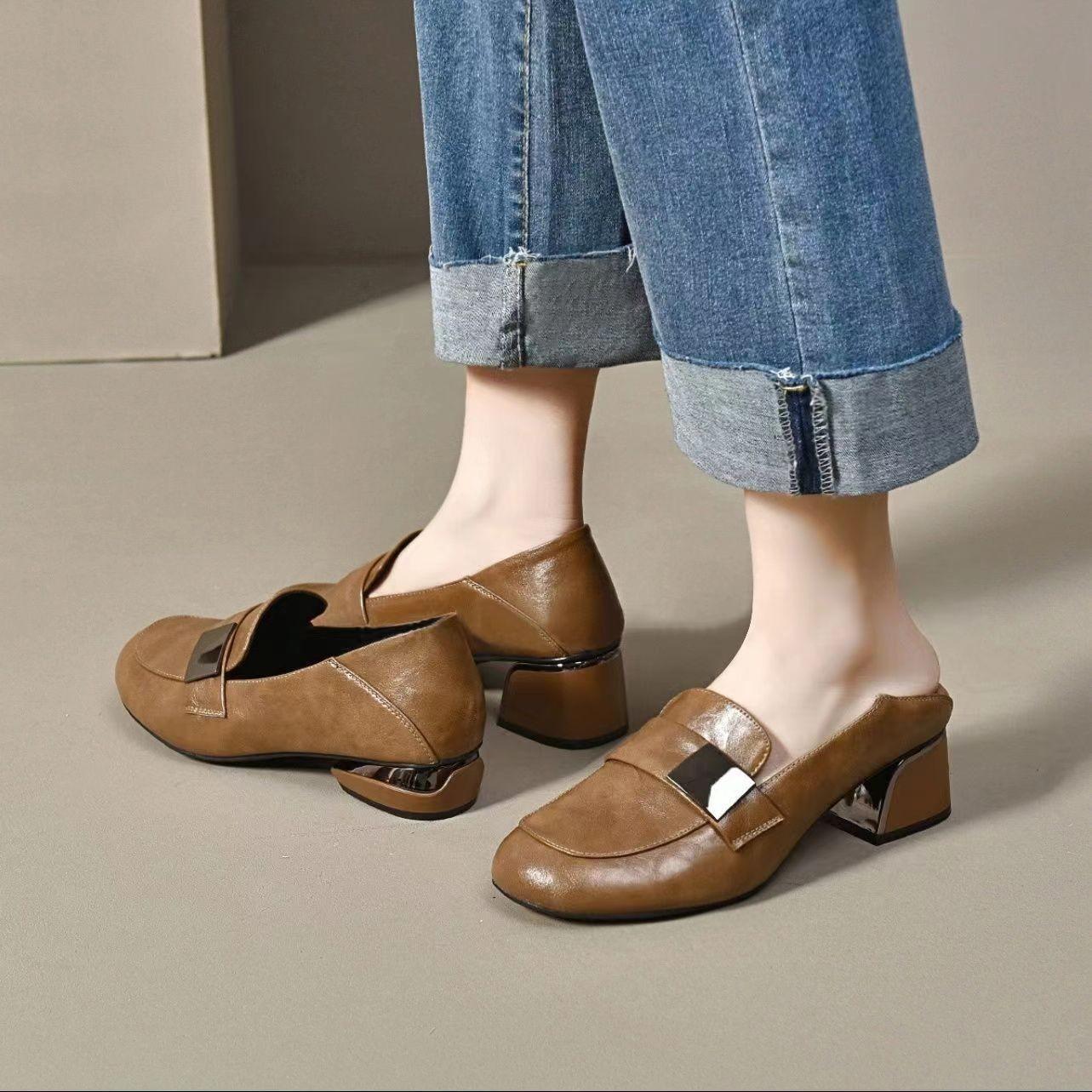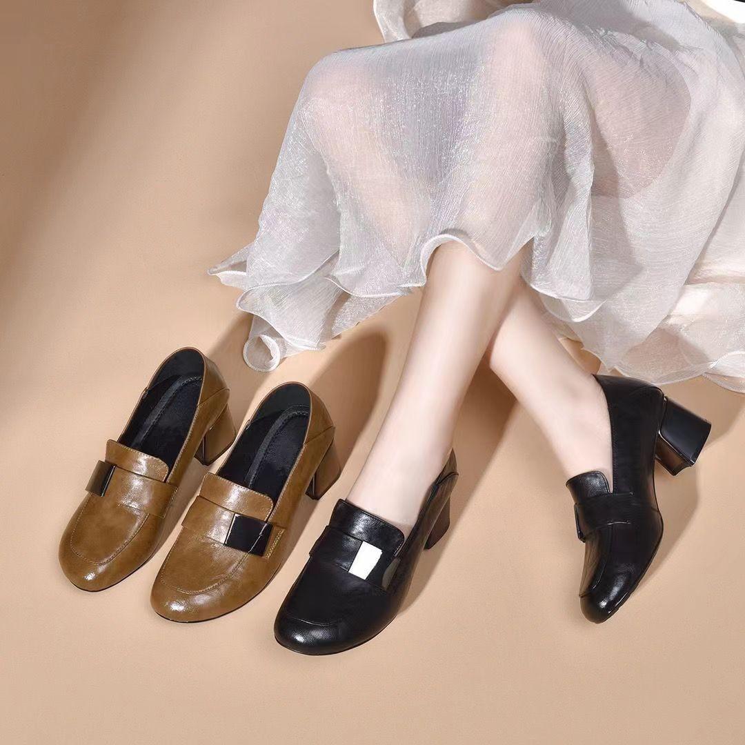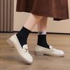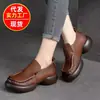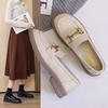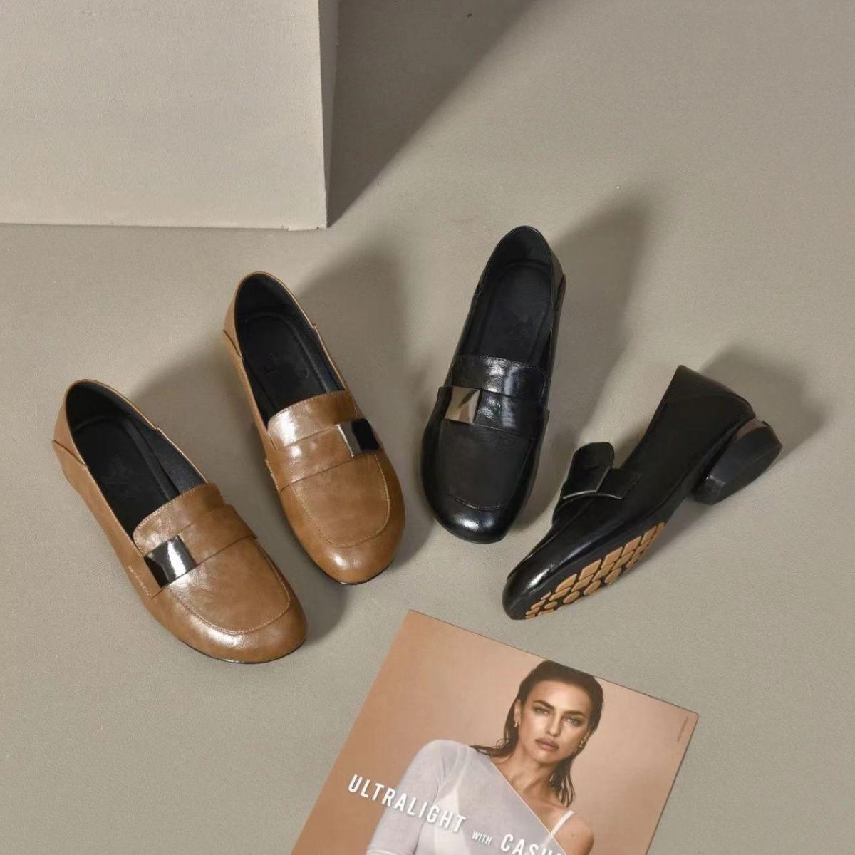 Mocasines de Punta Redonda Zapatos de Mujer Flats 2025 Primavera y Otoño Nuevos Suela Suave Tacón Bajo Zapatos de Cuero Estilo Británico Cuero Suave Flats de Mamá para Mujer