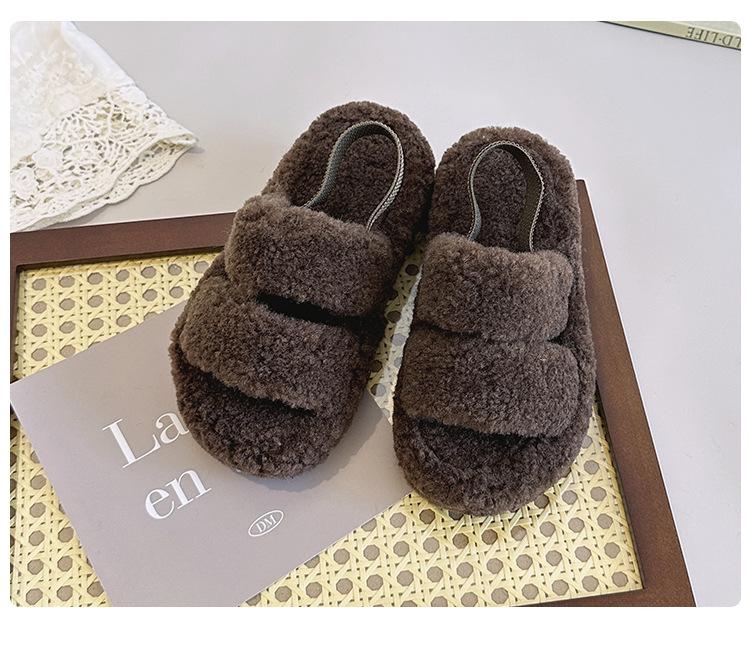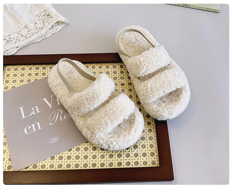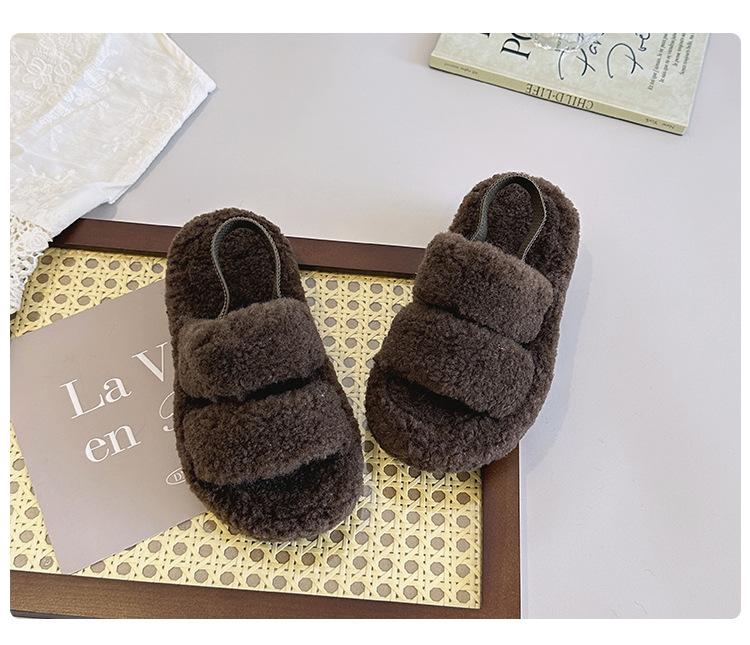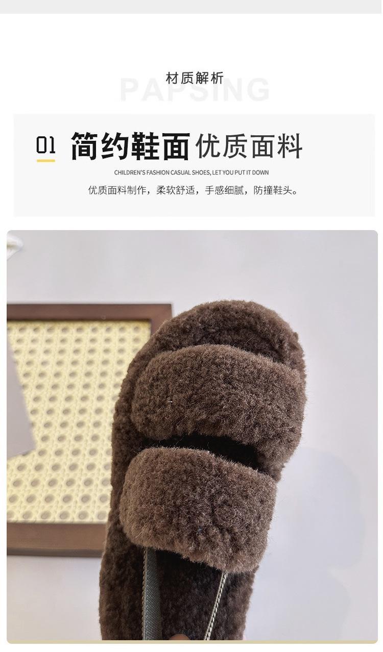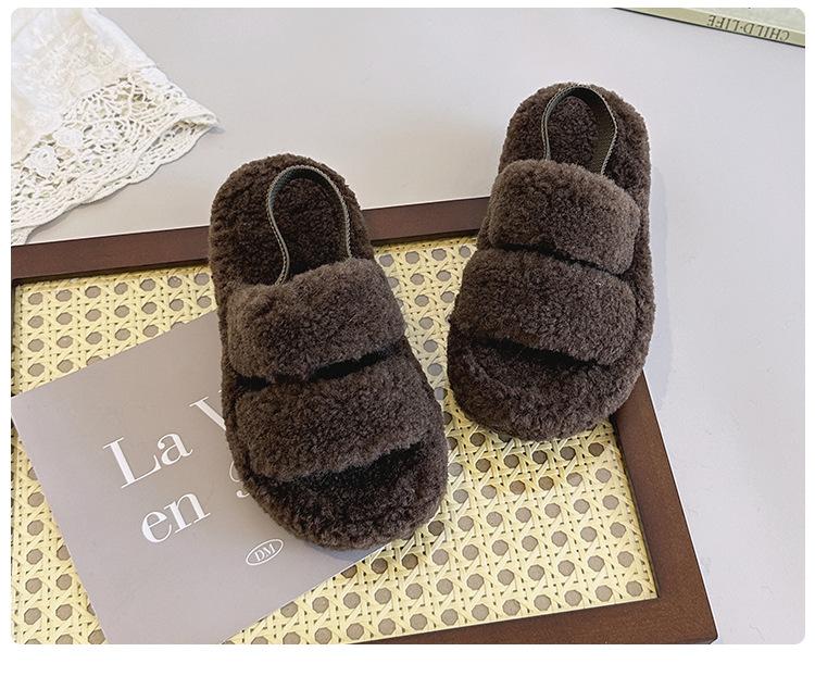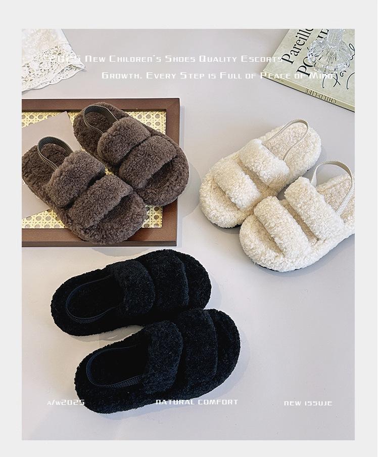 Pantuflas de Piel Simples y Versátiles para Niños Zapatillas de Otoño/Invierno 2025 Nuevas Casuales de Suela Gruesa con Una Tira Pantuflas de Piel para Exterior