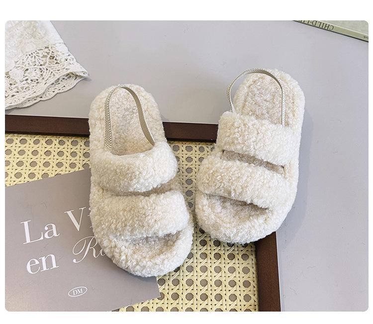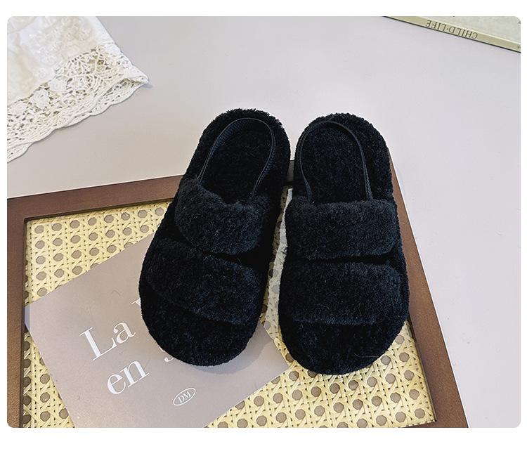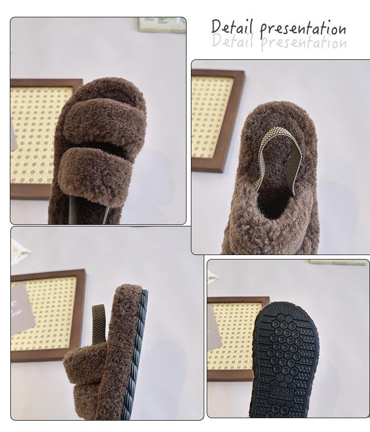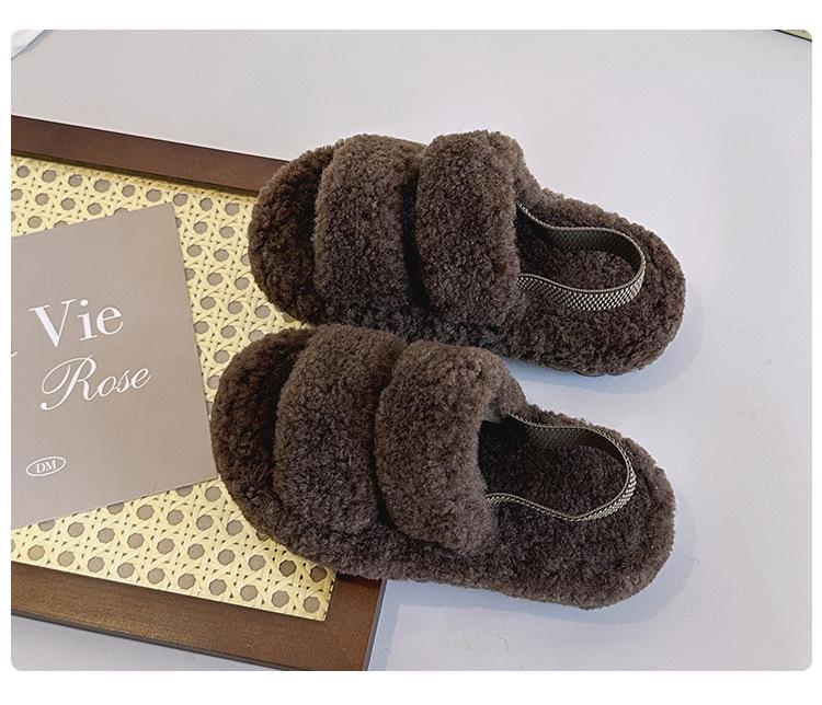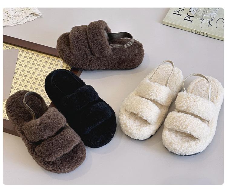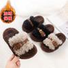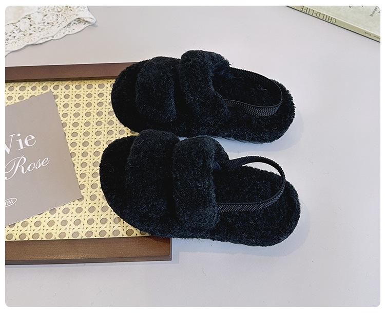 Pantuflas de Piel Simples y Versátiles para Niños Zapatillas de Otoño/Invierno 2025 Nuevas Casuales de Suela Gruesa con Una Tira Pantuflas de Piel para Exterior
