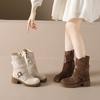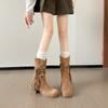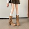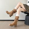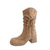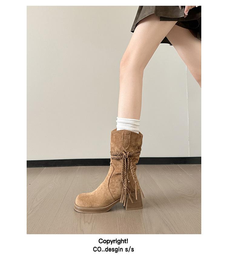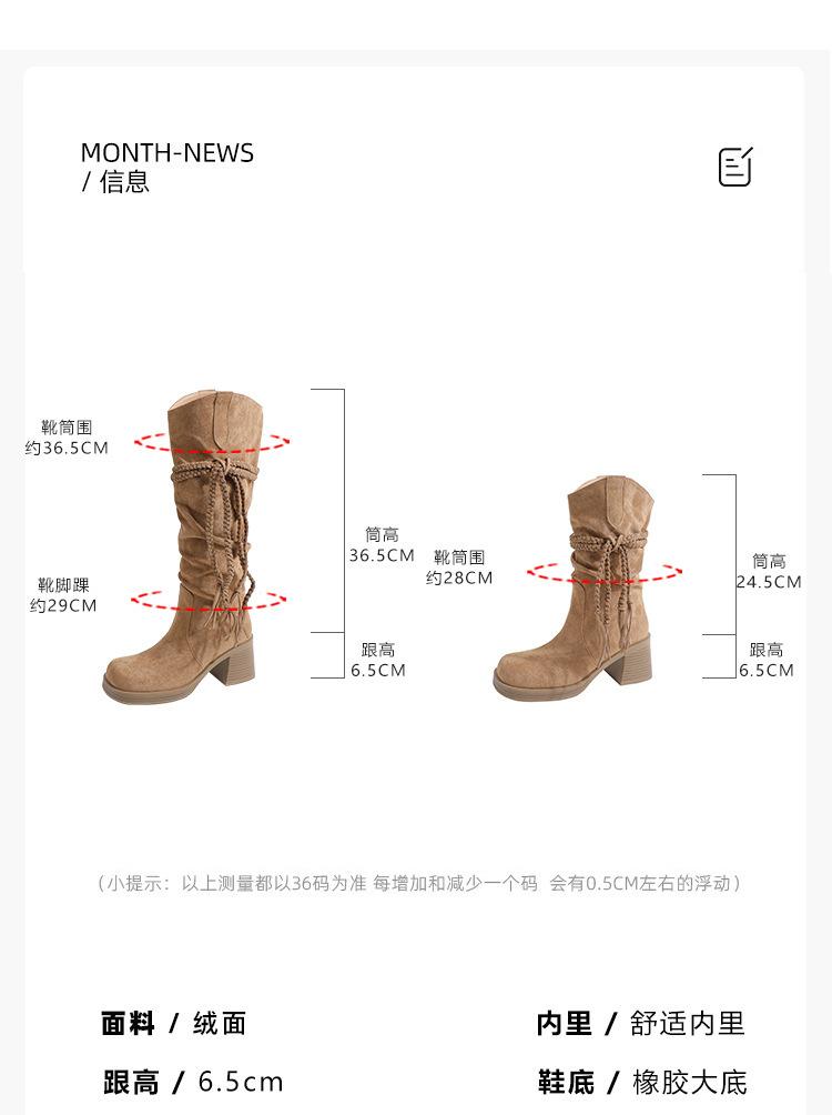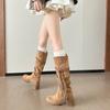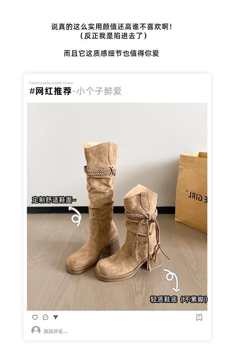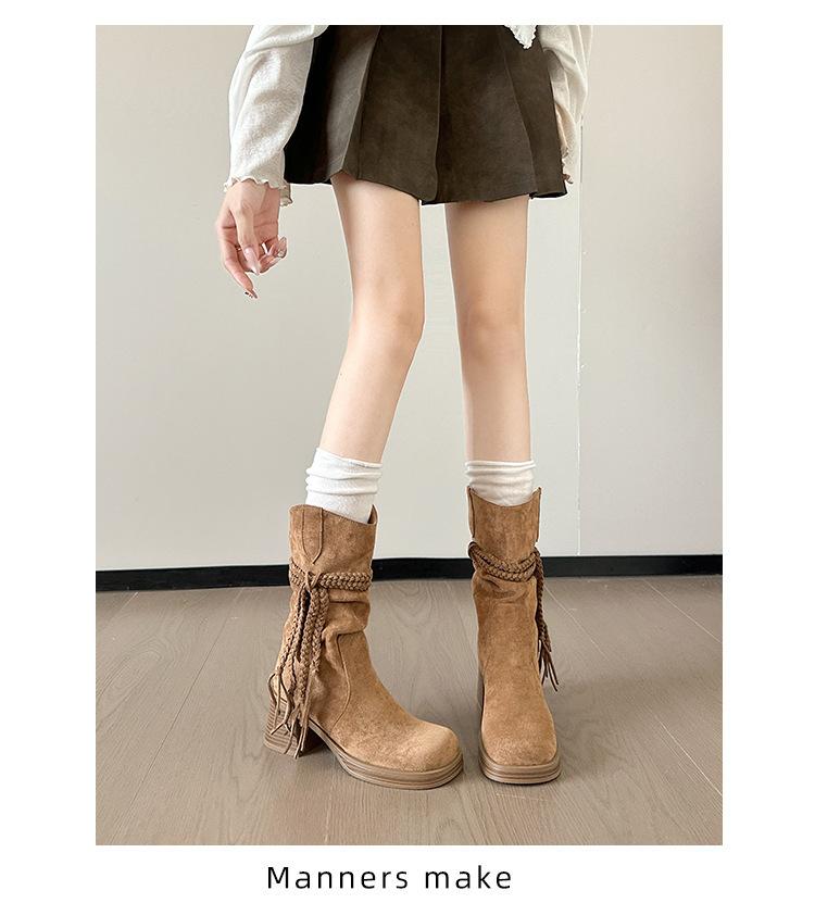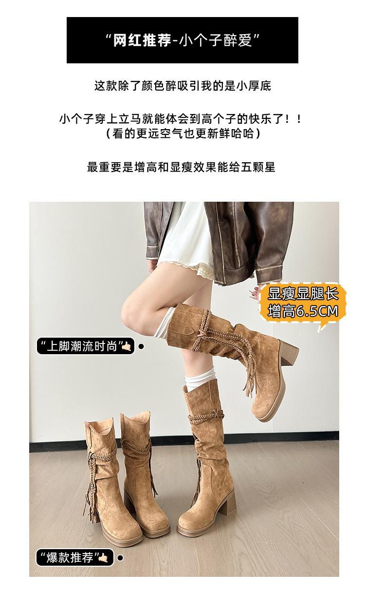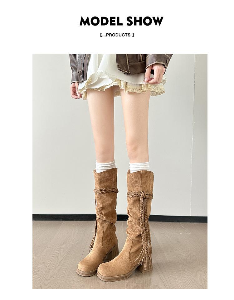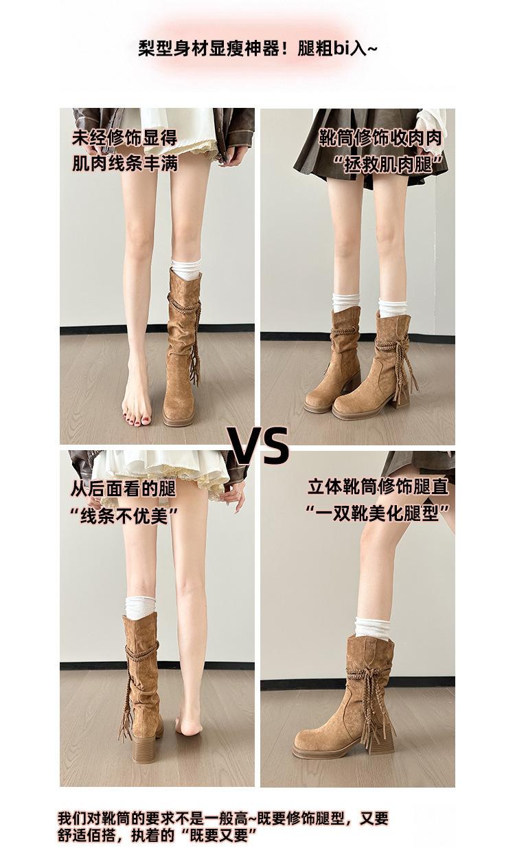 Botas Retro Rectas hasta la Rodilla Botas Tejidas con Borlas Tacón Grueso Adelgazantes de Media Caña Botas Egipcias Otoño/Invierno 2025 Nuevo Apilado Adelgazante