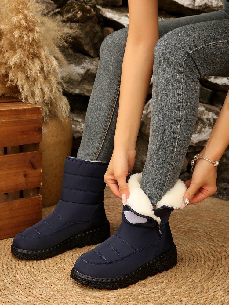 Invierno Nuevo Tejido Media Pantorrilla Botas de Nieve Mujer Botas Casuales Cortas Impermeables de Algodón de Caña Alta Más Terciopelo Talla Grande Botas de Algodón wish