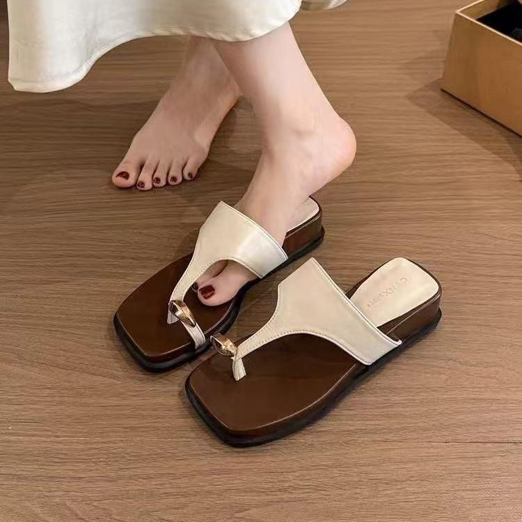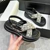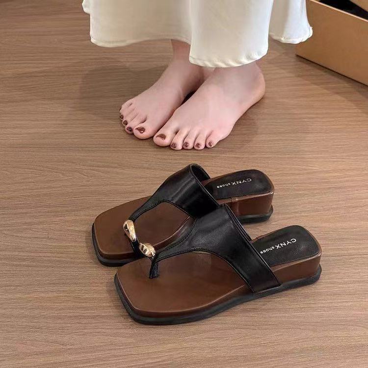 Sandalias y pantuflas de dedo con plataforma gruesa para aumentar la altura para mujer, verano para exteriores, nuevo estilo 2025, combinan con falda, tacón de cuña, sandalias de playa, chanclas