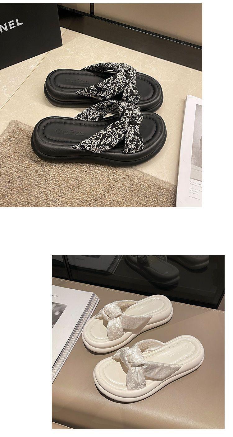 Sandalias de Playa para Exterior de Suela Gruesa de Venta Caliente, Sandalias Ligeras de Una Tira, Moda Francesa, Pantuflas Versátiles, Ropa de Exterior para Mujer, Otoño 2025 Nuevo