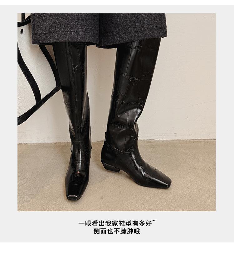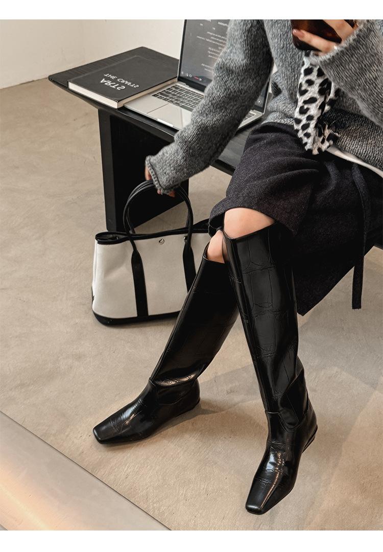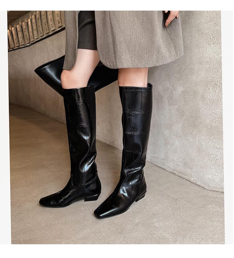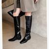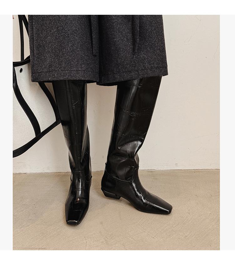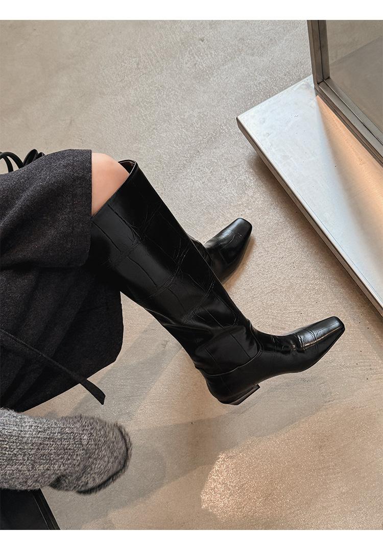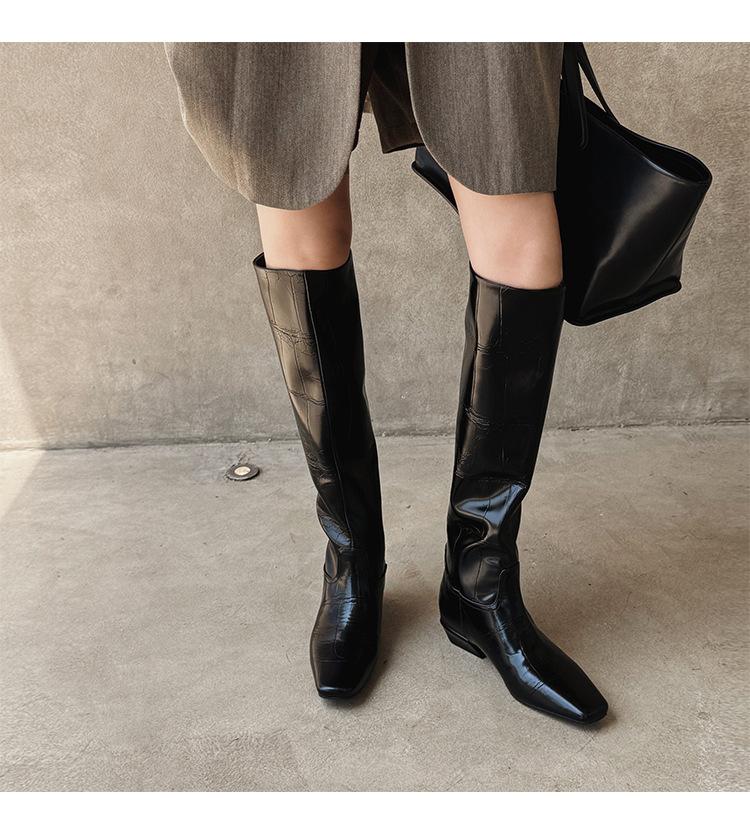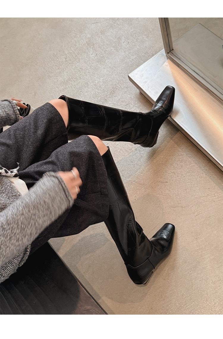 Botas Altas de 3CM Estilo Lady a la Moda Minimalista Temperamento 2025 Otoño/Invierno Nuevo Punta Cuadrada Tacón Bajo Sobre la Rodilla Botas de Caballero