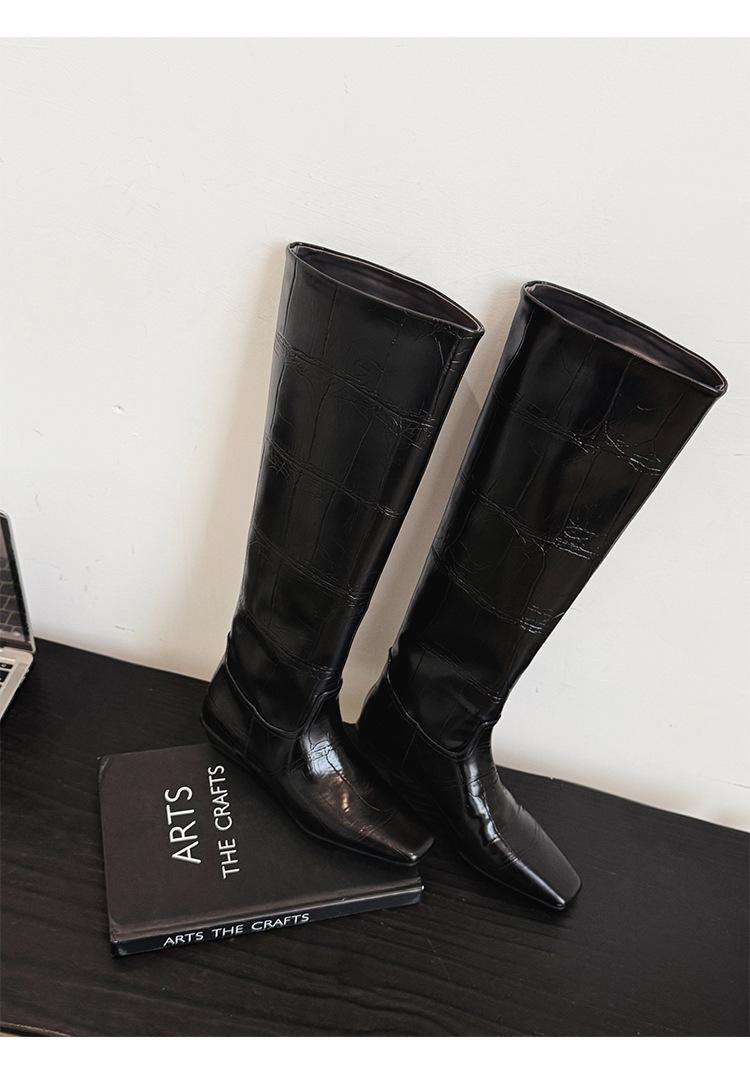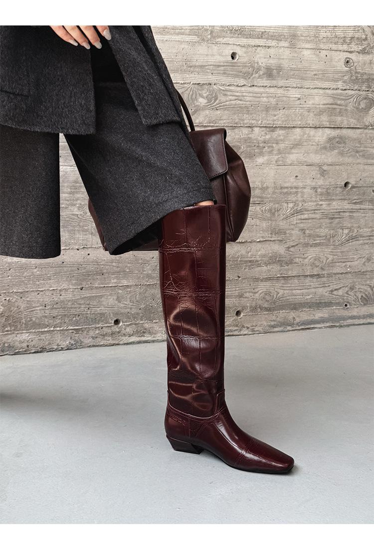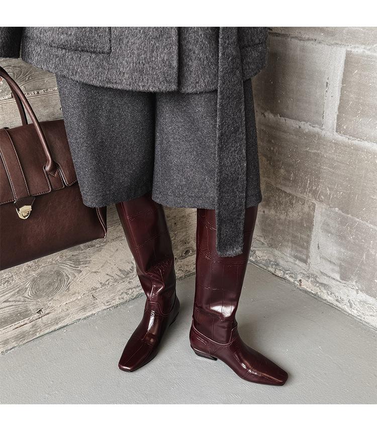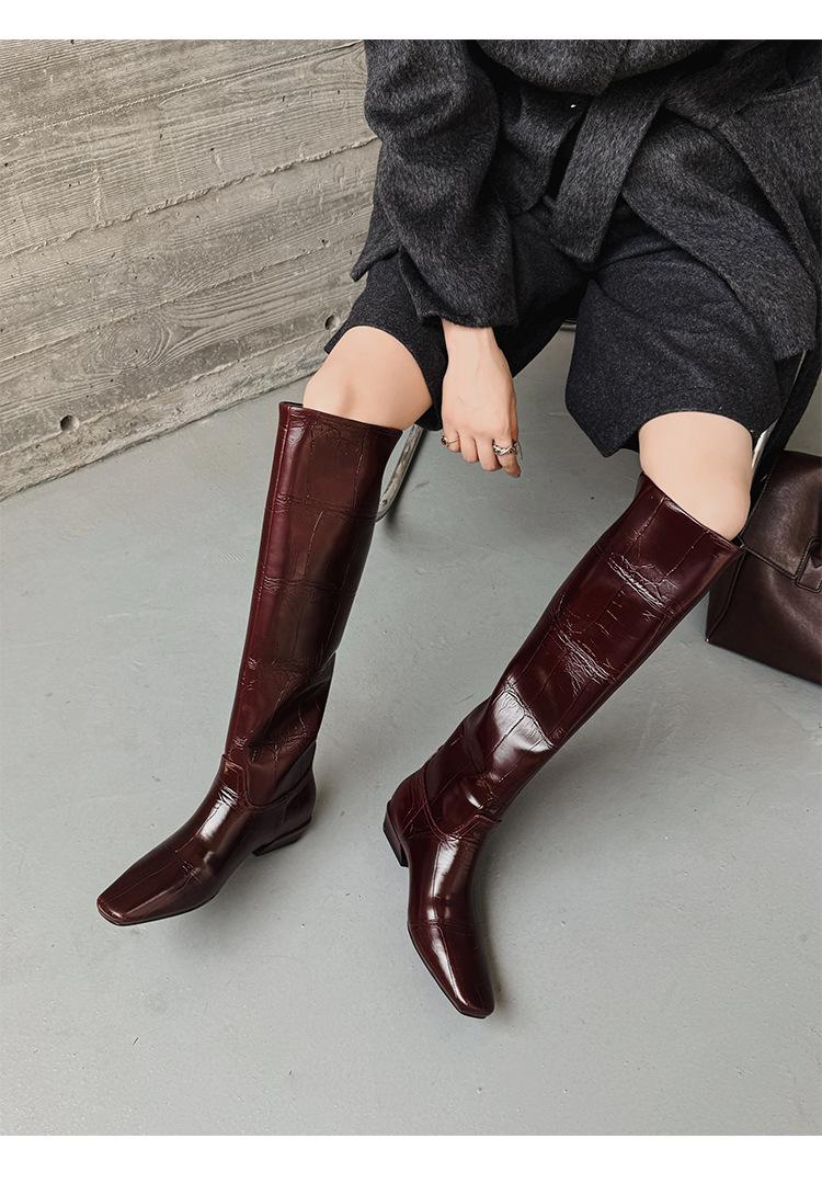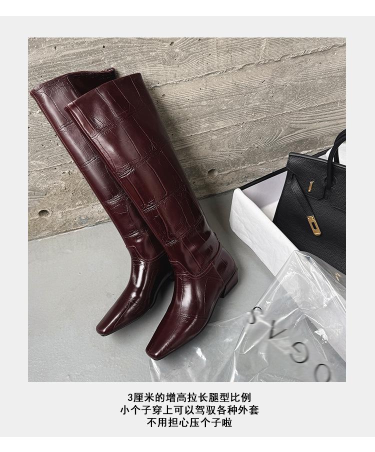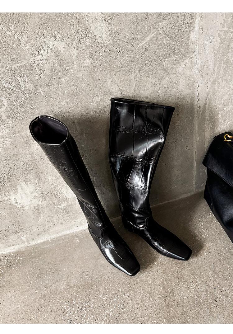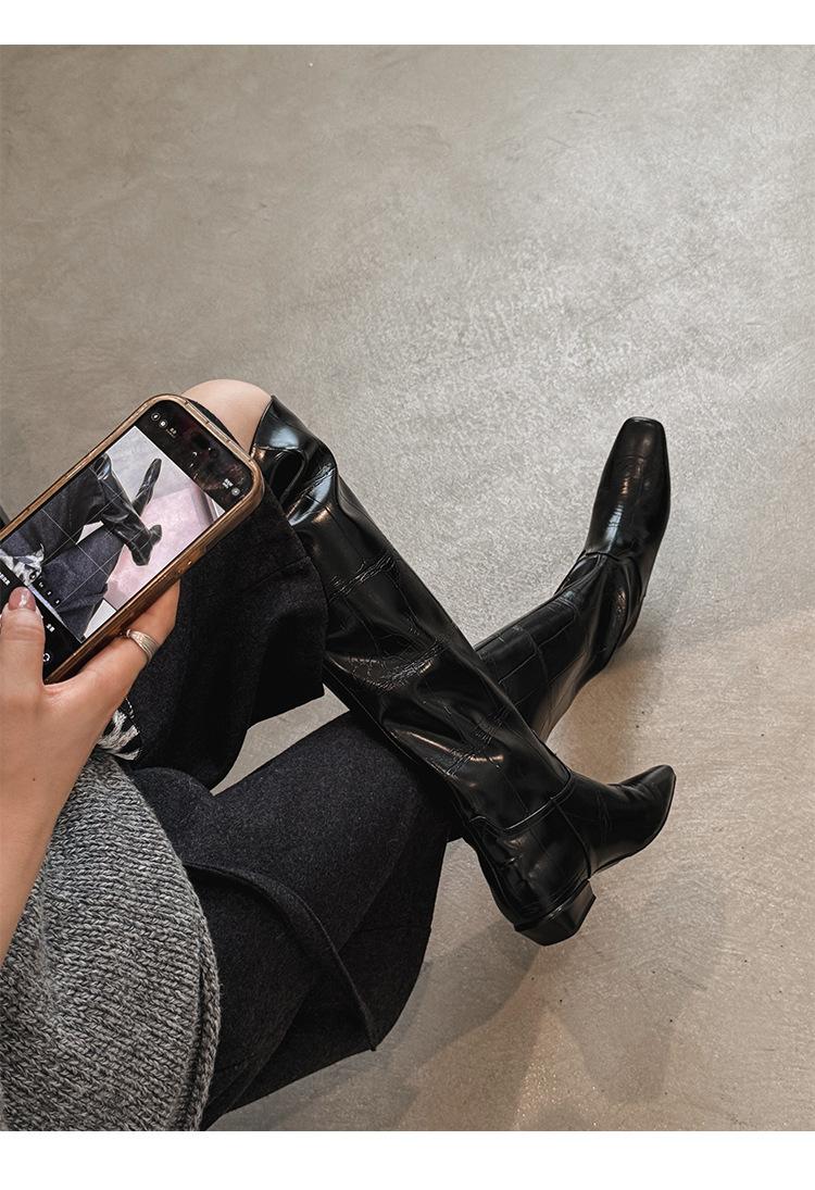Botas Altas de 3CM Estilo Lady a la Moda Minimalista Temperamento 2025 Otoño/Invierno Nuevo Punta Cuadrada Tacón Bajo Sobre la Rodilla Botas de Caballero