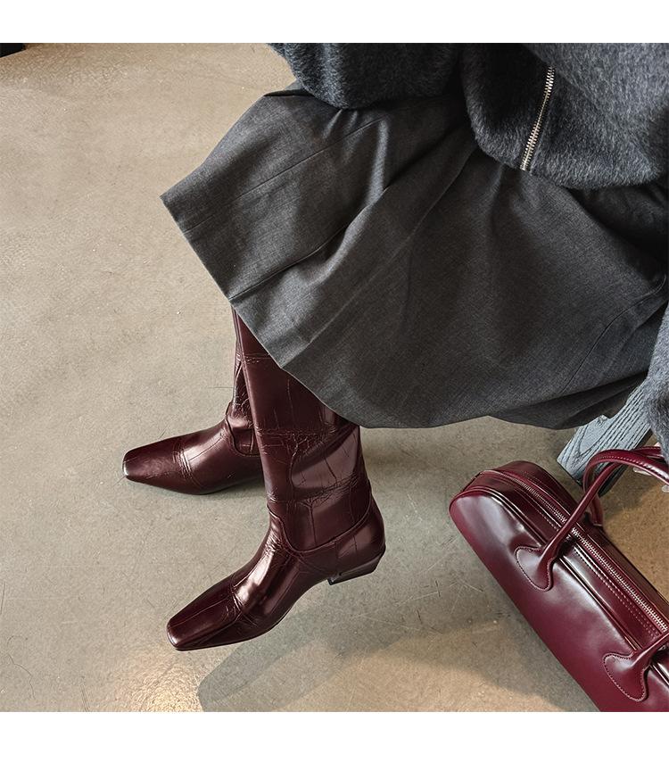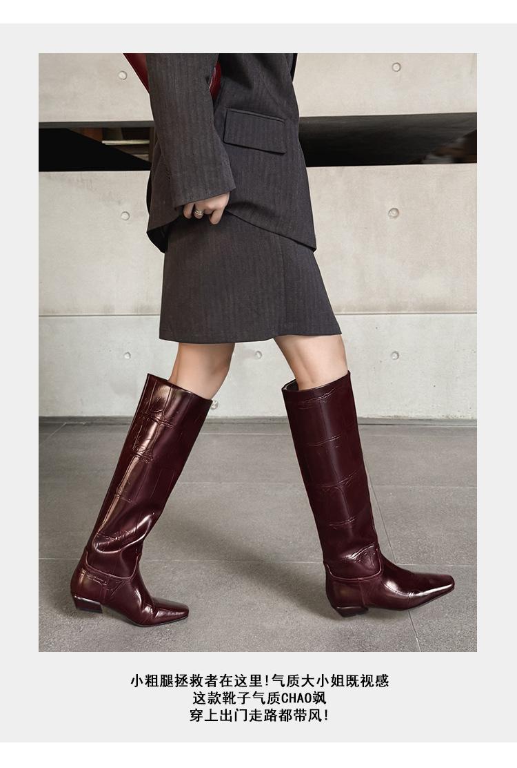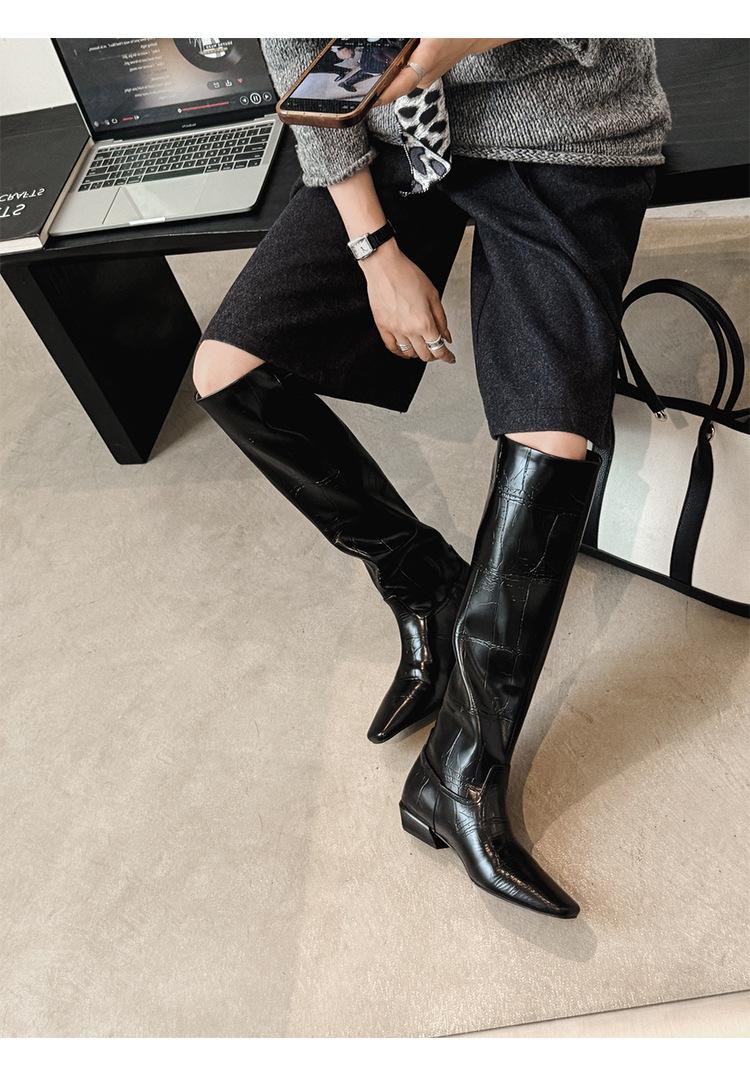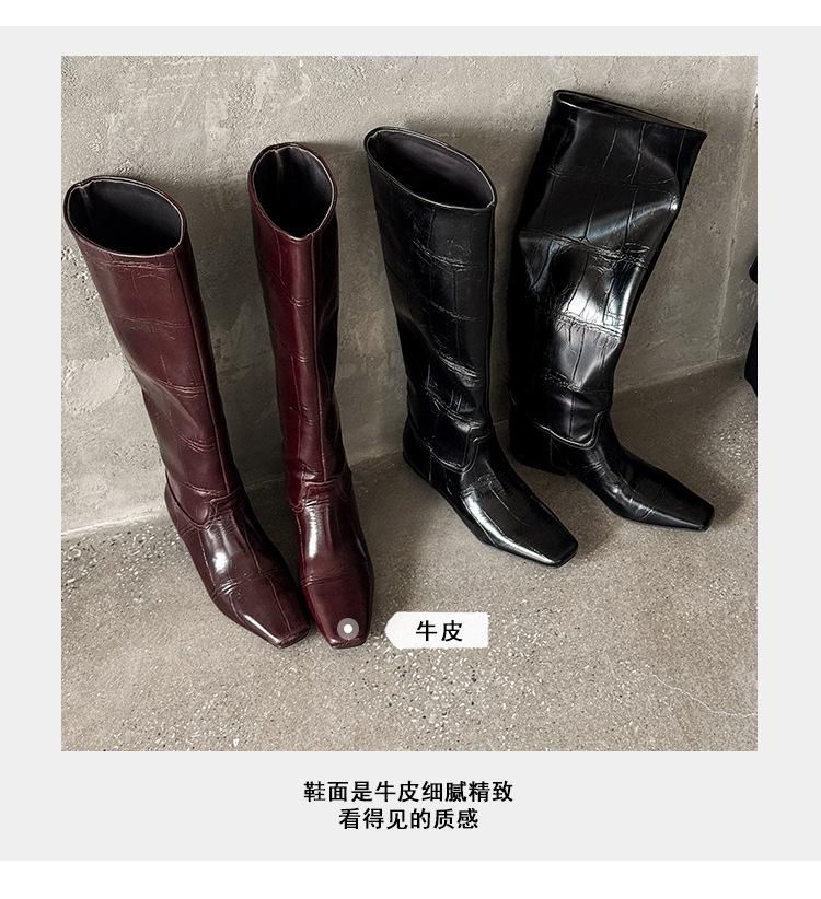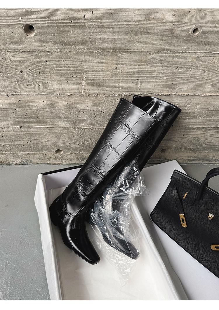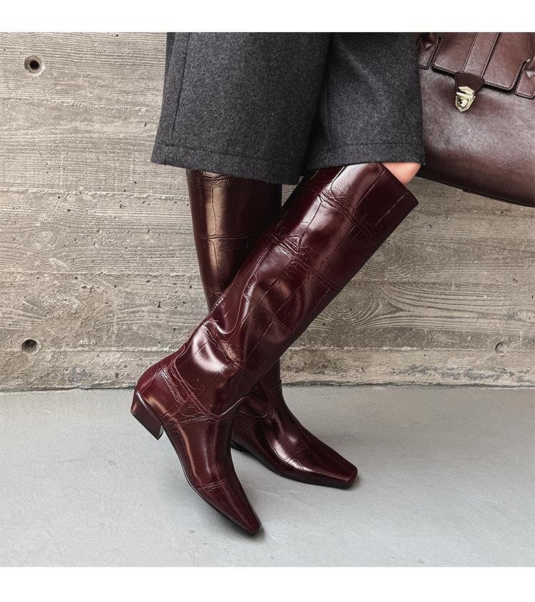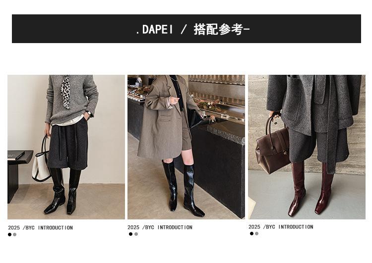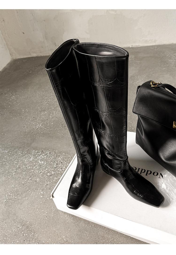 Botas Altas de 3CM Estilo Lady a la Moda Minimalista Temperamento 2025 Otoño/Invierno Nuevo Punta Cuadrada Tacón Bajo Sobre la Rodilla Botas de Caballero