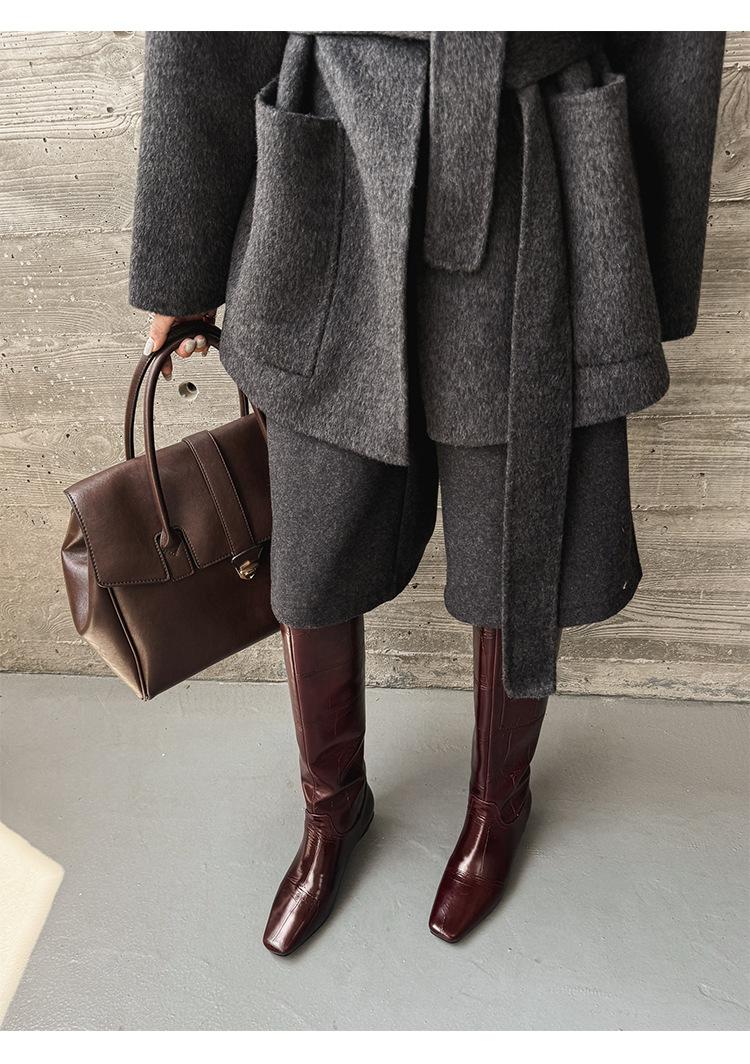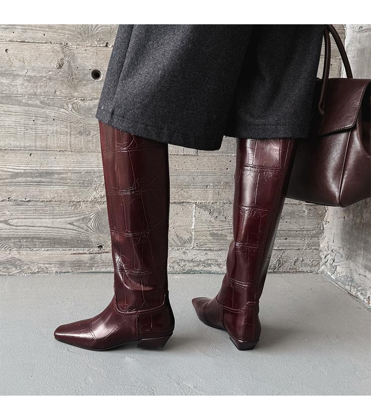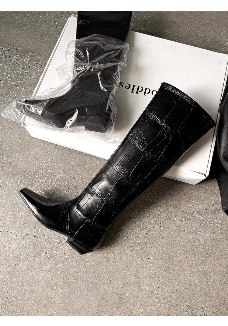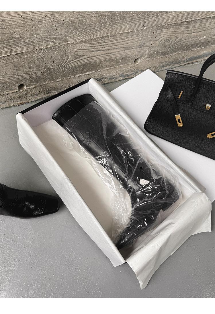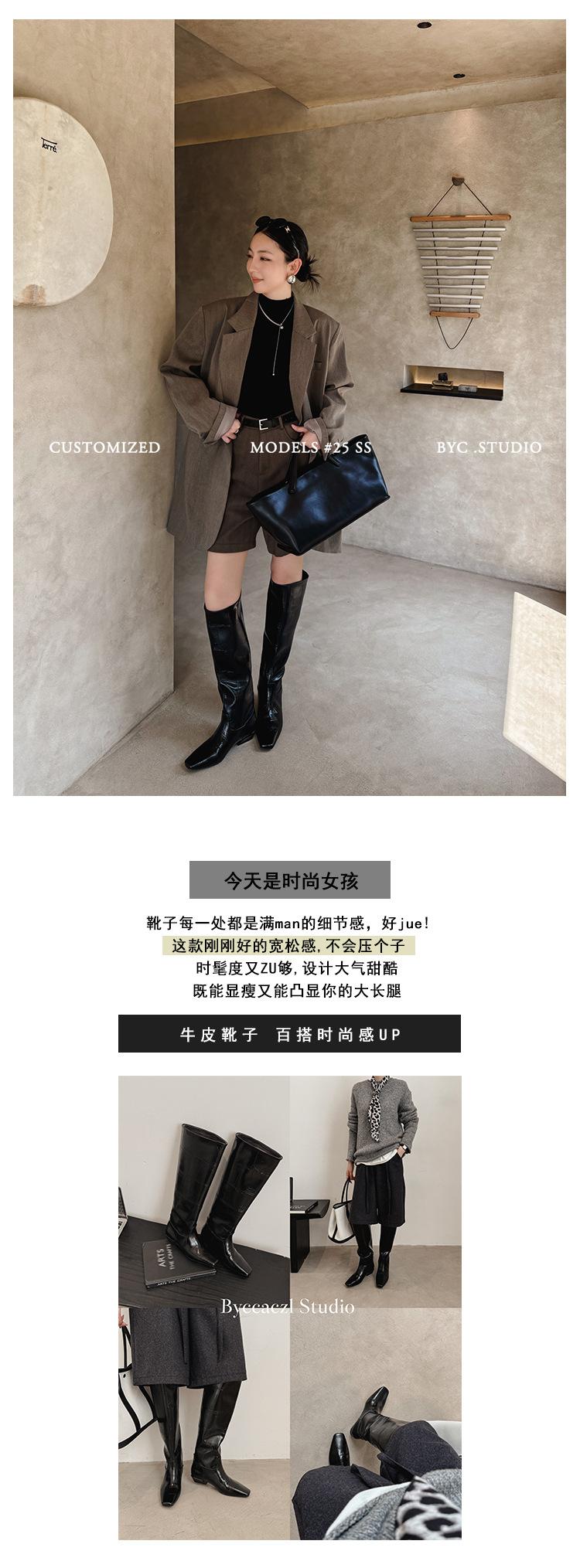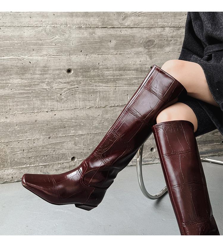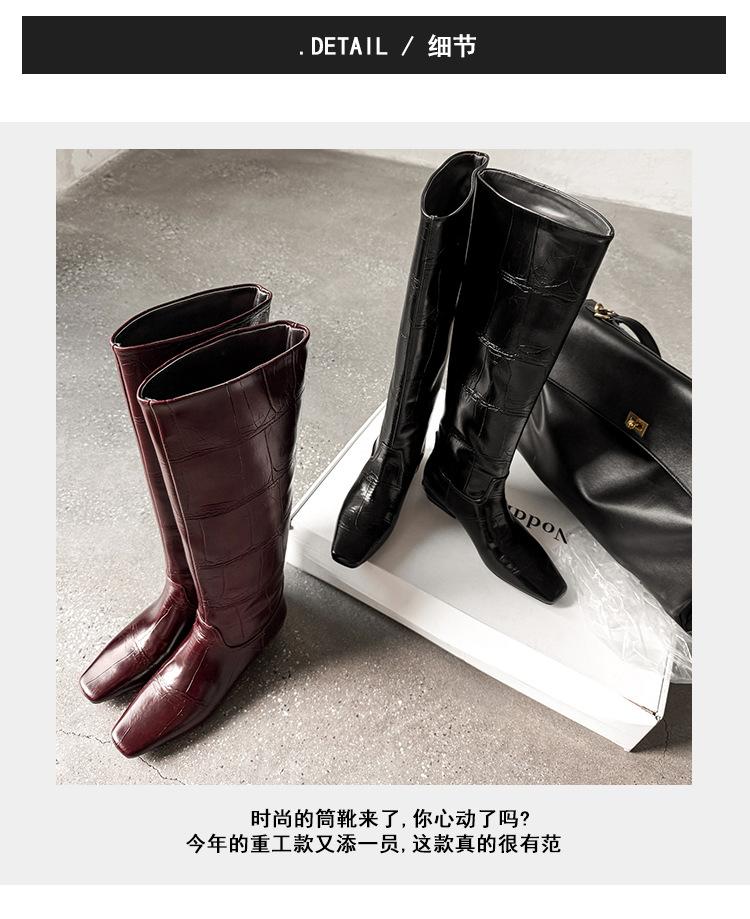 Botas Altas de 3CM Estilo Lady a la Moda Minimalista Temperamento 2025 Otoño/Invierno Nuevo Punta Cuadrada Tacón Bajo Sobre la Rodilla Botas de Caballero