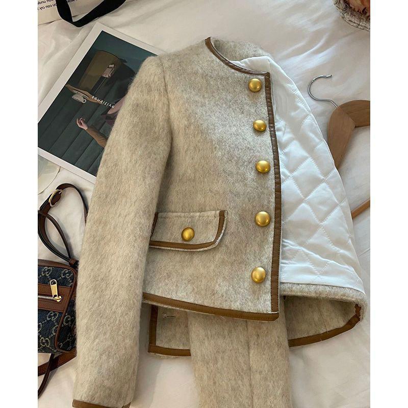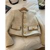 Abrigo corto gris estilo Chanel para mujer de otoño e invierno, abrigo pequeño de moda estilo coreano acolchado de algodón grueso para mujer