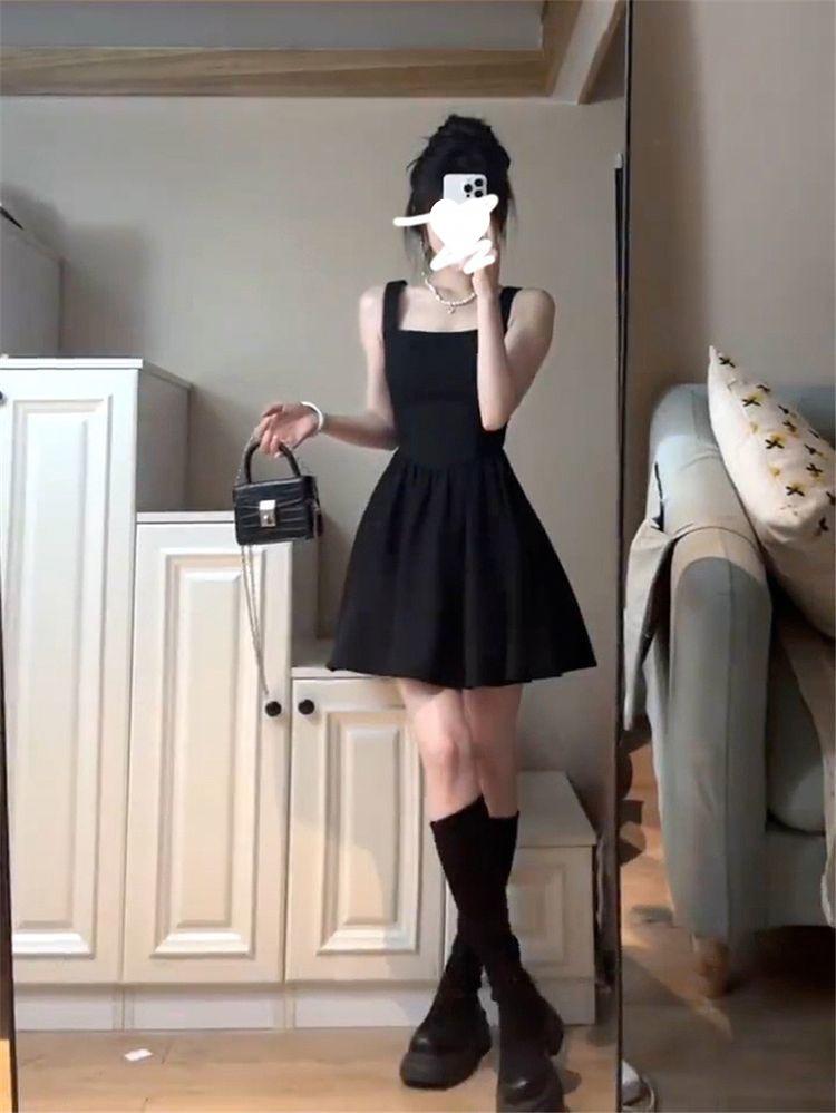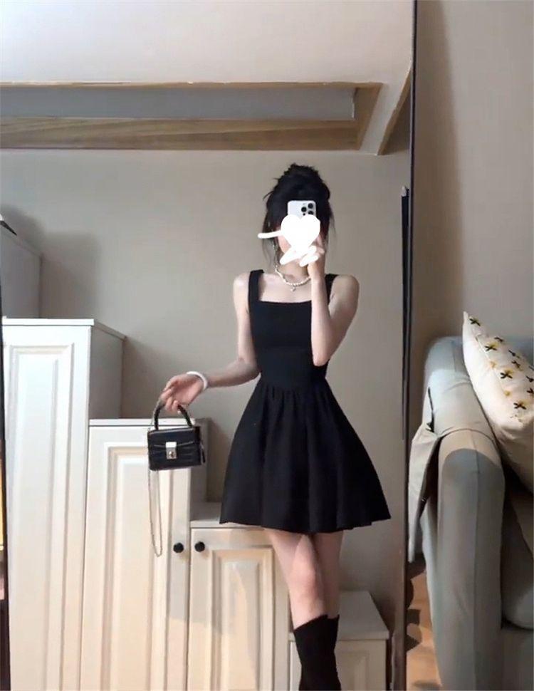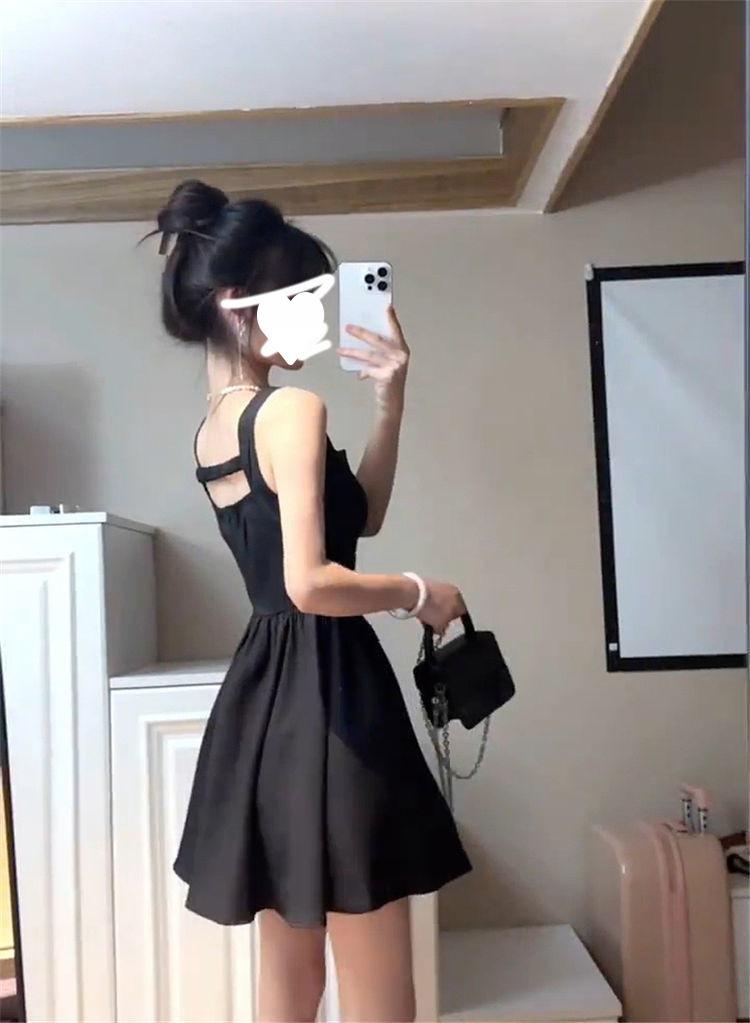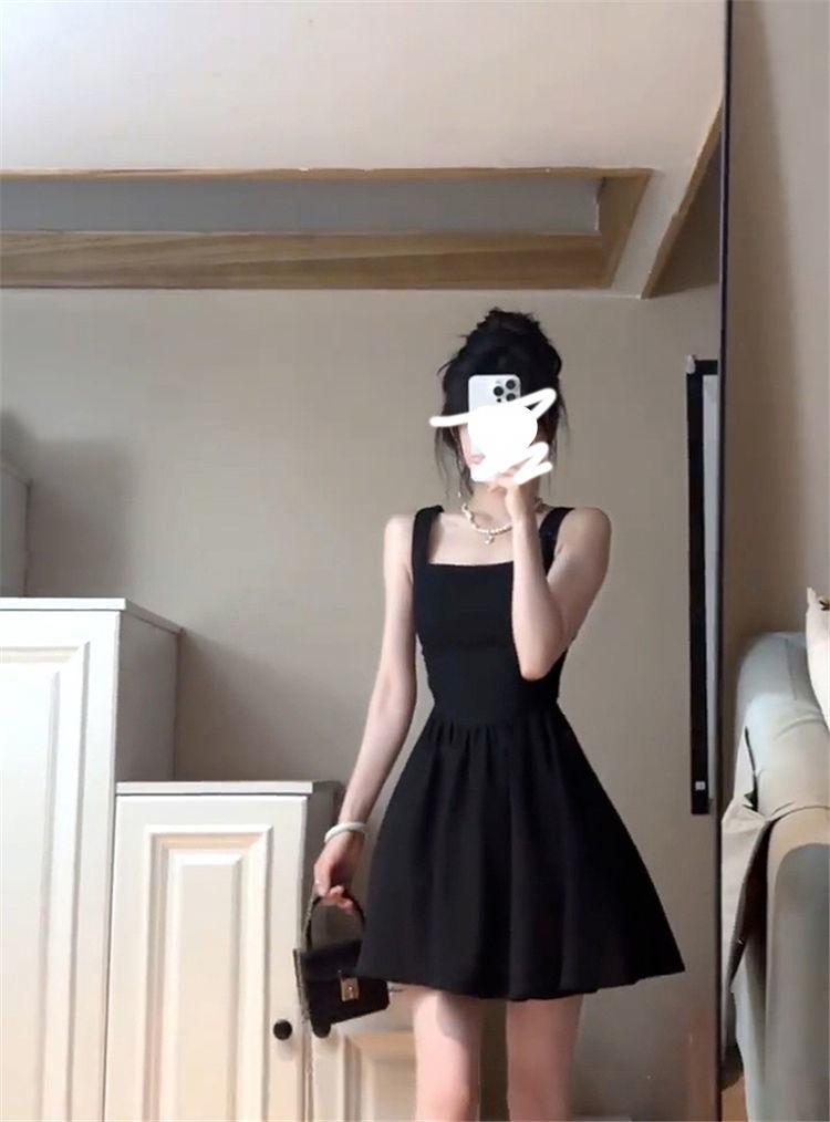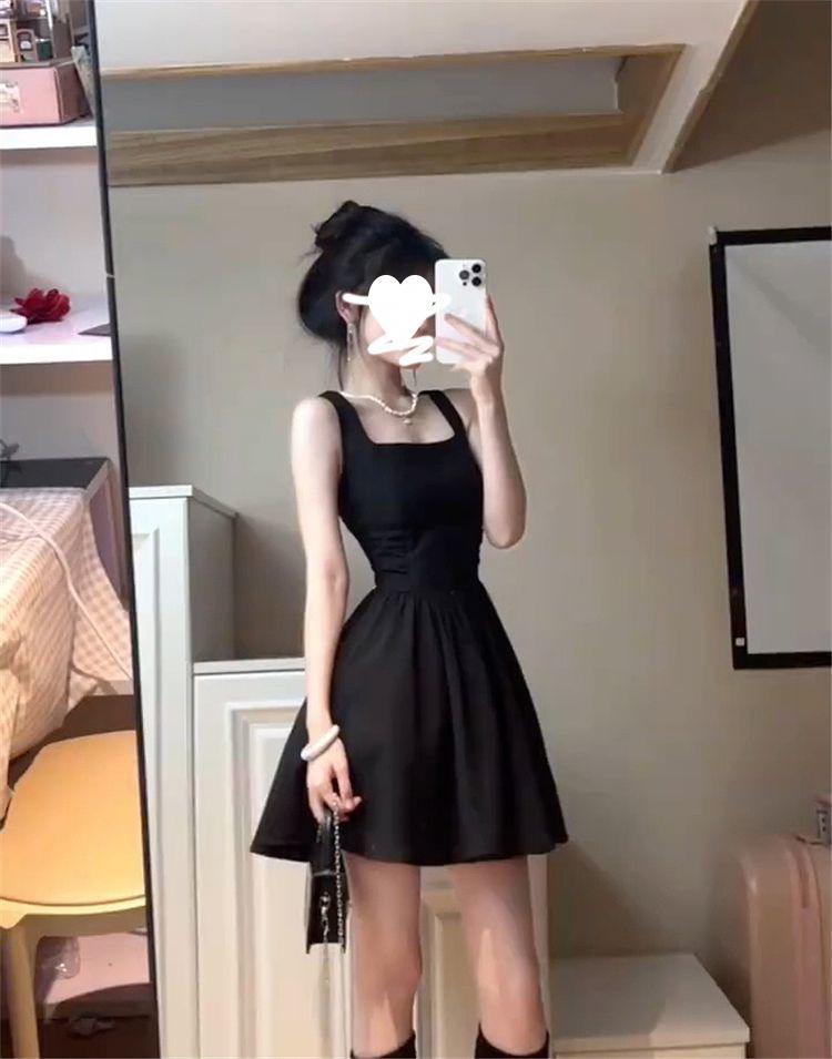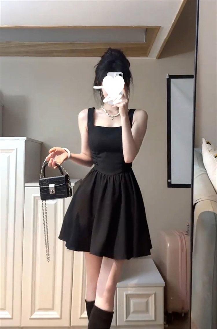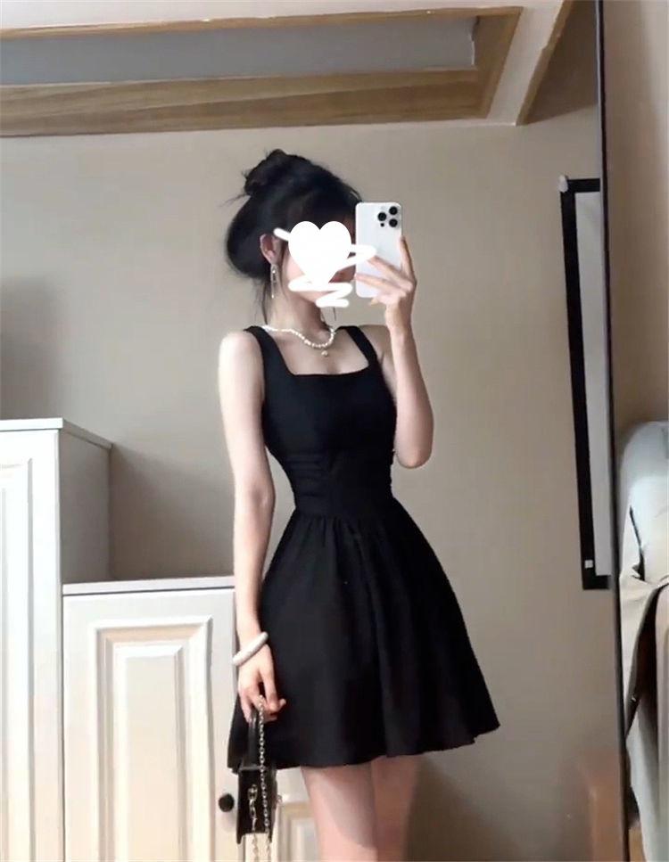 Vestido Negro de Tirantes Estilo Hepburn Francés de Alta Gama Verano 2024 Nueva Llegada Falda Elegante Pequeña para Mujer