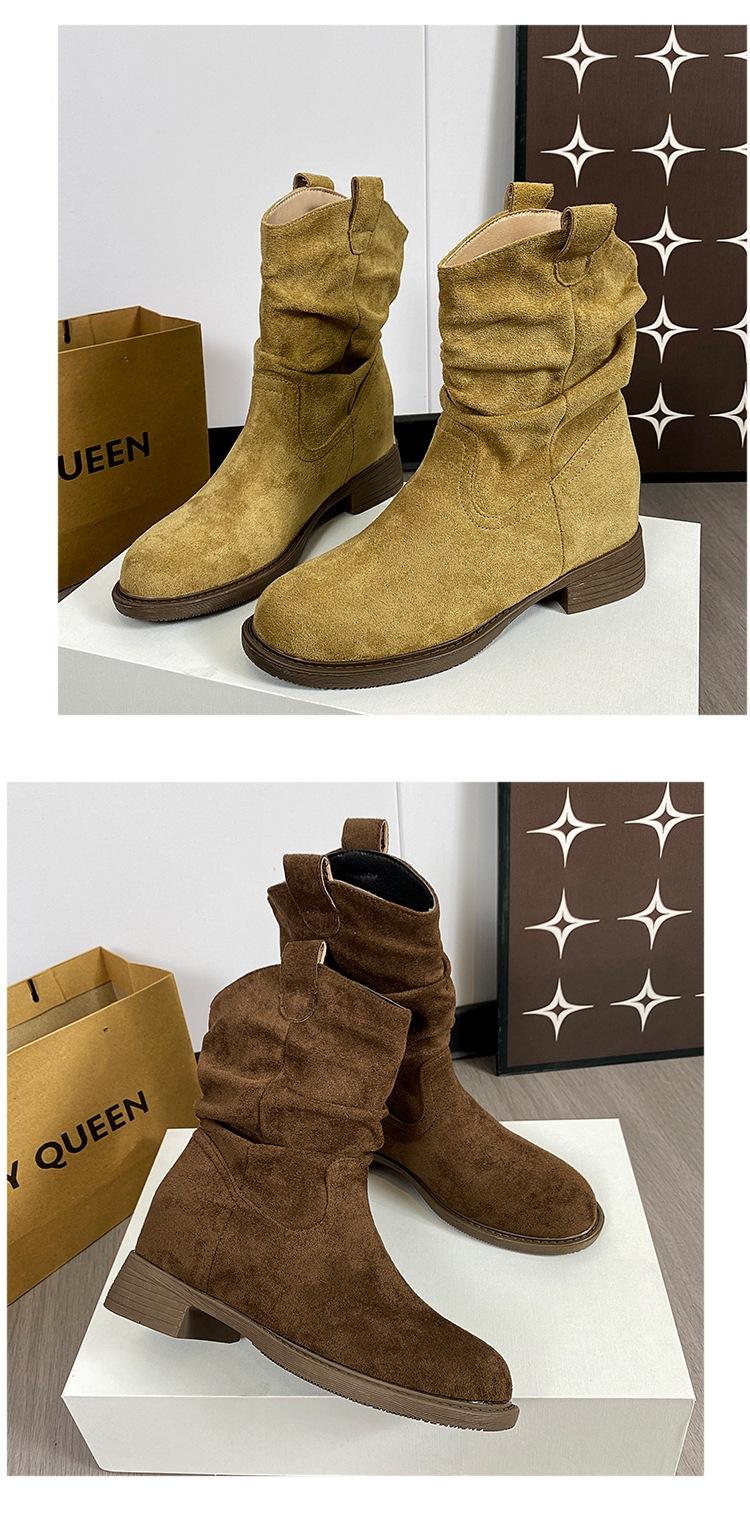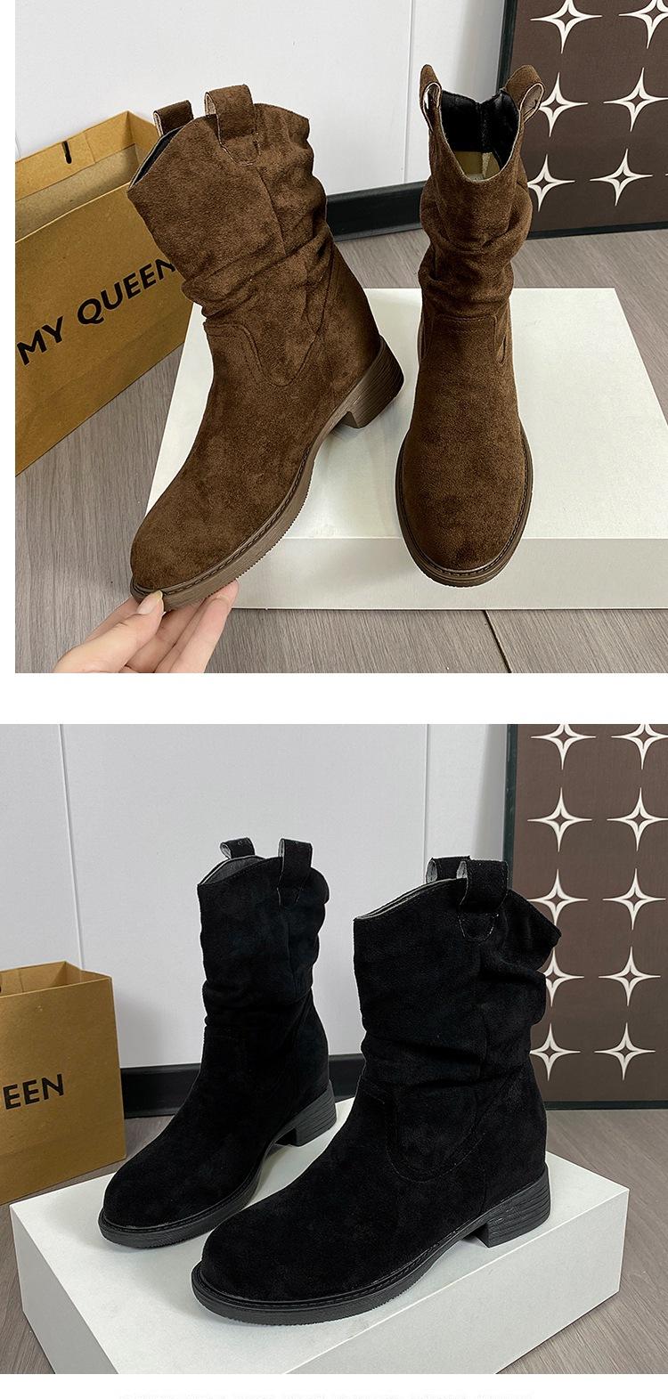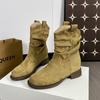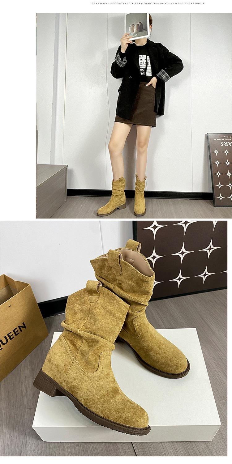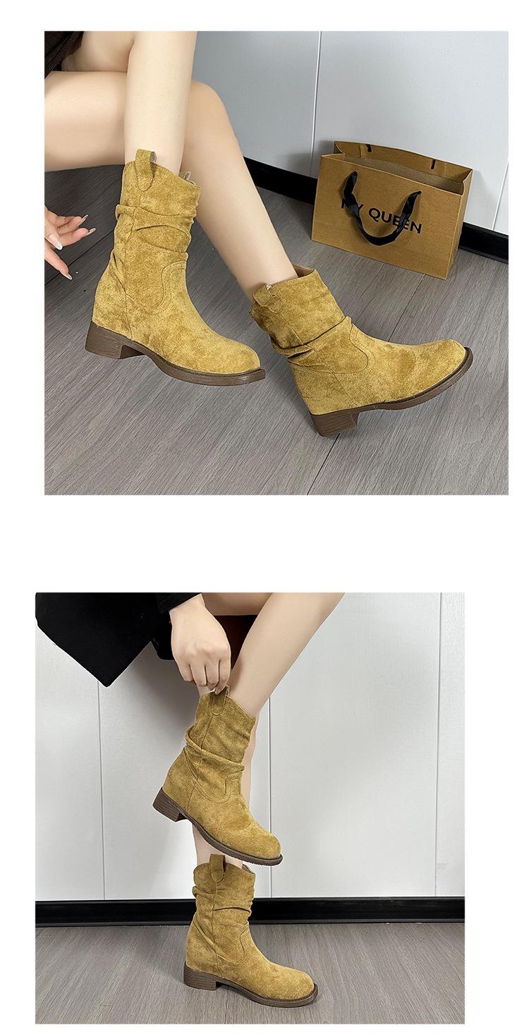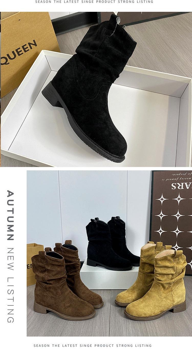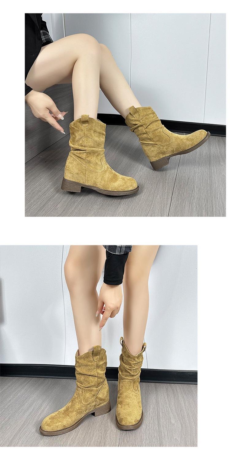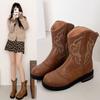 Botines Retro Escarchados Vaquero Occidental 2025 Nuevo Otoño Media Pantorrilla Botas Martin Botas Individuales Tacón Bajo Tacón Apilado Mujer