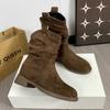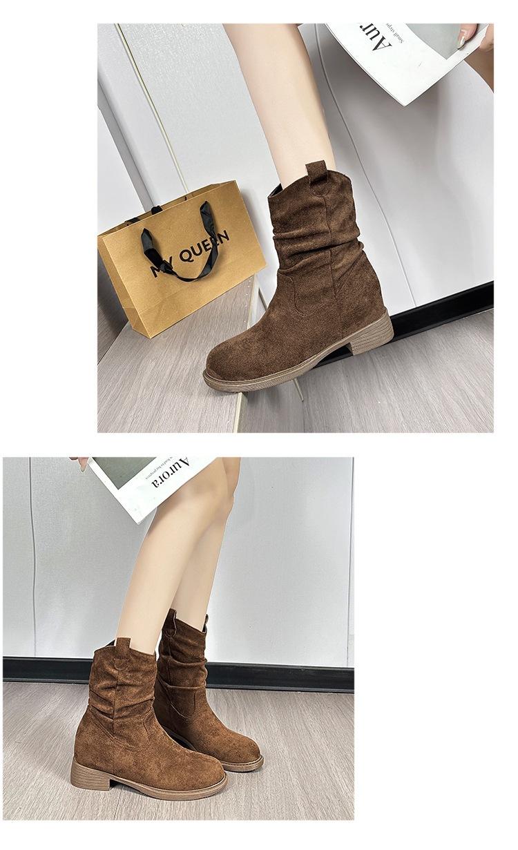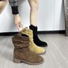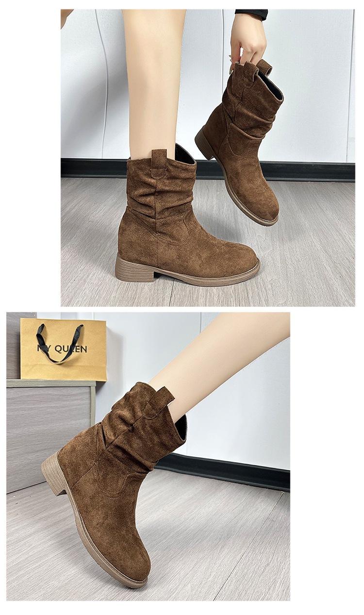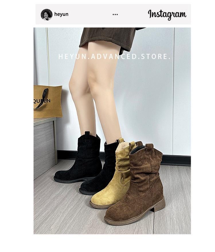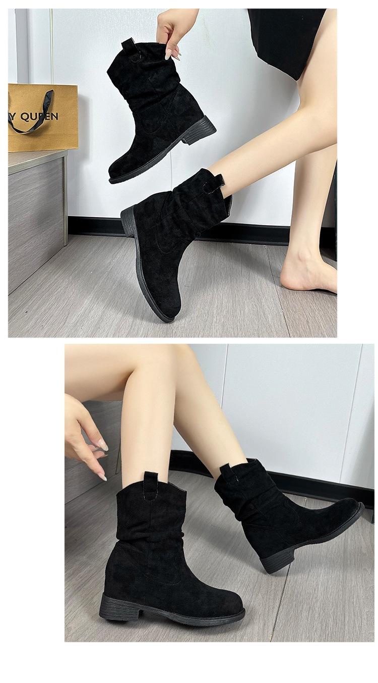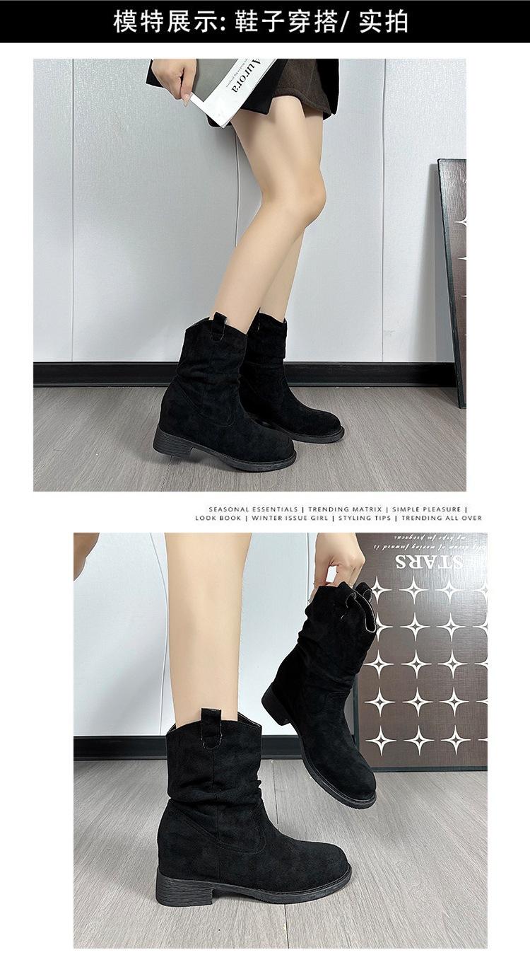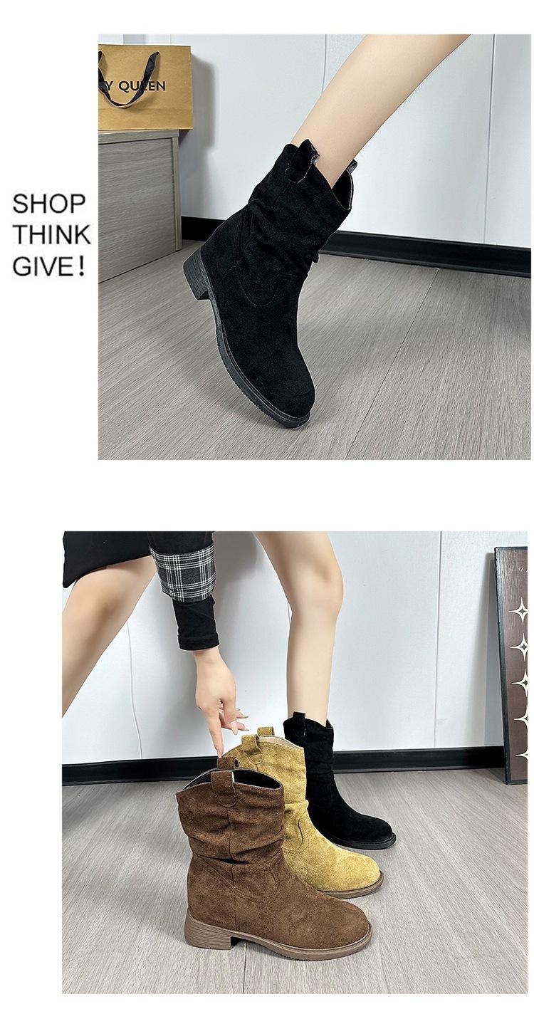 Botines Retro Escarchados Vaquero Occidental 2025 Nuevo Otoño Media Pantorrilla Botas Martin Botas Individuales Tacón Bajo Tacón Apilado Mujer