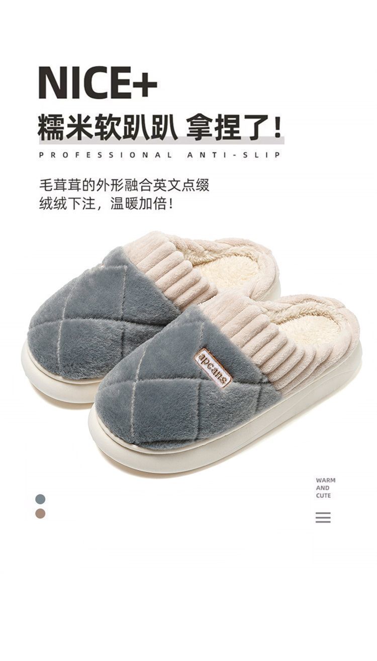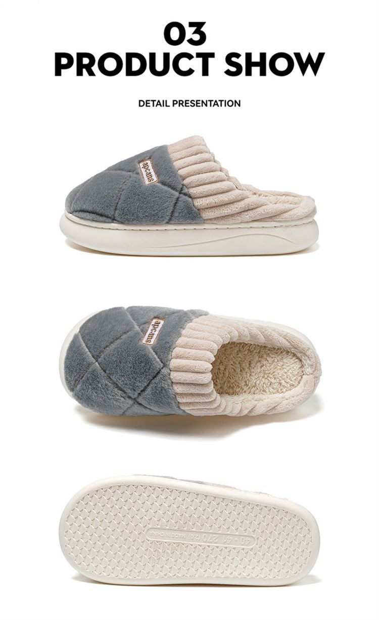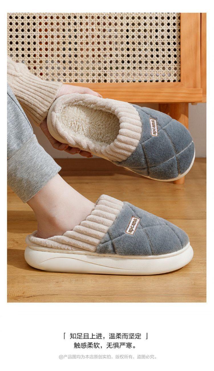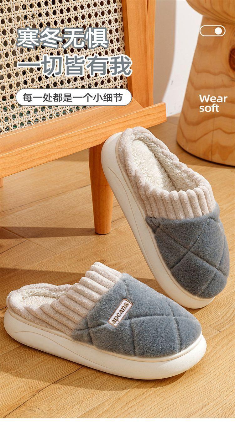 Pantuflas de Algodón para Mujer Otoño e Invierno 2025 Nuevo Estilo Interior Hogar Suela Suave Antideslizante Hogar Cálido Felpa Pareja Pantuflas de Algodón