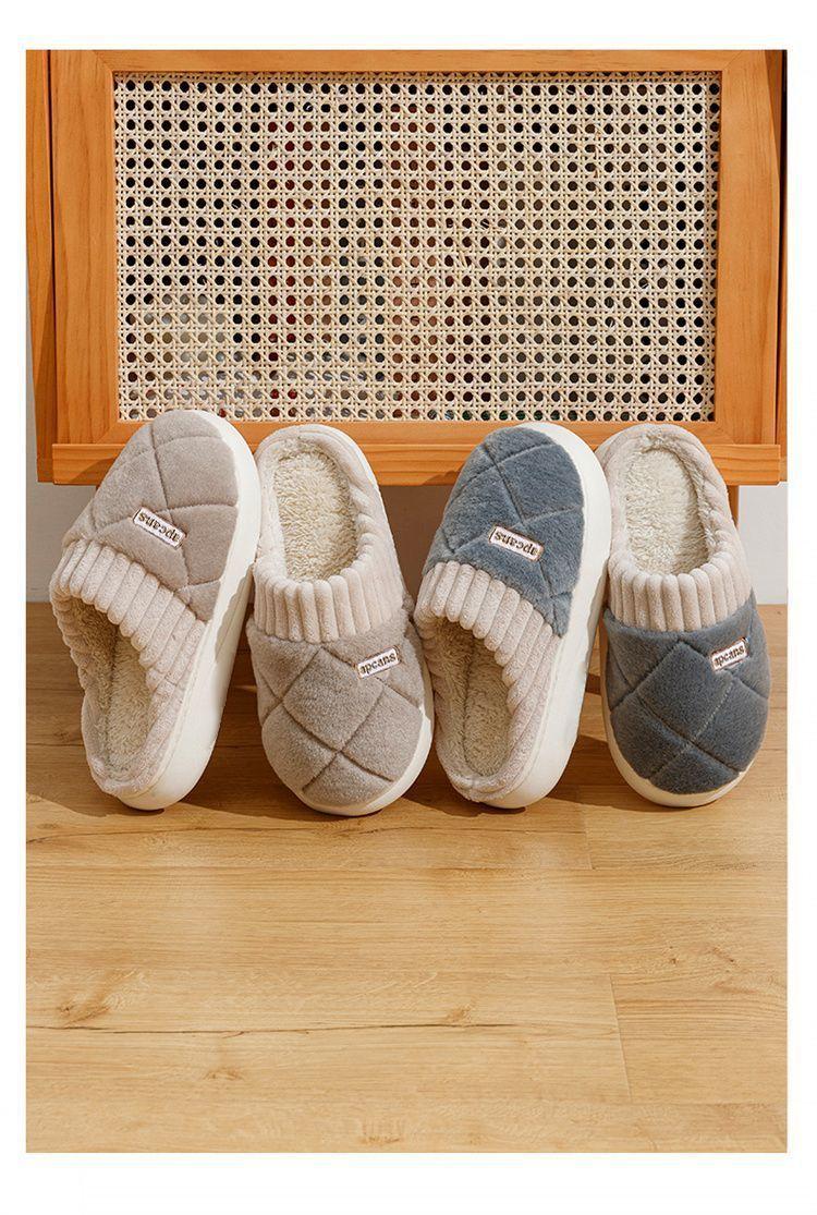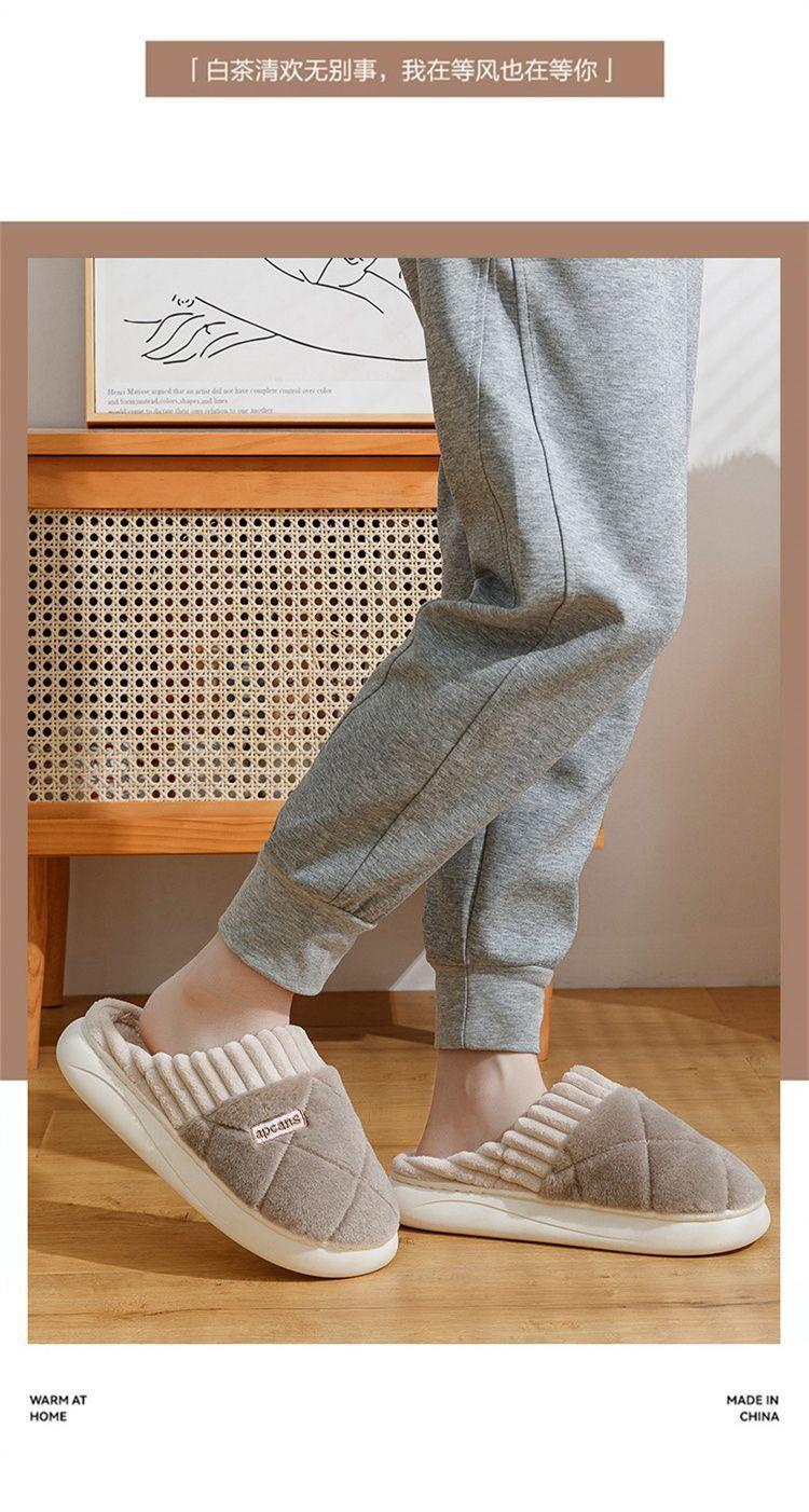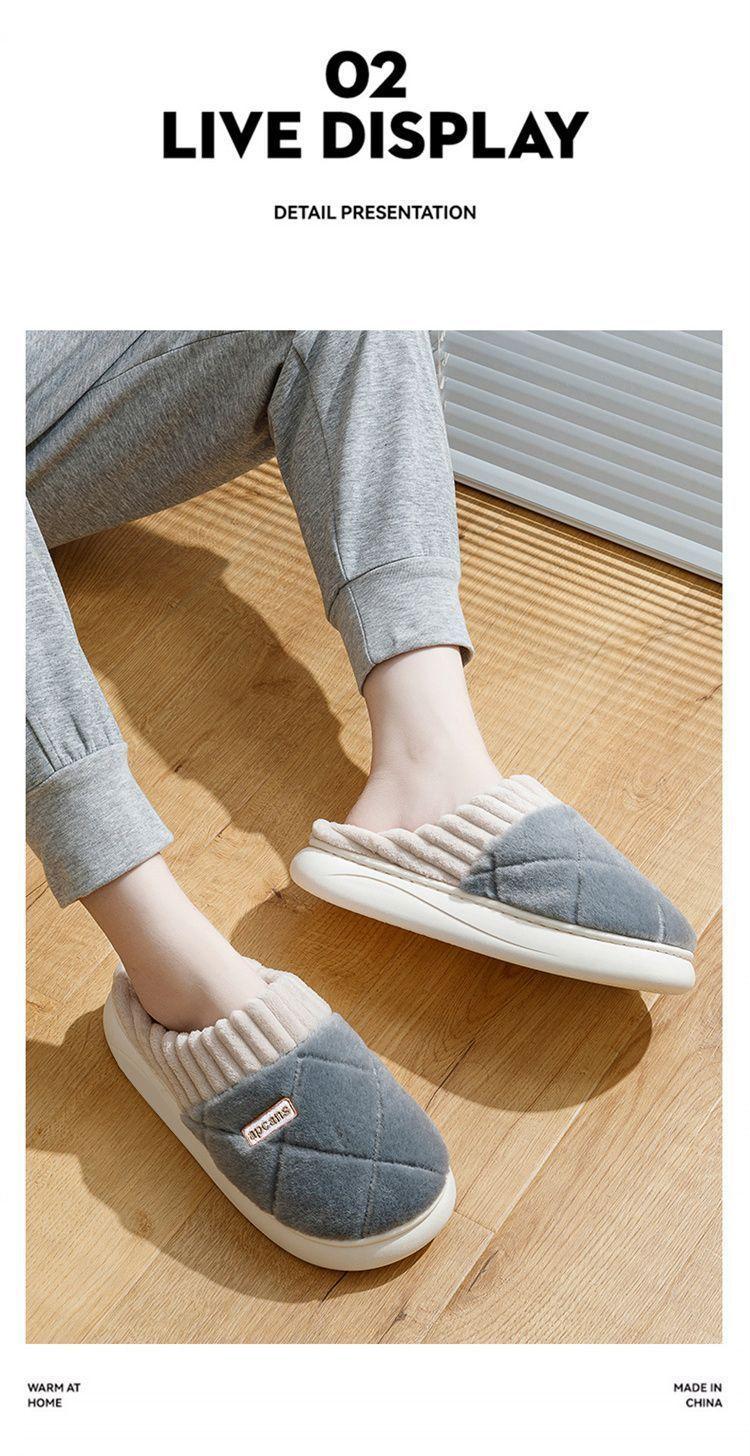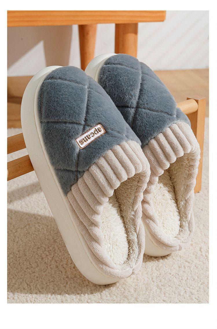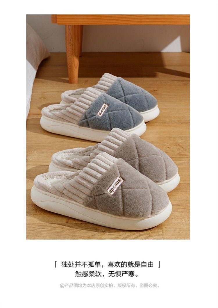 Pantuflas de Algodón para Mujer Otoño e Invierno 2025 Nuevo Estilo Interior Hogar Suela Suave Antideslizante Hogar Cálido Felpa Pareja Pantuflas de Algodón
