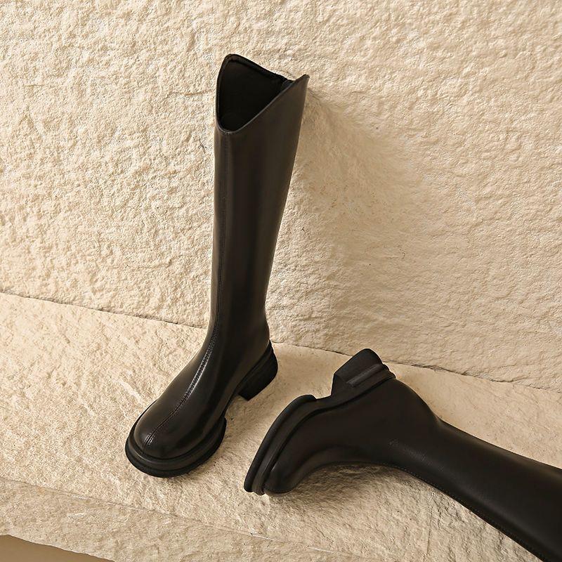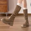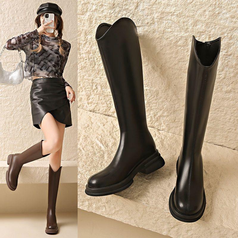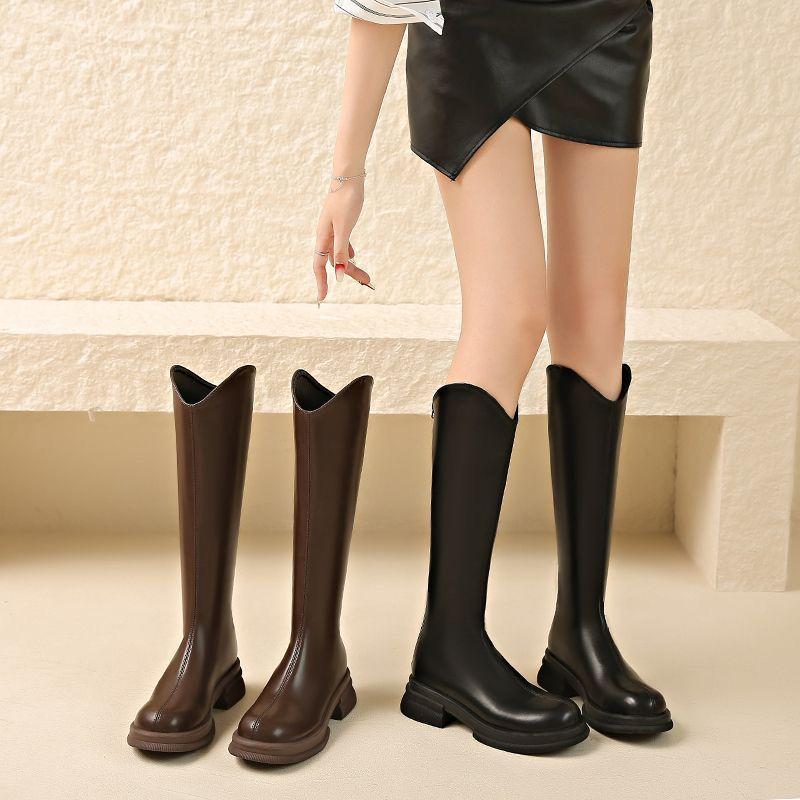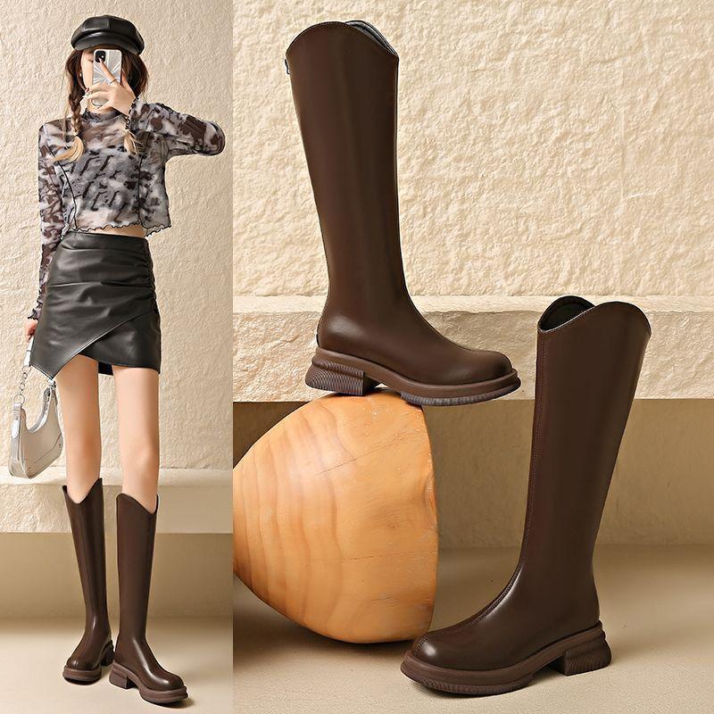 Botas vaqueras occidentales de suela gruesa de caña alta, botas altas por encima de la rodilla con corte en V, nuevo estilo 2025, petite, adelgazantes