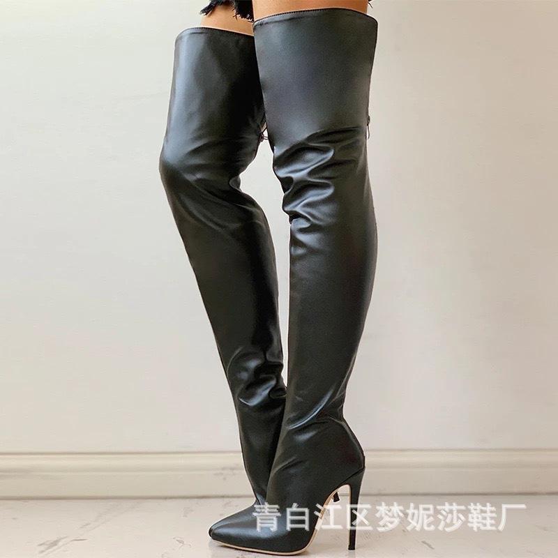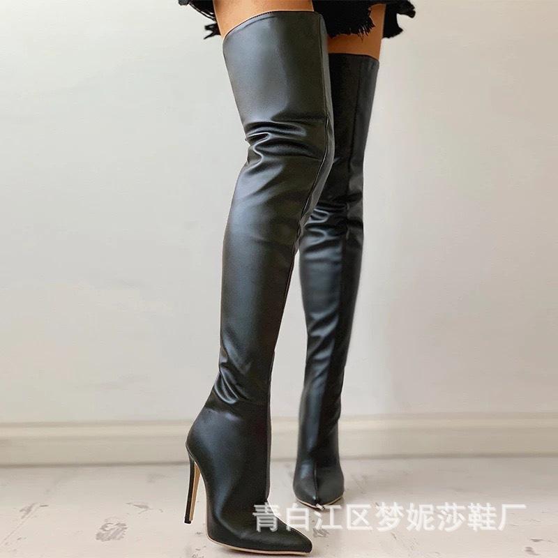 Deseo AliExpress Comercio Exterior Estilo Europeo y Americano Sobre la Rodilla Talla Grande Tacón Alto Botas de Mujer Tacón de Aguja Cremallera Botas Largas 2024 Nuevo