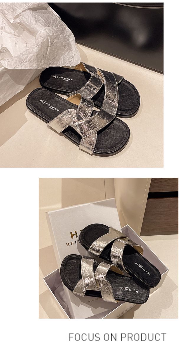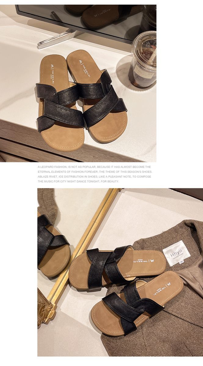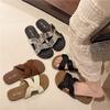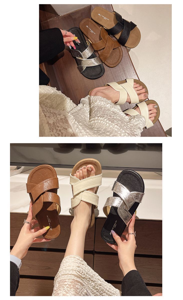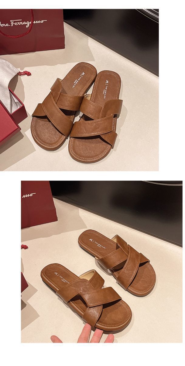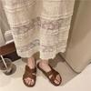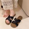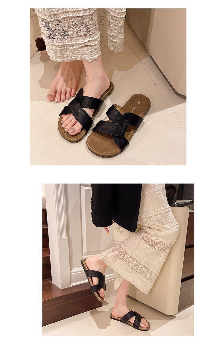 Pantuflas de Tiras Cruzadas para Verano para Mujer 2025 Nuevo Estilo Retro Francés Flats Casuales Sandalias de Playa Antideslizantes