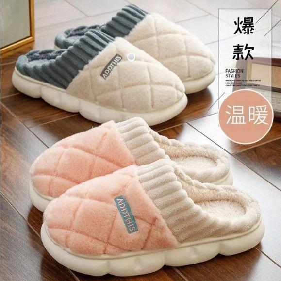 2025 Nuevas Pantuflas de Algodón Cálidas de Felpa de Suela Gruesa para Pareja para el Hogar de Otoño/Invierno para Mujer para Hombre