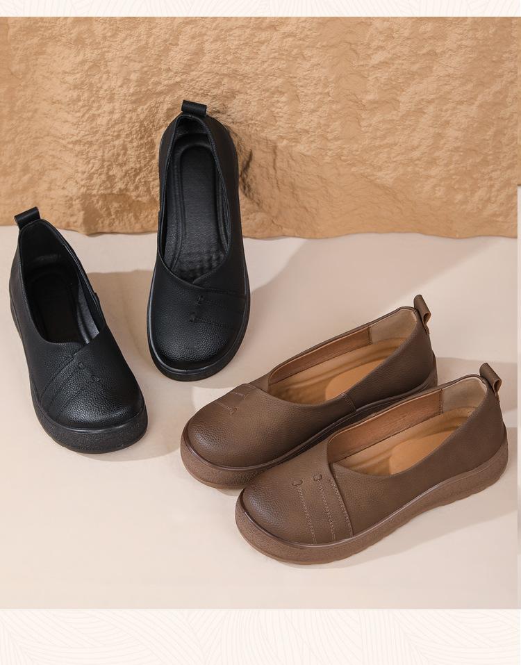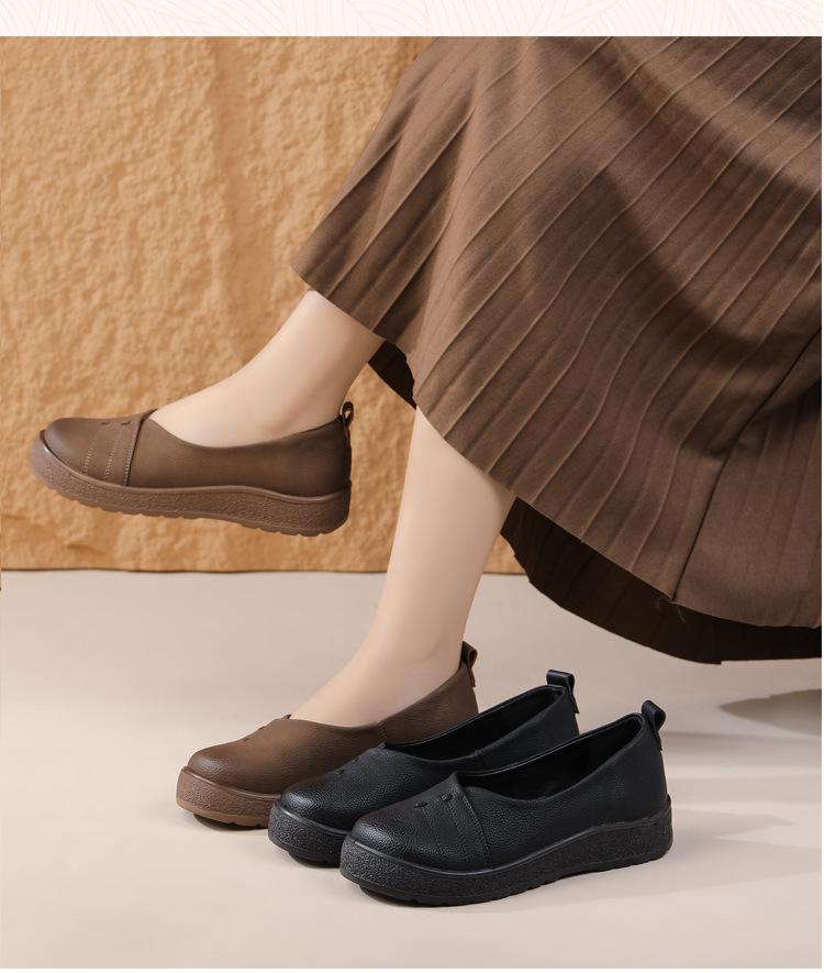 Zapatos Individuales Retro de Corte Bajo para Mujer 2025 Otoño Nuevos Zapatos Lazy de Un Paso Versátiles Planos Cómodos Zapatos de Mamá Talla Extra