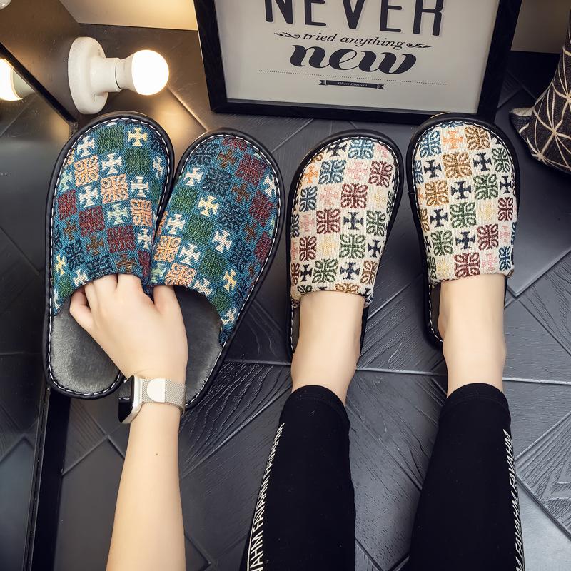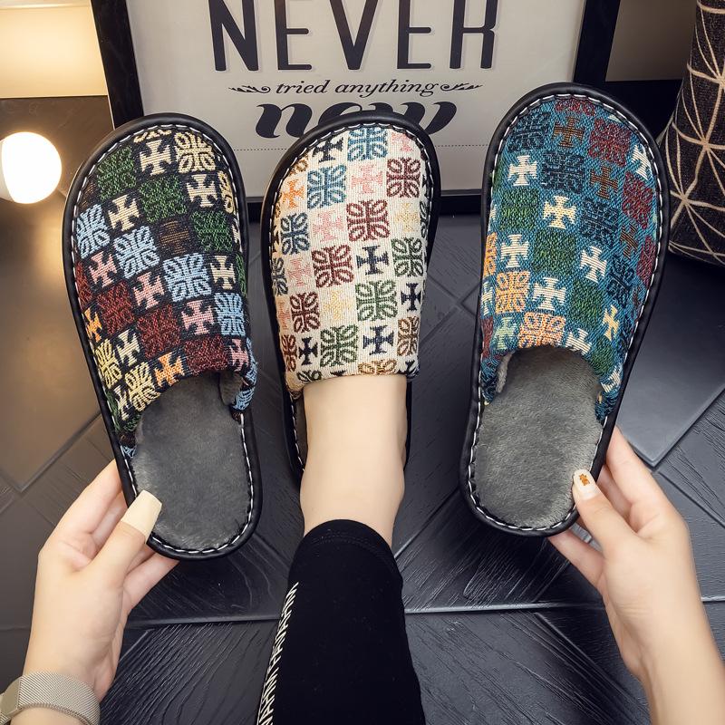 Invierno Nuevas Pantuflas de Algodón Mujer Hogar Pareja Interior Antideslizantes Resistentes al Desgaste Suela Suave Hogar Pantuflas de Tela para Hombre Venta al por Mayor