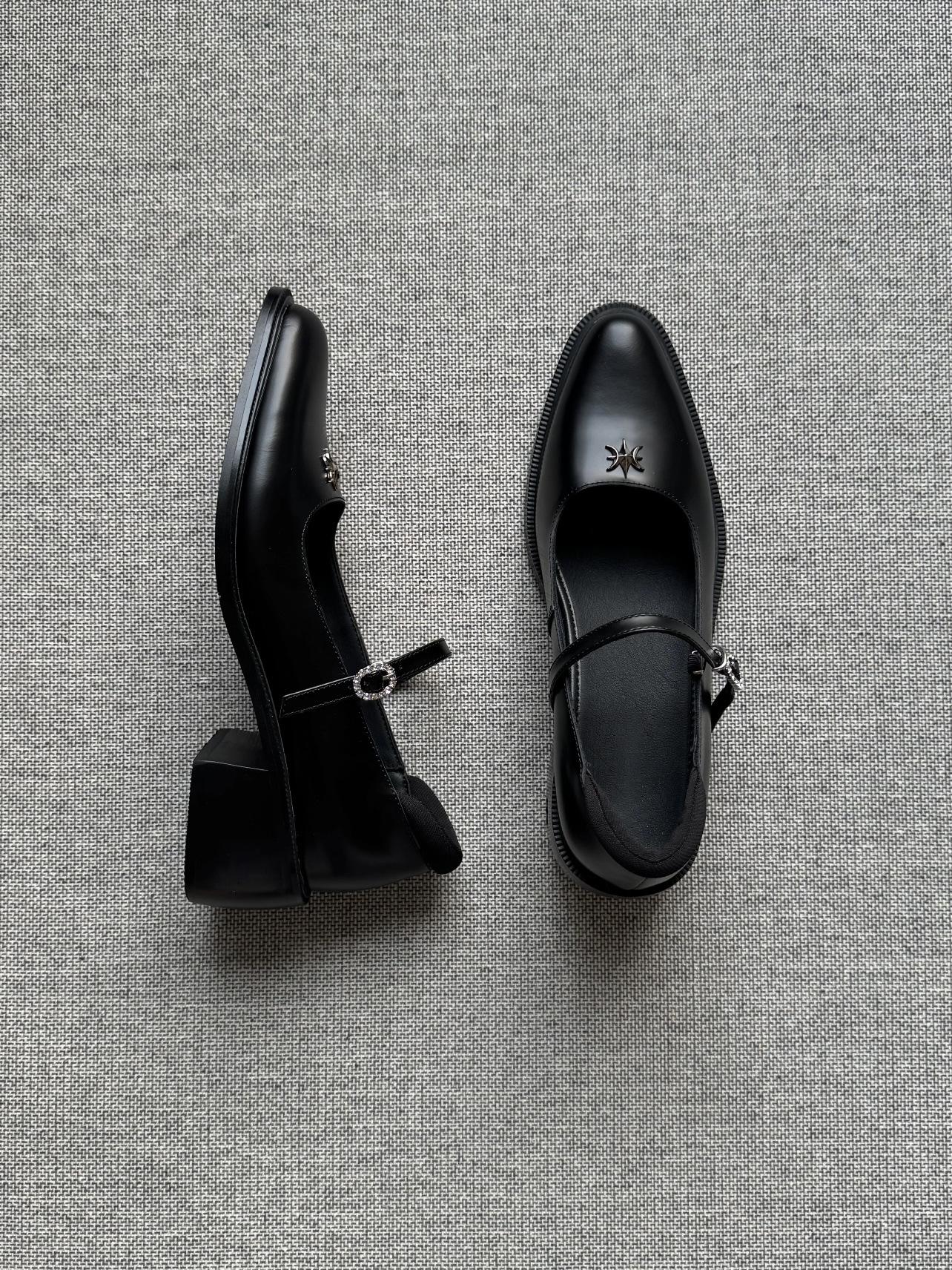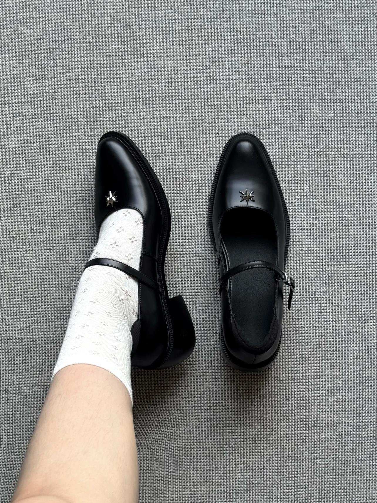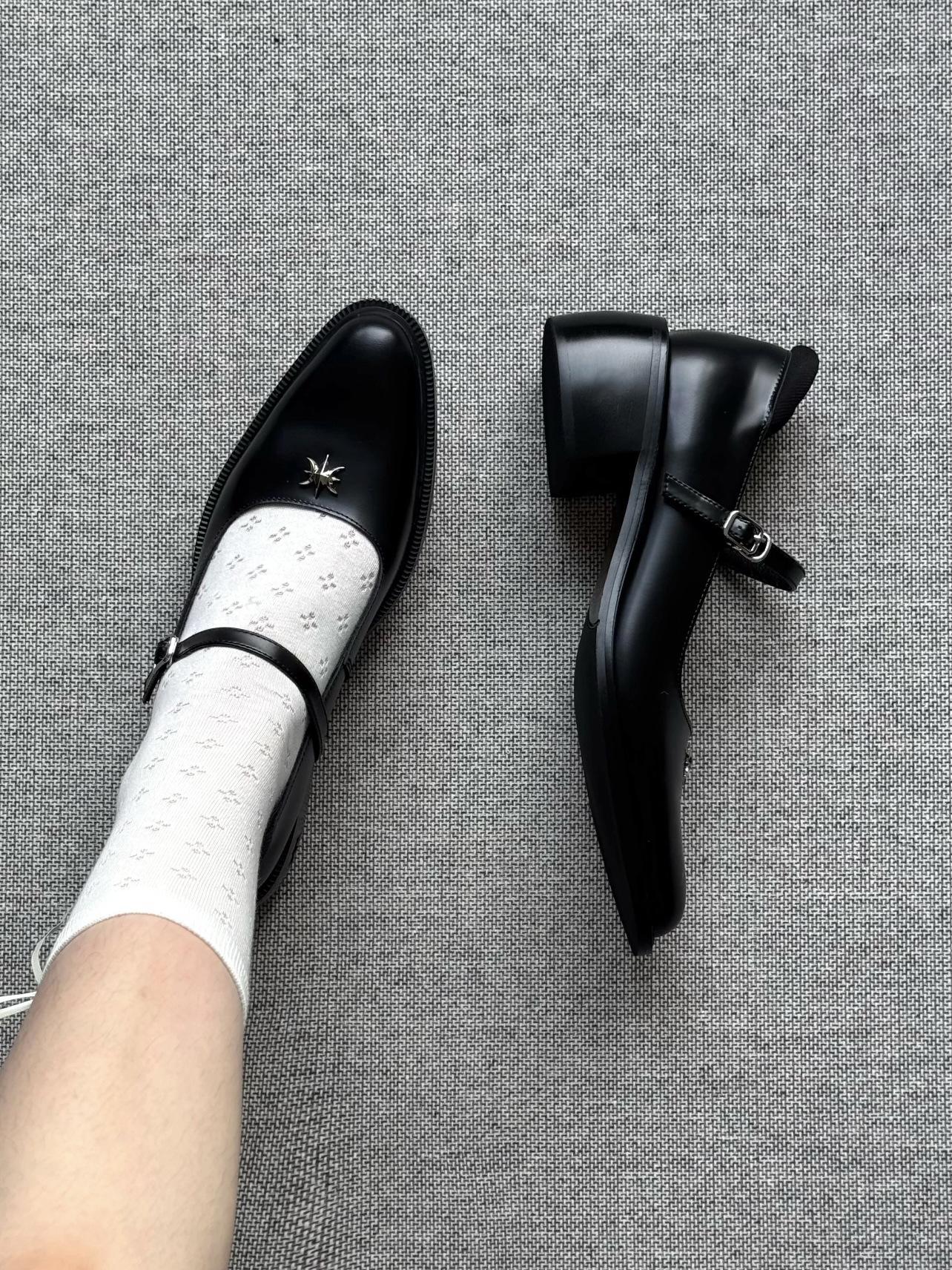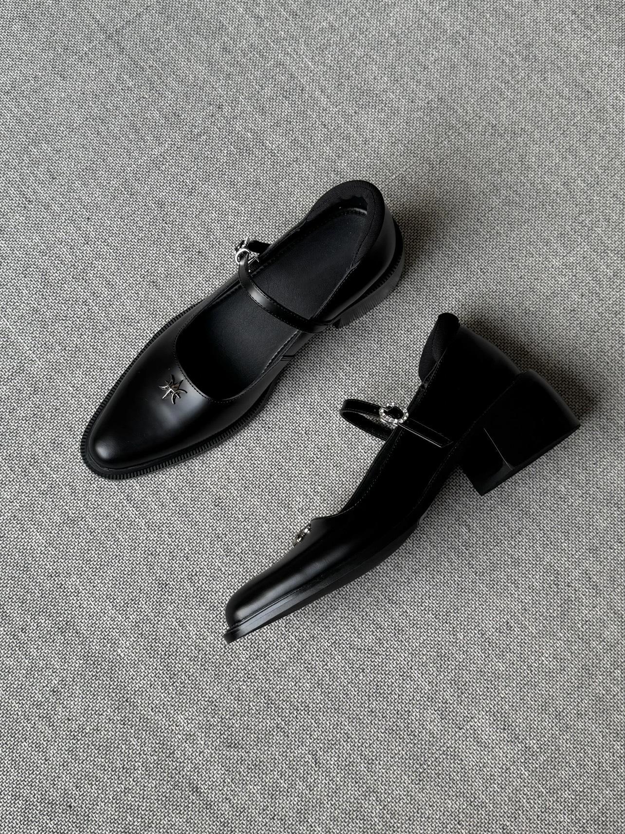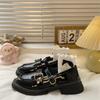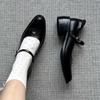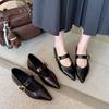 2025 Nuevos Zapatos Mary Jane de Punta Redonda y Boca Baja de Estilo Británico para Mujer Primavera y Verano Nuevos Retro Tacón Grueso Hebilla Zapatos de Cuero Pequeños