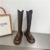 Botas largas para mujer que aumentan la altura y estilizan 2025 nuevo estilo británico botas elásticas botas petite de caña alta botas de caballero de moda