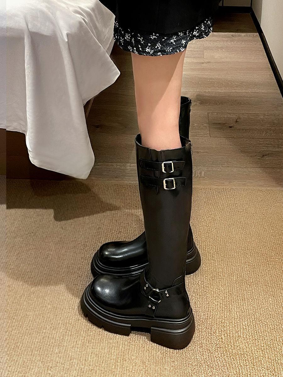 Botas largas de caña alta con cremallera trasera que aumentan la altura de tamaño pequeño 2024 otoño/invierno moda estilo coreano retro botas de tubo alto que aumentan la altura de suela gruesa botas de caballero