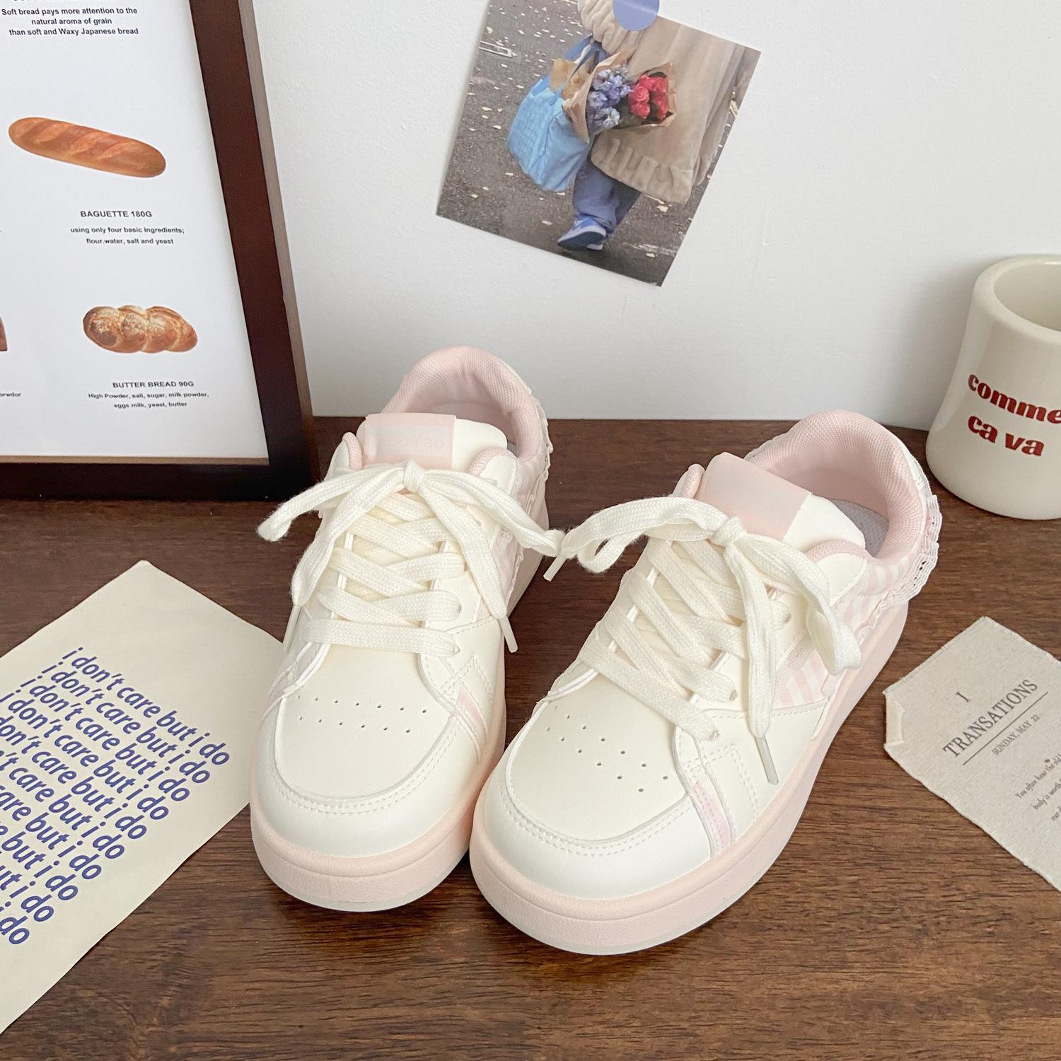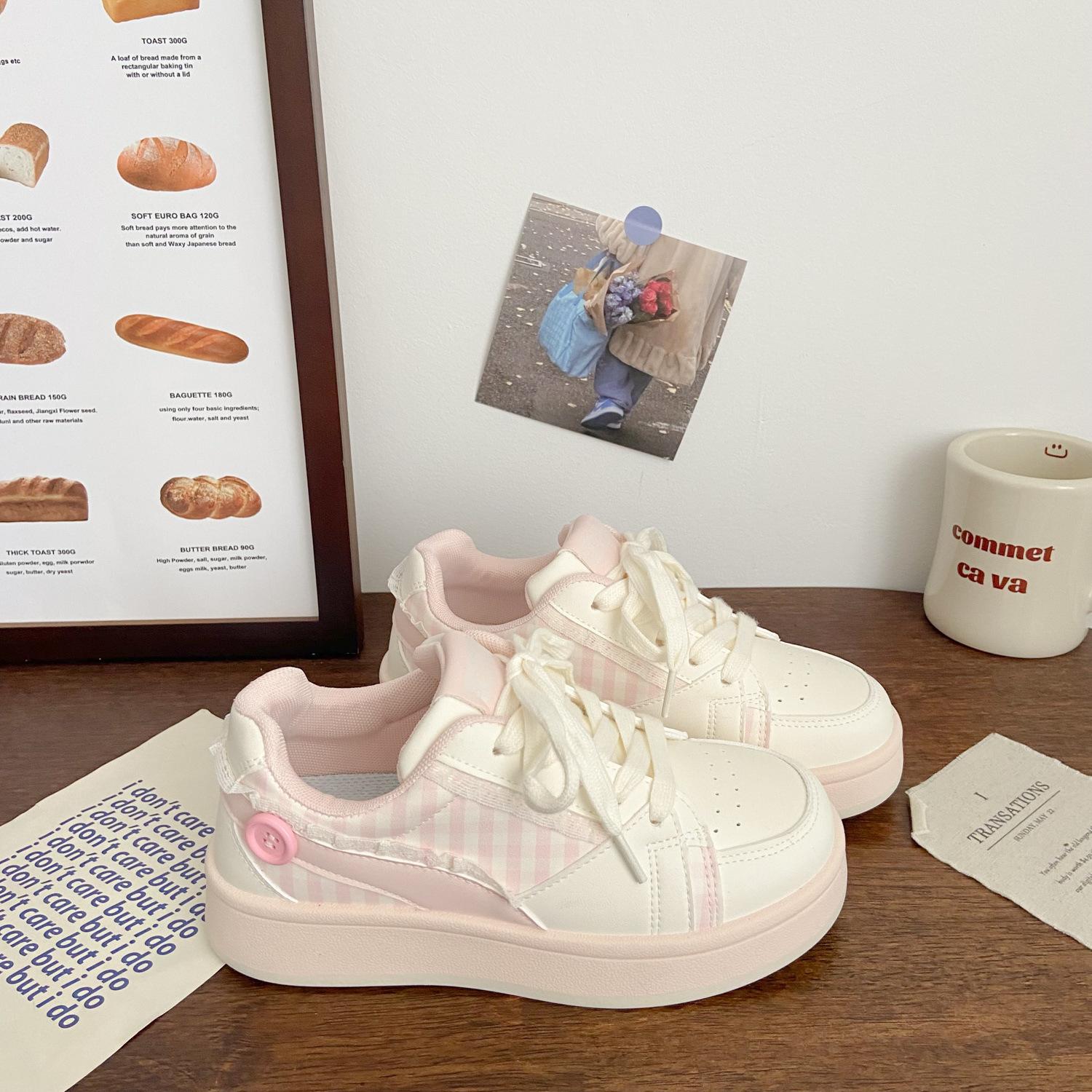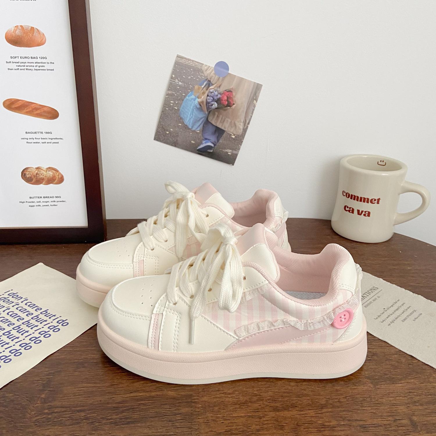 Tenis Blancos de Suela Gruesa Rosados para Mujer Estilo Coreano 2025 Verano Nuevo Diseño Nicho Chic Versátiles Deportivos Transpirables Zapatos de Lona