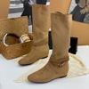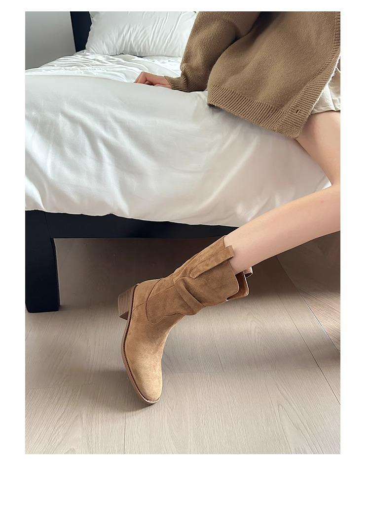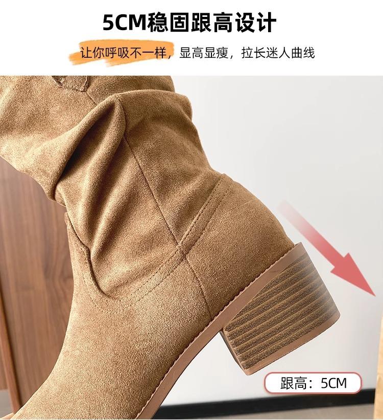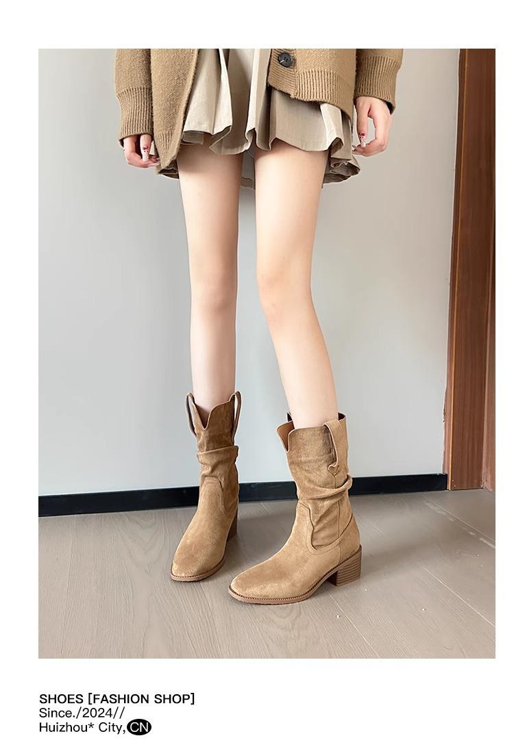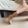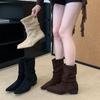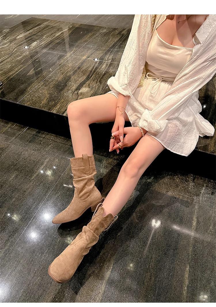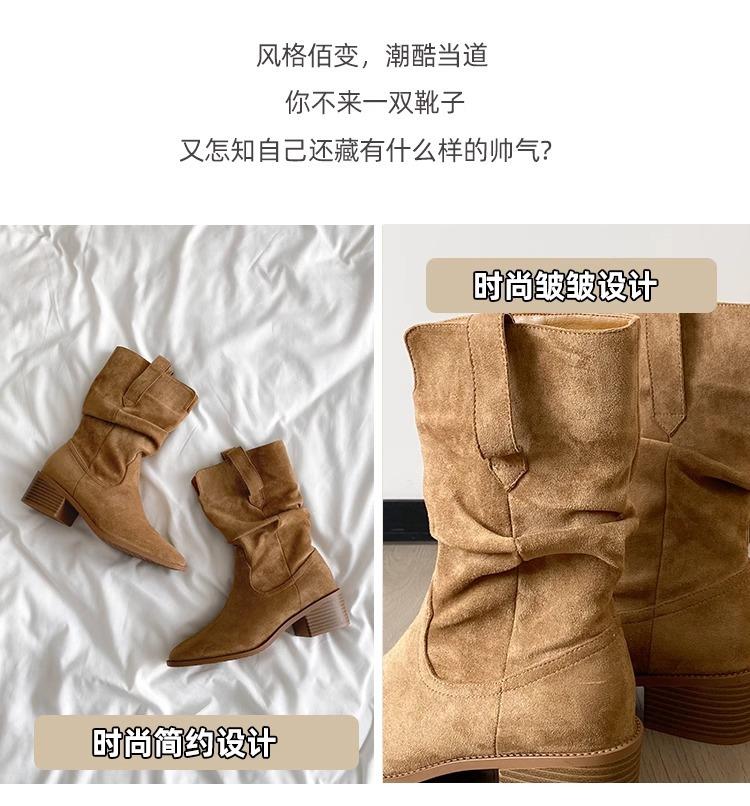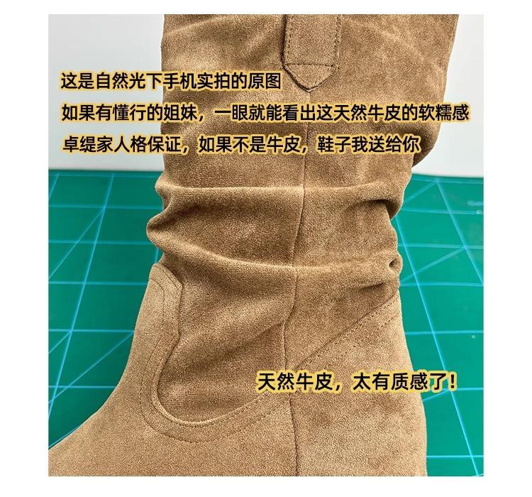 2025 Nuevas Botas Slouchy de Punta Botines Tacón Alto Vintage Superb Western Caballero Botas Boca en V Media Caña Mujer